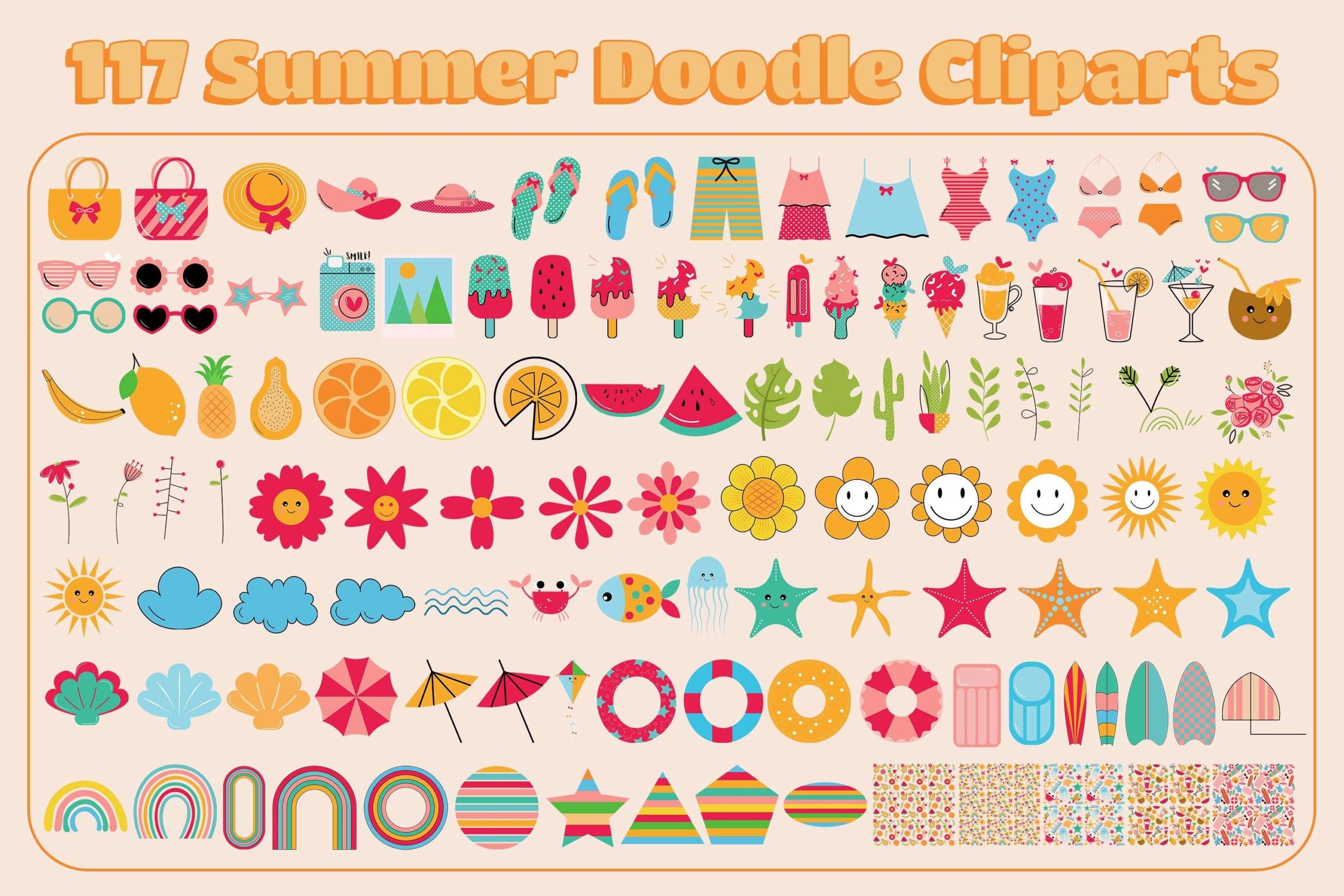 Design anything this summer with our ultimate Summer Doodle Clipart bundle! Get 112 unique elements and 5 seamless patterns – perfect for T-shirt designs, branding, wall art, social media graphics, and more.