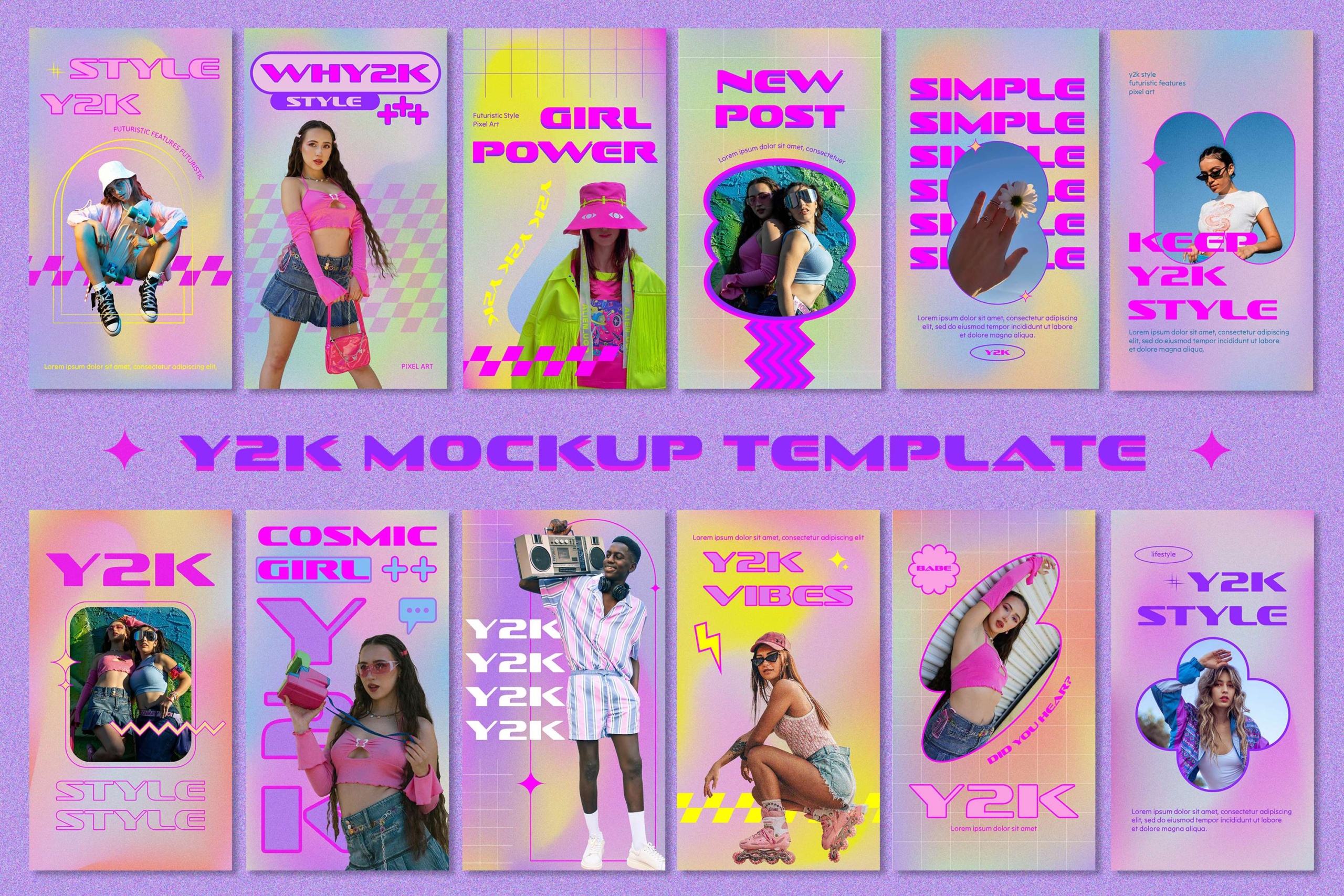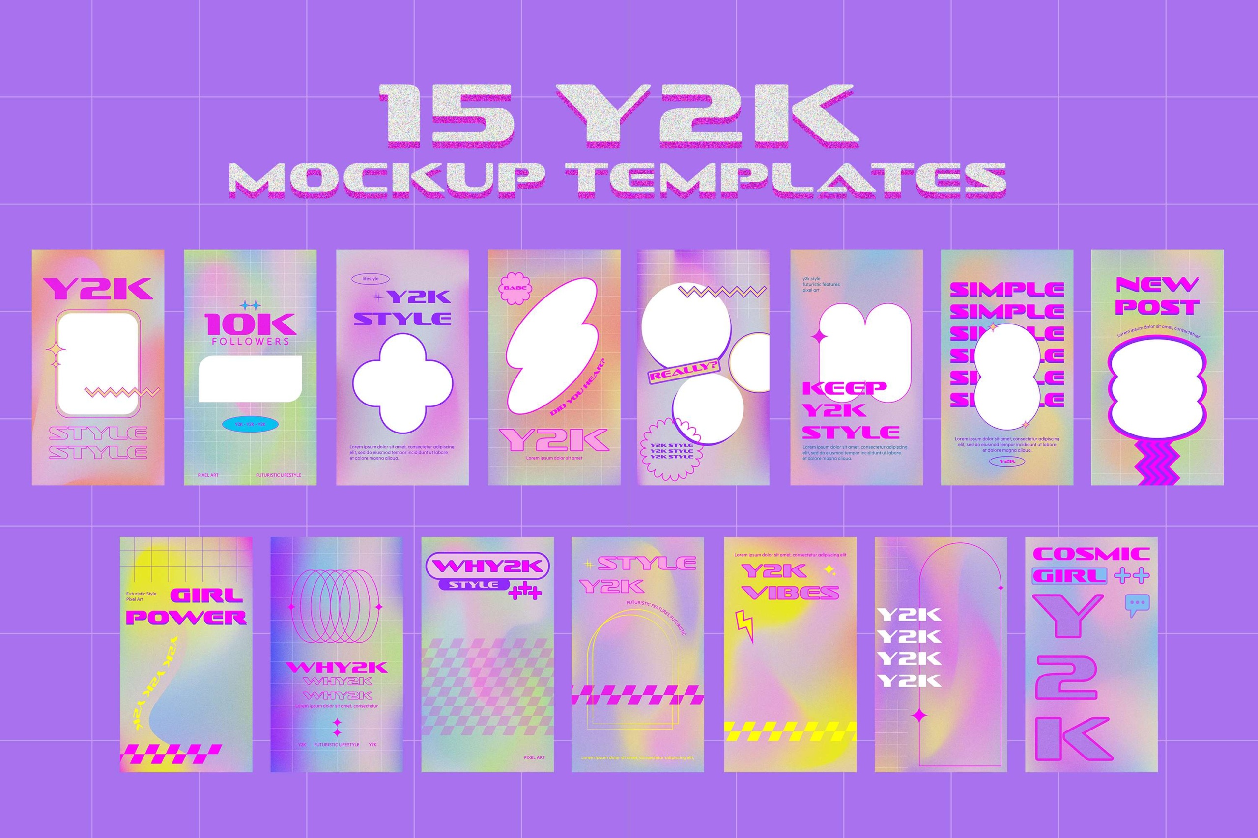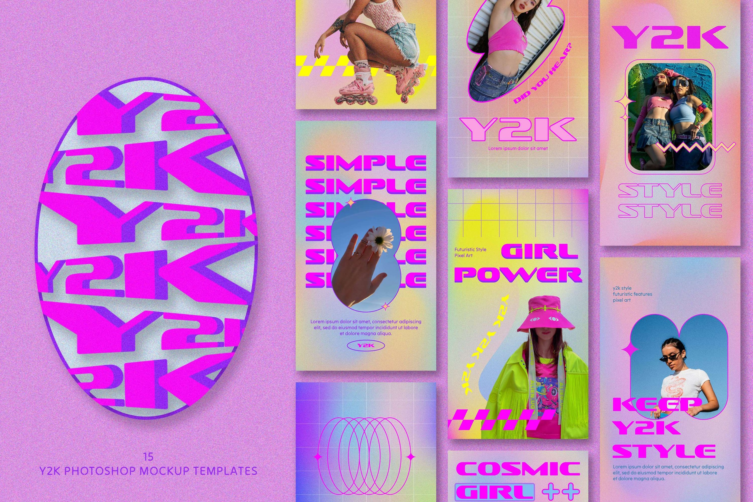 Enhance your online presence with our Y2K-inspired PSD mock-ups. These 15 high-quality templates (1080 x 1920 pixels, 300 DPI) seamlessly blend Pixel Art, Cyberpunk, and Kidcore aesthetics. Ideal for social media feeds, Instagram Stories, Facebook Stories, Pinterest Idea Pins, and product branding. Fully customizable with organized layers, these templates include Retro Futurism Elements, Geometric Shapes, Neon Colors, Pink Holographic Background, Futuristic Typography, 90s Glitch, and Bright Vintage. Please note that the images in the presentation are for preview purposes only.
