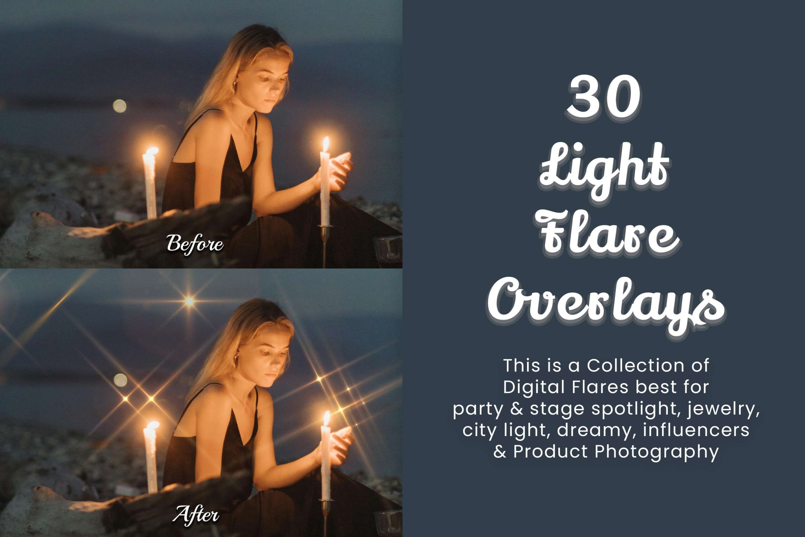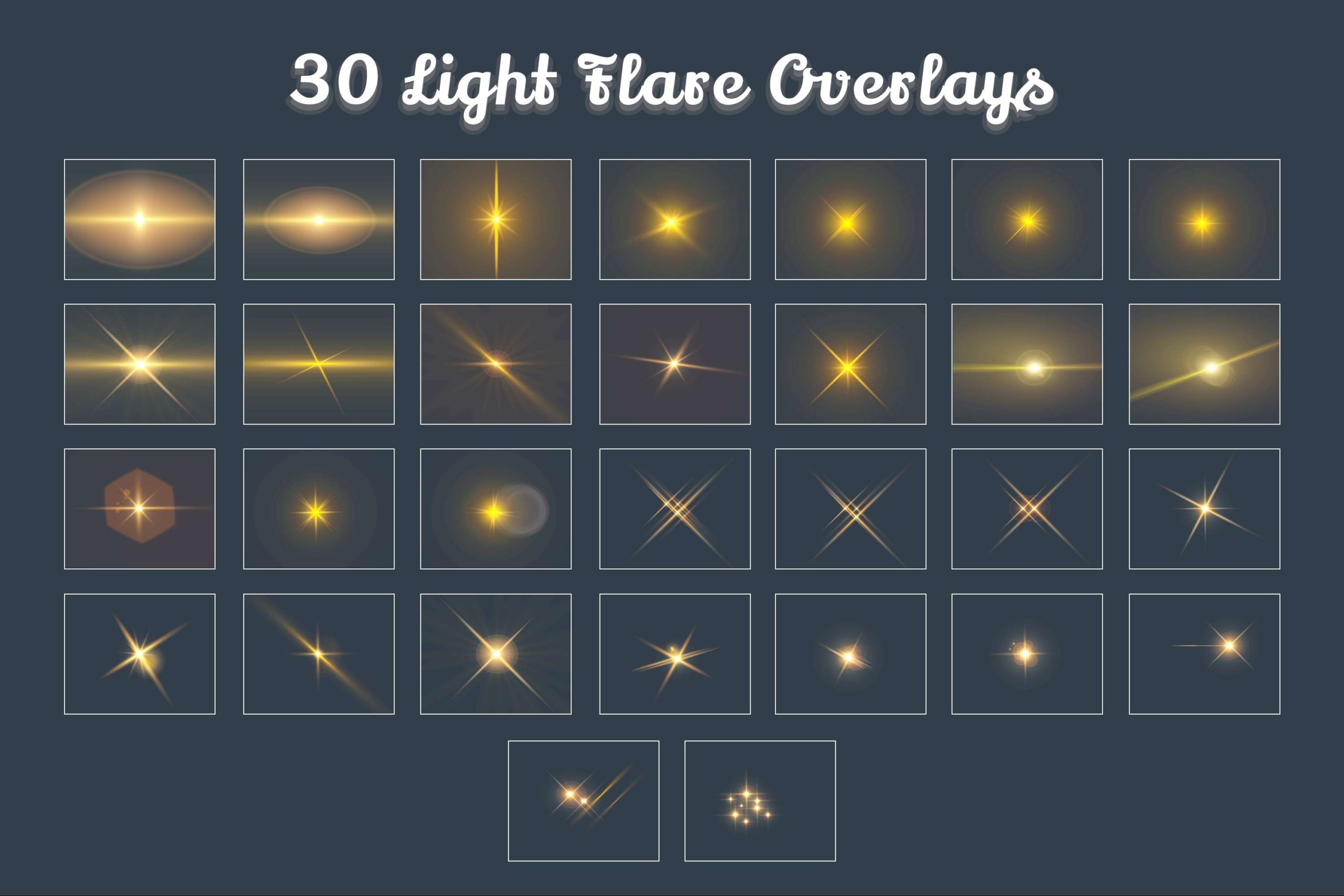 30 Light Flare Overlay for Photoshop: Golden Star, Night Sky Sparkle, Magic twinkle light Ray, Starburst Glow, PNG prism, Candle Photography