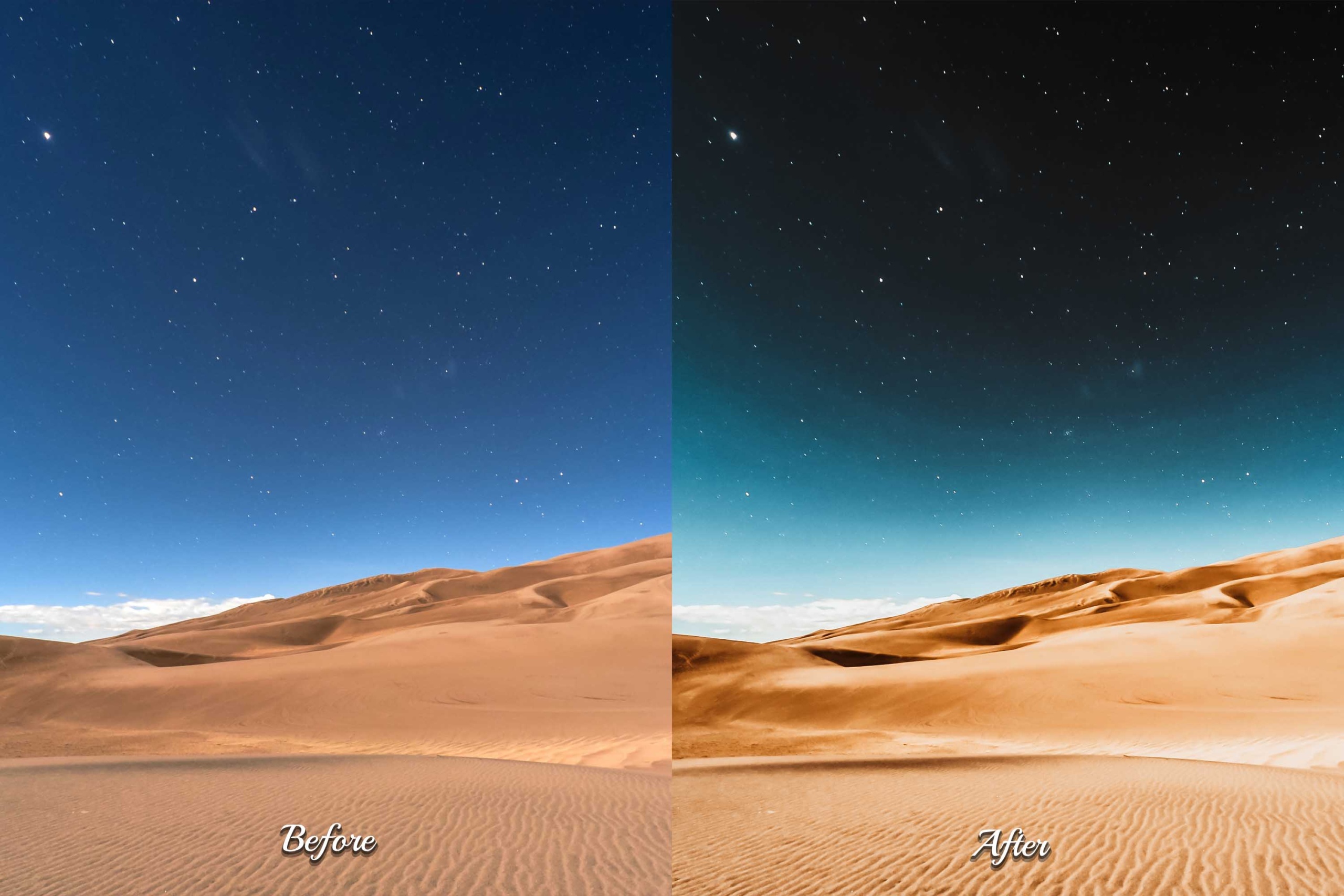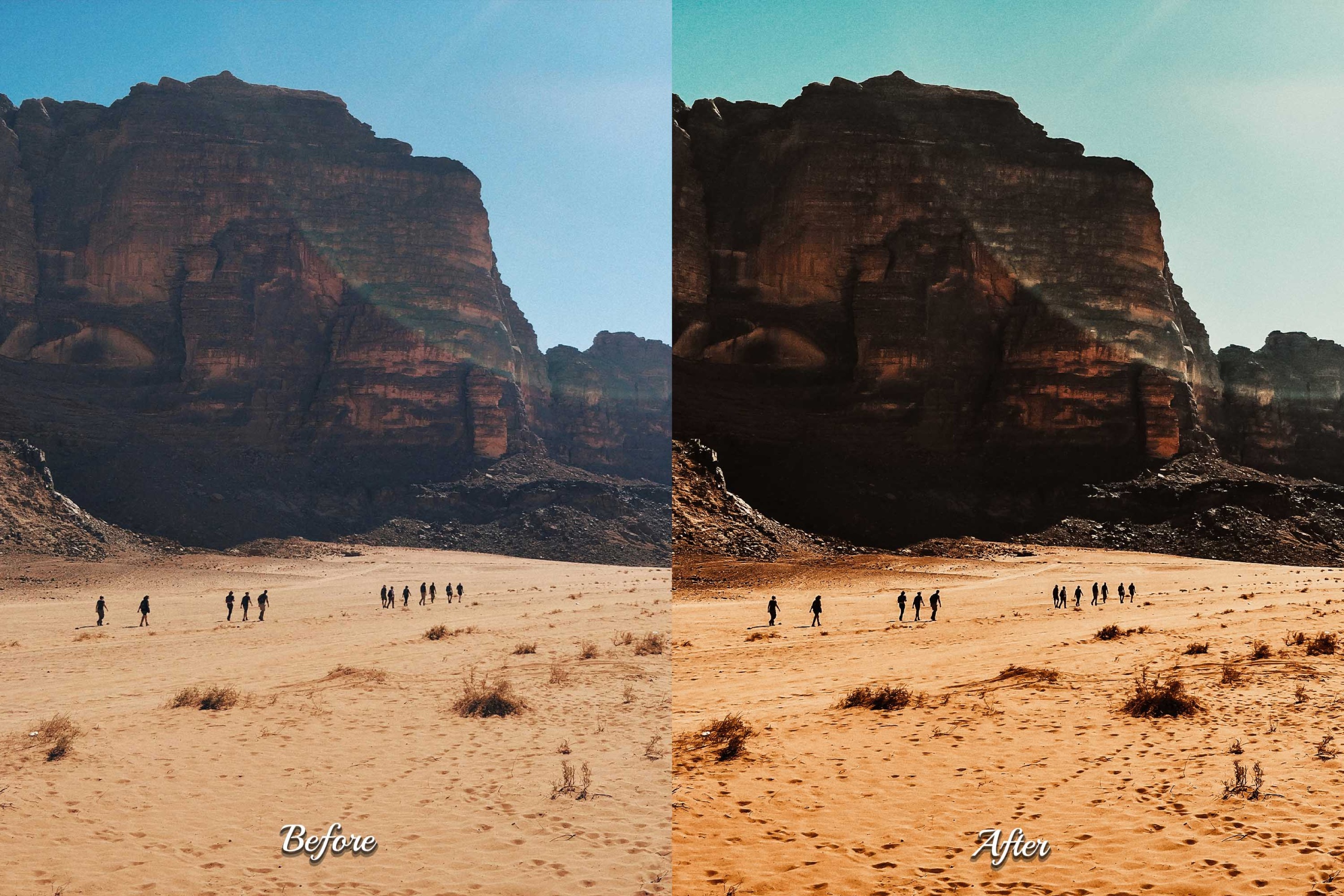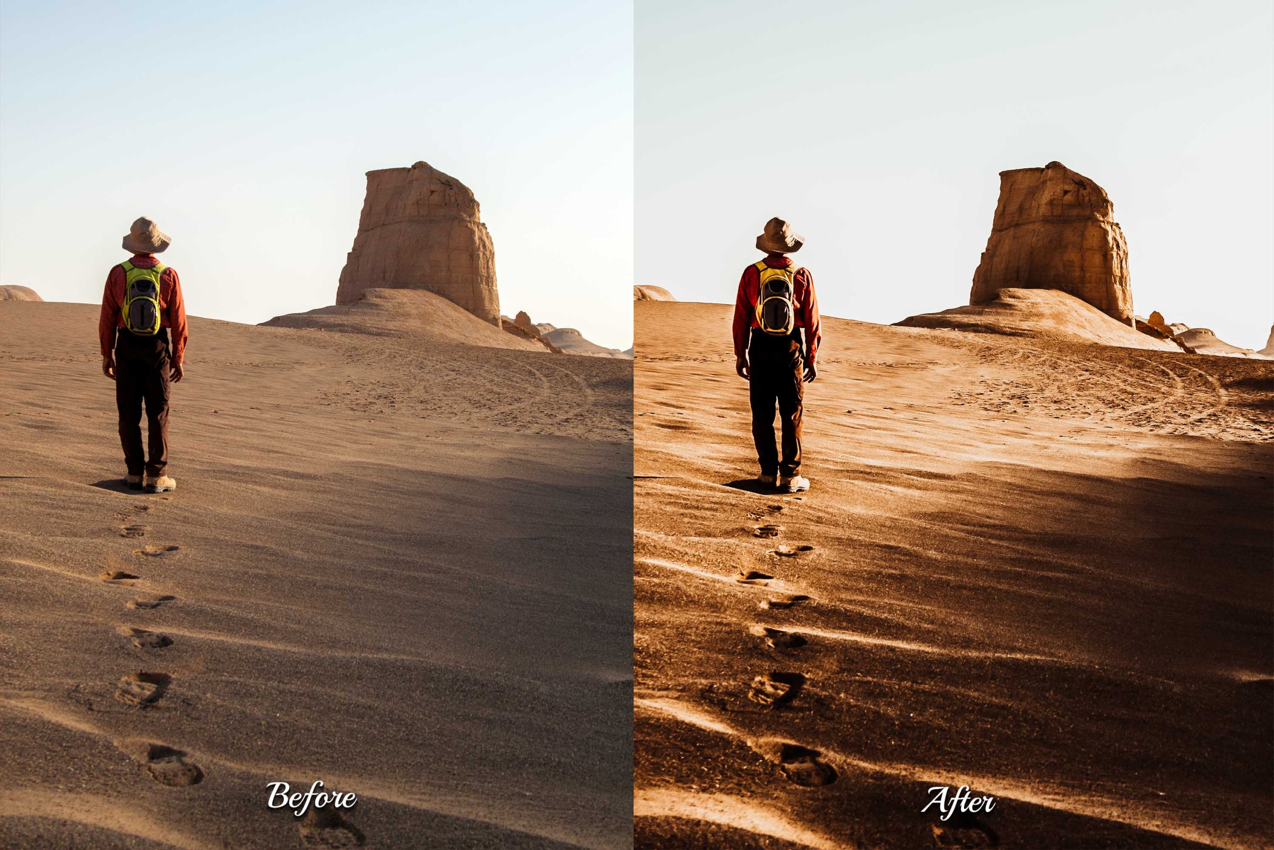 Enhance your desert adventures with Mirage Lightroom Presets. This bundle features 30 Desktop (XMP) and 30 Mobile (DNG) presets, perfect for landscapes, travel, dunes, and nature photography. Elevate your Instagram posts and achieve stunning golden hour effects. With themes like Desert, Orange & Teal, Bright, Warm, and more, this collection adds depth, vibrancy, and a touch of bronze. Suitable for bloggers, influencers, photographers, and anyone seeking the best desert vibes. Unleash your creativity and bring your Sahara and desert images to life!