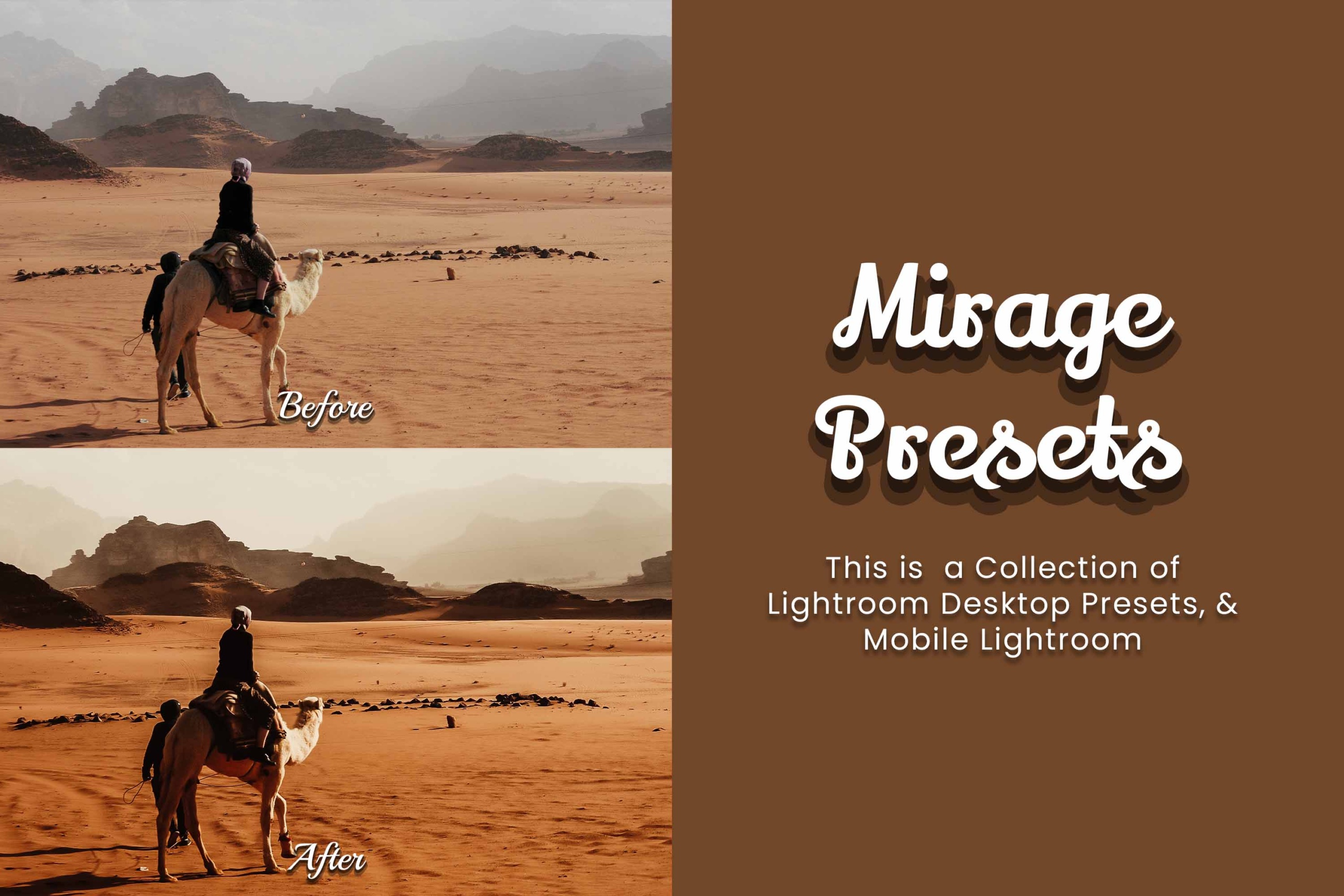 30 Mirage Lightroom Presets Desktop & Mobile: Transform Sahara and Desert Photos with Stunning Effects and Vibrant Themes Good for Bloggers