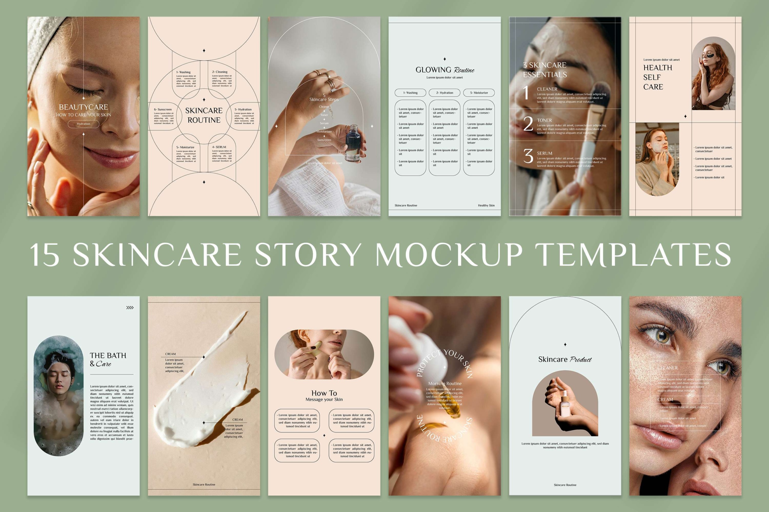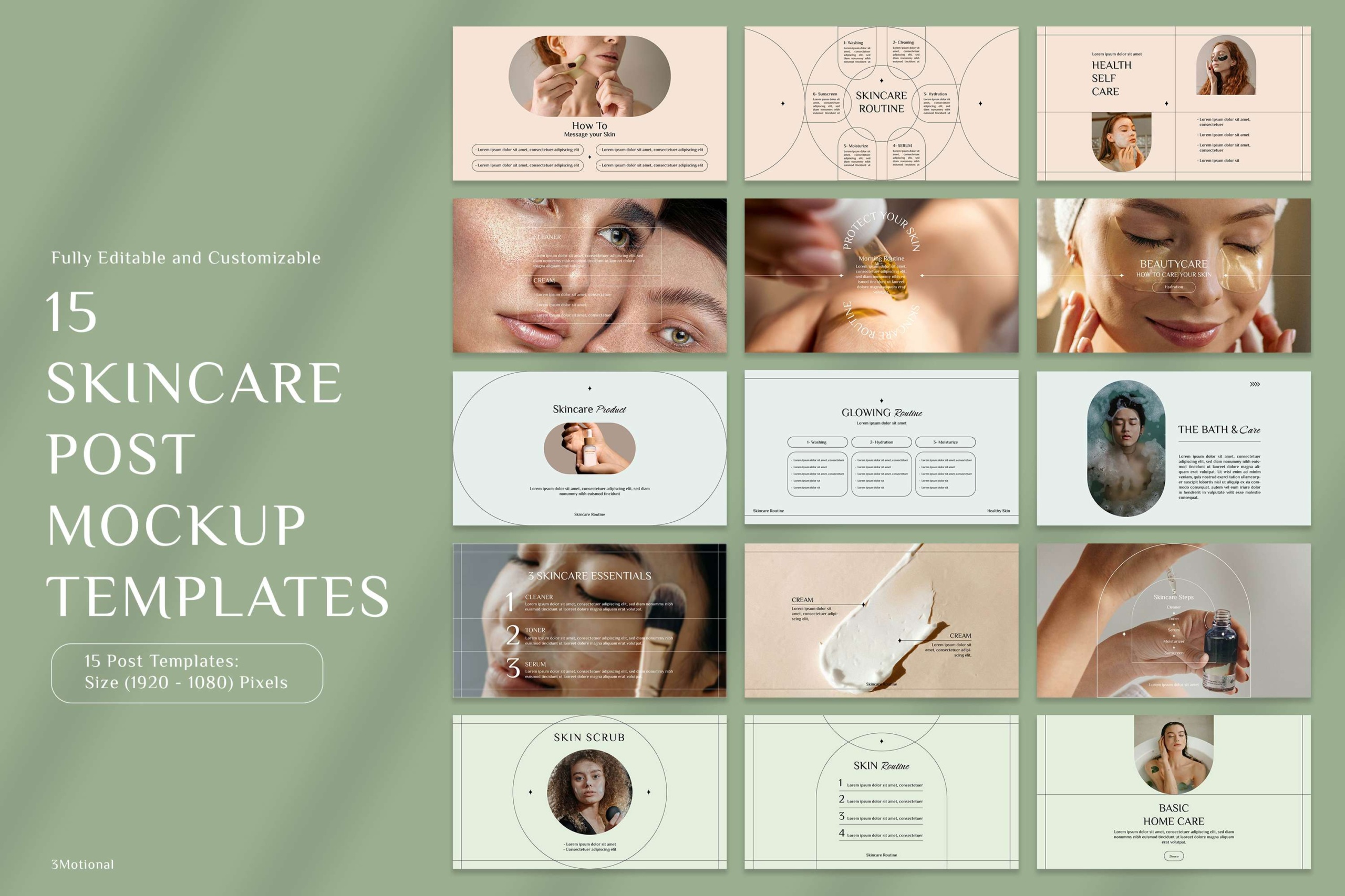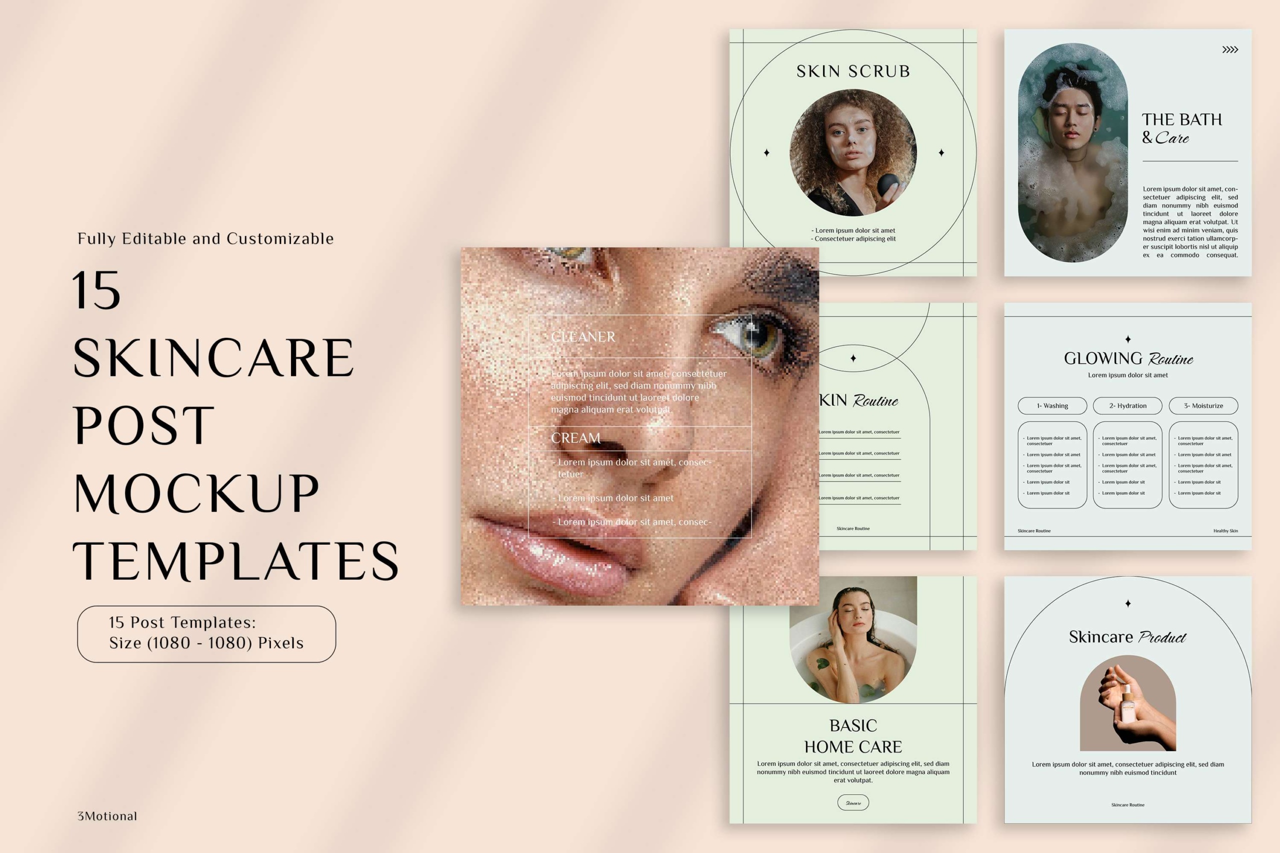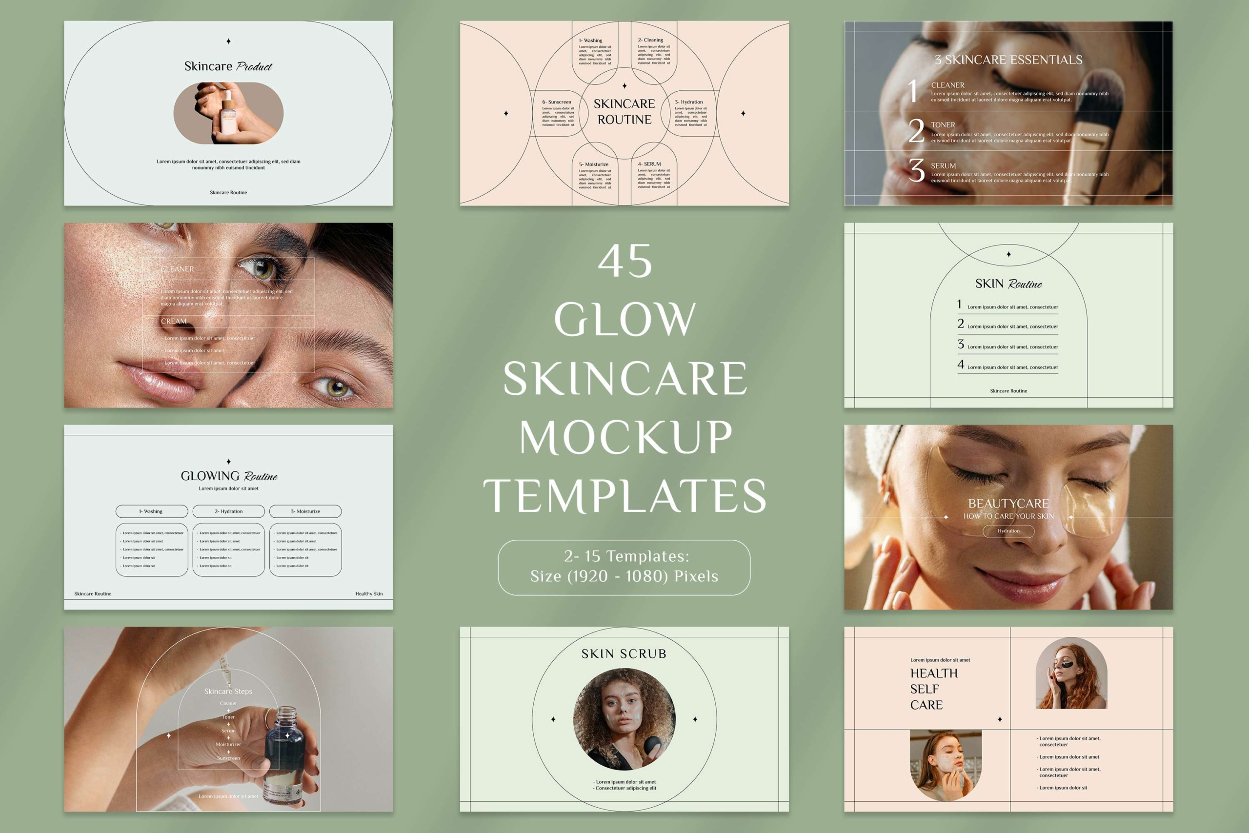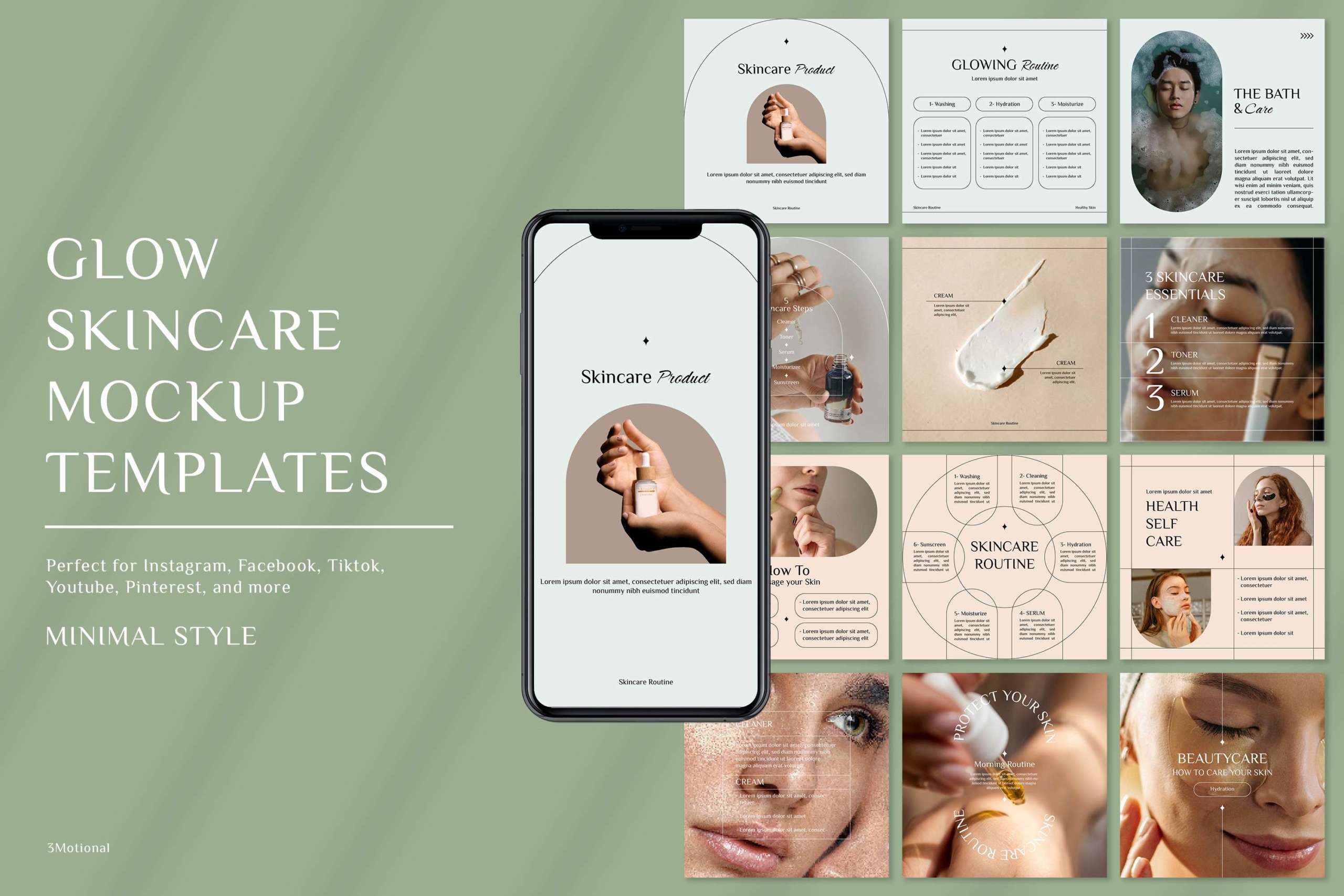 45 Glow Skincare Mockup Templates, Minimal Style for Social Media, Customizable Photoshop PSDs for Instagram Posts, Stories, YouTube, & more