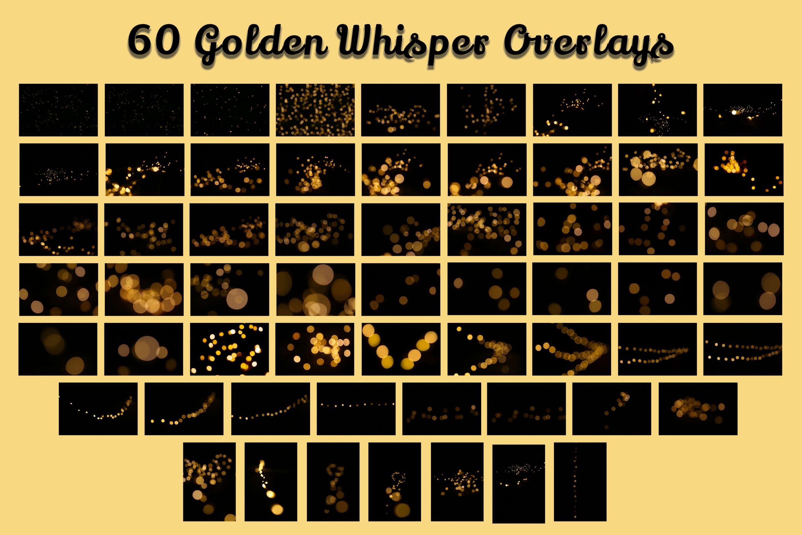 60 Golden Whisper Photo Overlays, Elevate Your Photography with Realistic Gold Bokeh Lights! Perfect for Outdoor Portraits and Summer Sunrises