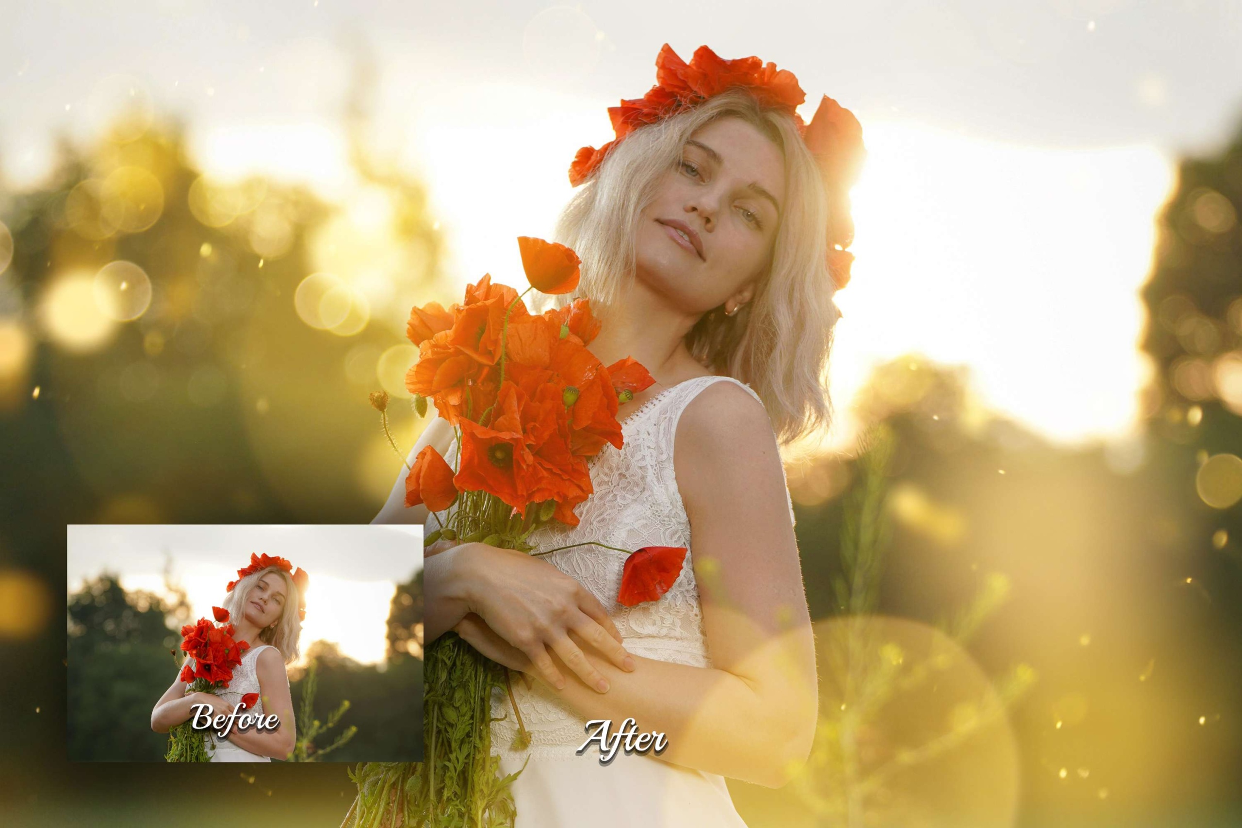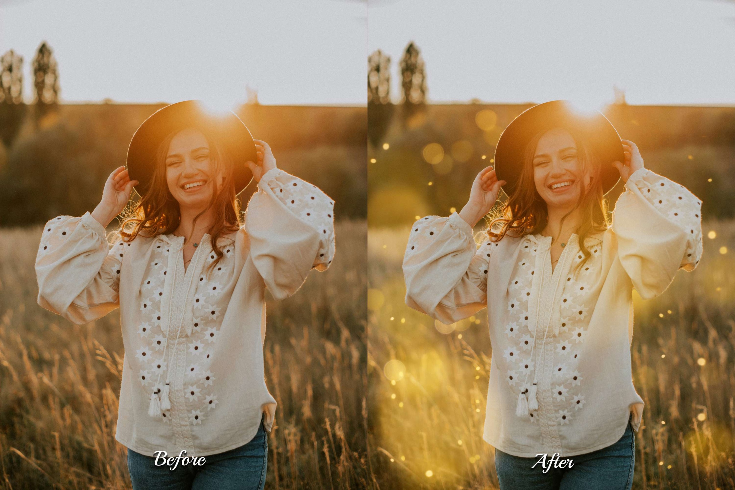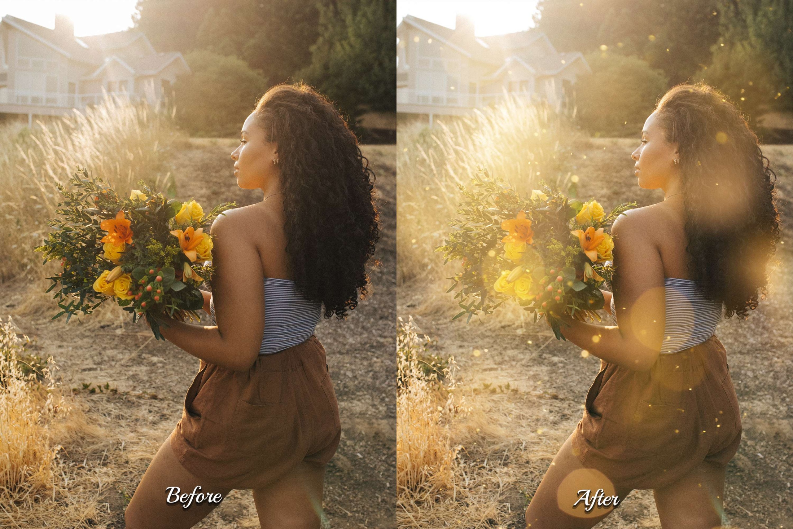 Elevate your photography with our Golden Whisper Photoshop Overlays. This pack of 60 high-quality JPG overlays infuses your images with realistic gold bokeh lights, creating a natural sunlight bokeh backdrop. Add shine beams, a glow sun flare background, glitter sunshine filter, and a touch of digital light leak effect. Perfect for outdoor portraits, summer sunrises, couples, travel bloggers, influencers, nature shots, children, landscape, wedding photography, golden hours, spring family, and garden girl’s images. Transform ordinary outdoor scenes into captivating fine art compositions!