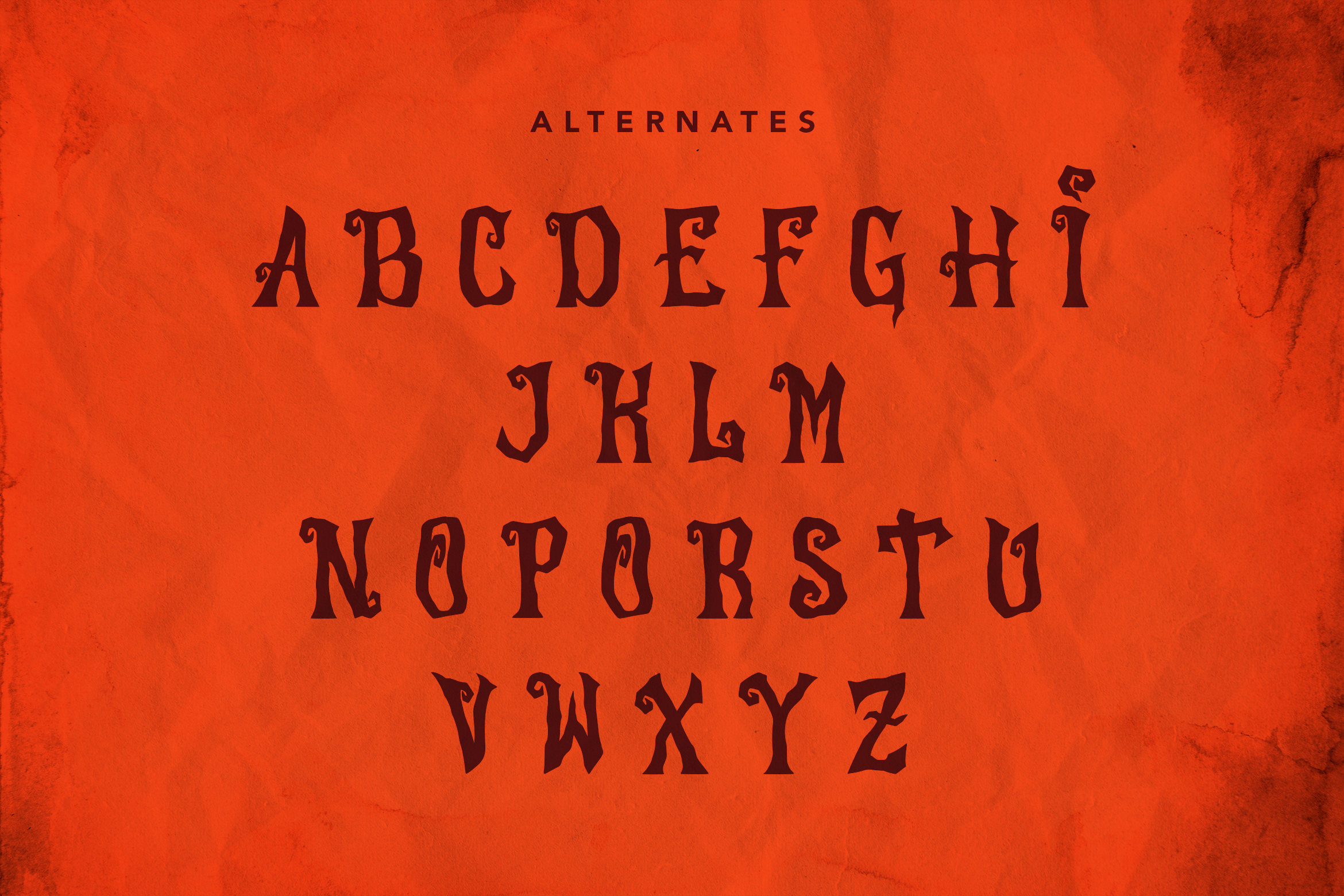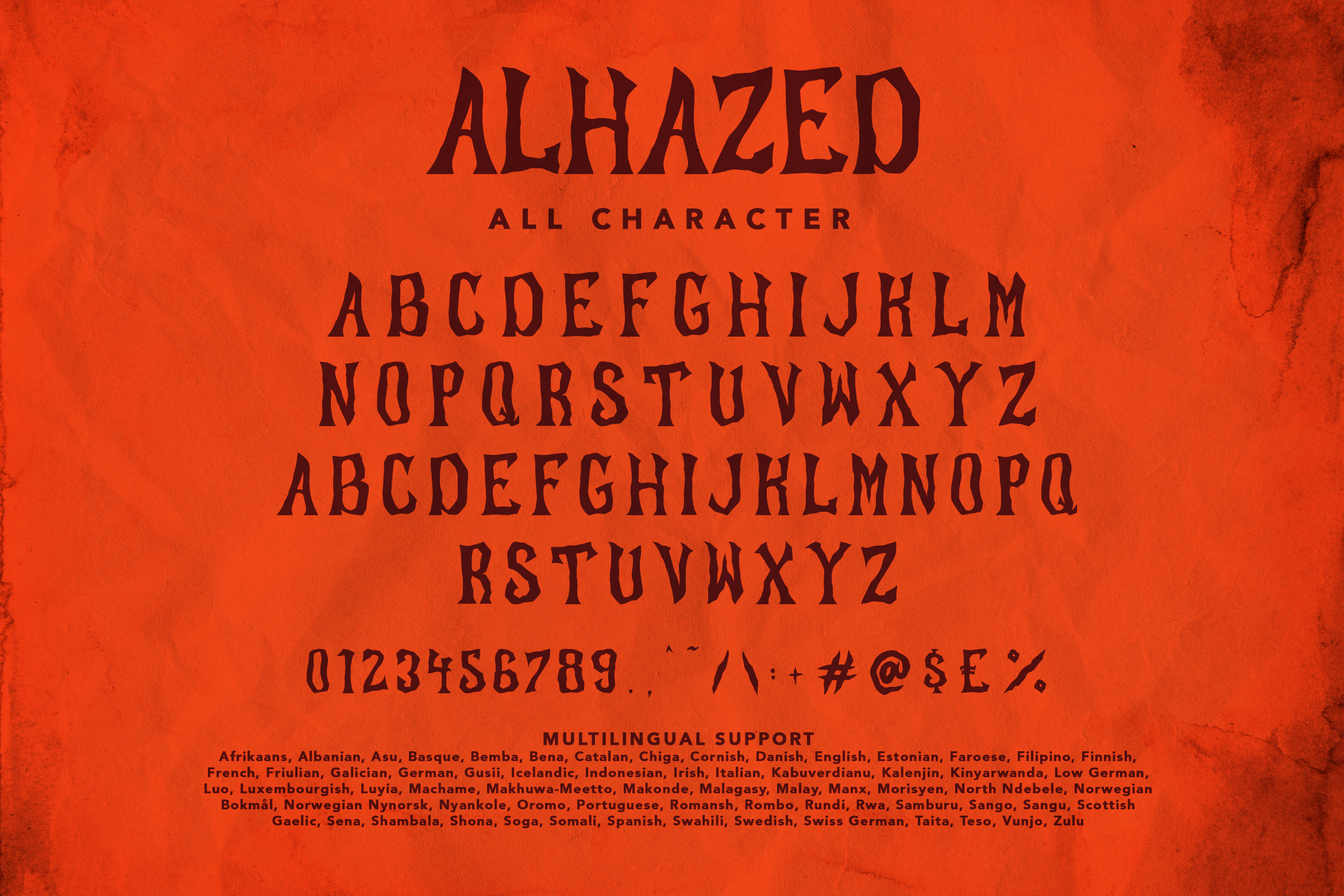 Perfect for Halloween party posters, horror decorations, or mystical-themed designs, Alhazed gives off a thrilling and fear-inducing feel. The bold and intimidating letterforms are able to bring the atmosphere of a dark night, full of secrets, and hidden mysteries.