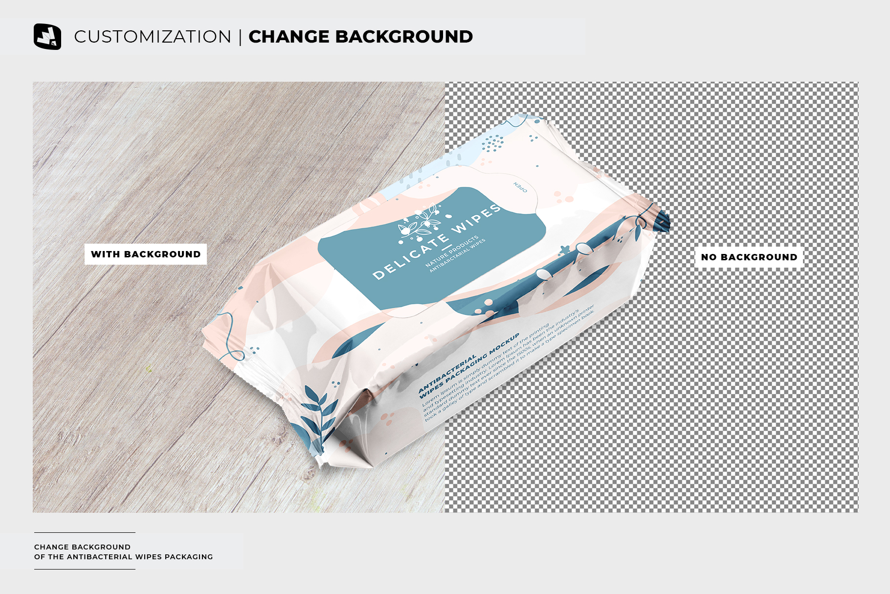 A beautiful wipes packaging mockup that works with any background.