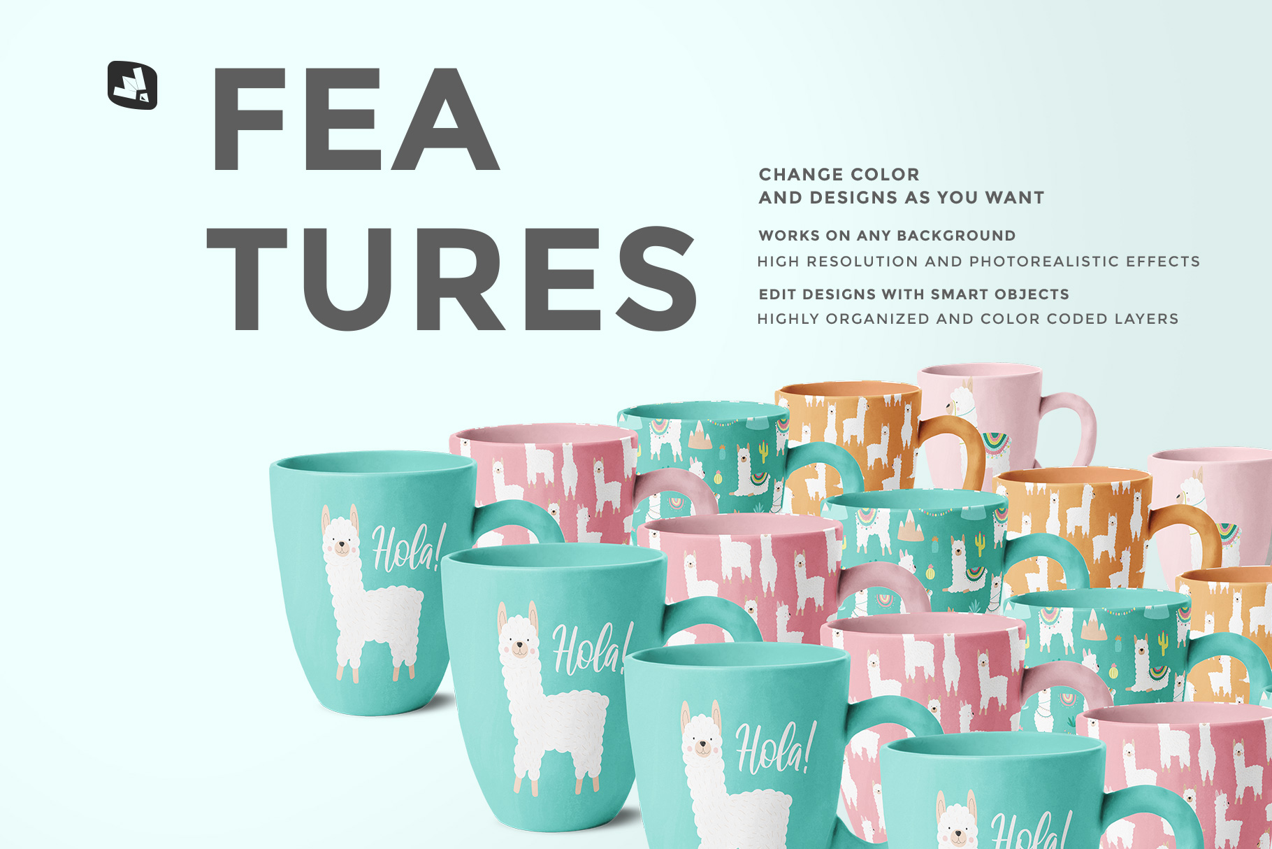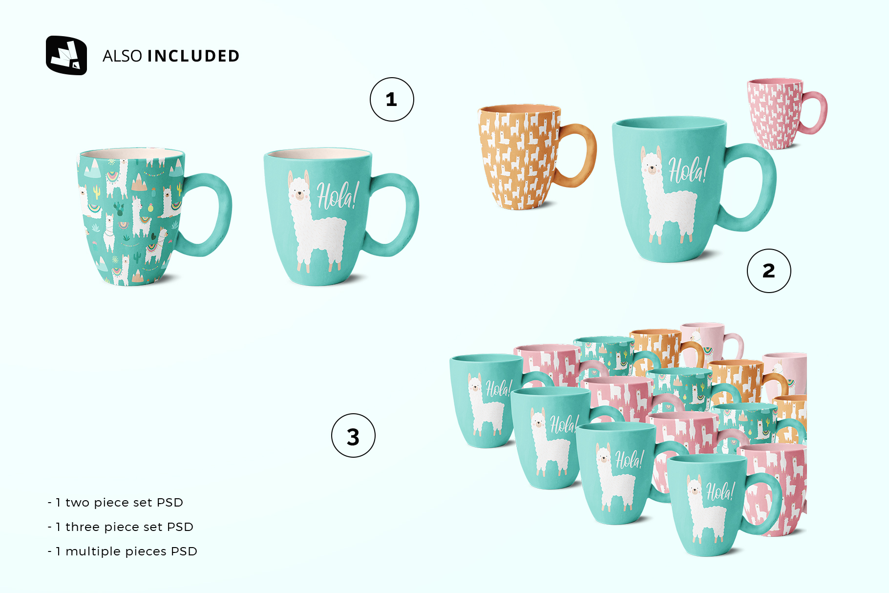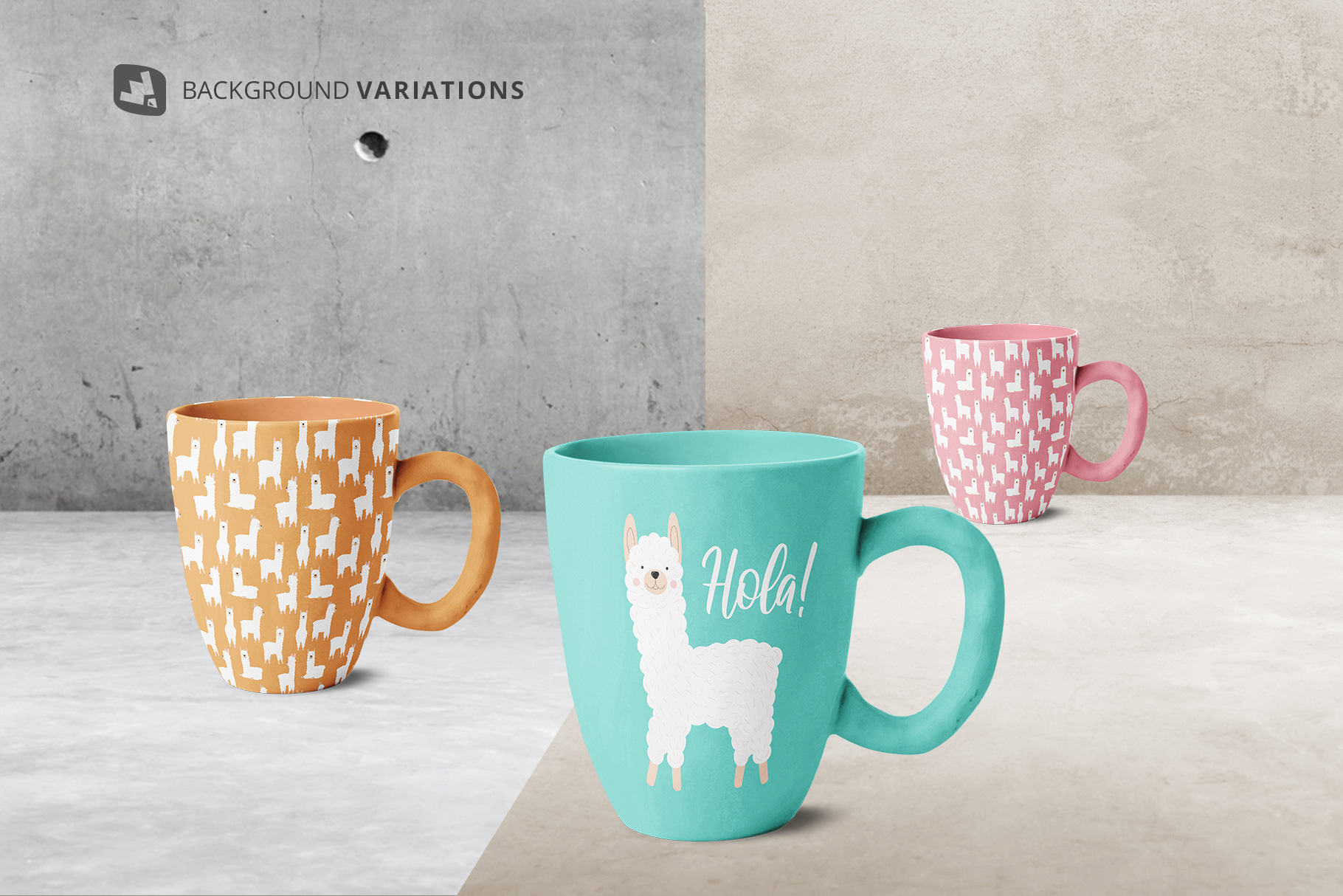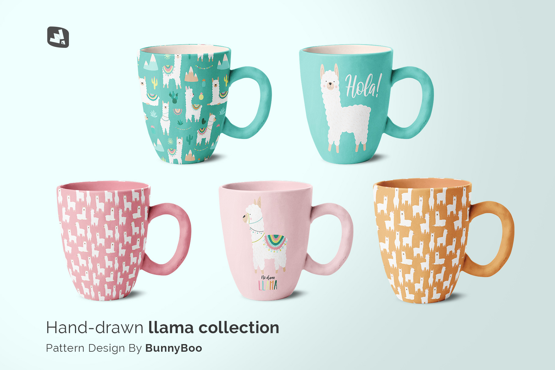 Note: The patterns used in the presentation are not included in the main file. We are very thankful to BunnyBoo for providing us these amazing patterns. To download the patterns used in this mockup please check the link Hand-drawn llama collection. You can check more patterns BunnyBoo.