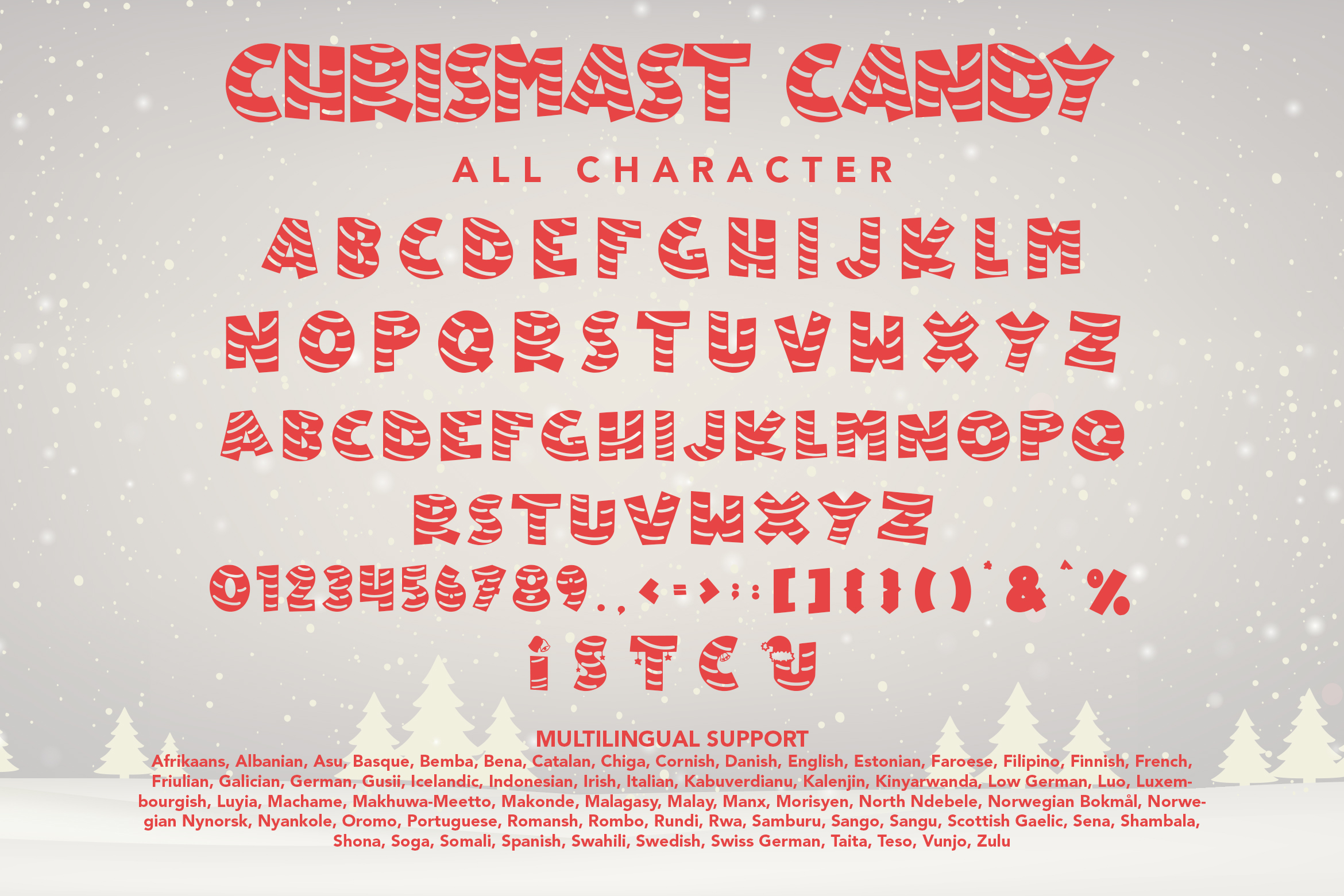 With its playful and festive look, Christmas Candy is perfect for creating Christmas cards, party invitations, posters, and other decorations that want to highlight the feel of Christmas cheer. Each letter features unique details, as if wrapped in the sparkle and joy of the holiday season. Christmas Candy not only serves as a text decoration, but also brings the spirit of Christmas into every word written.