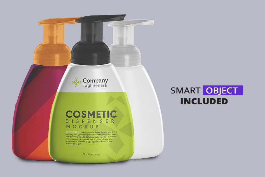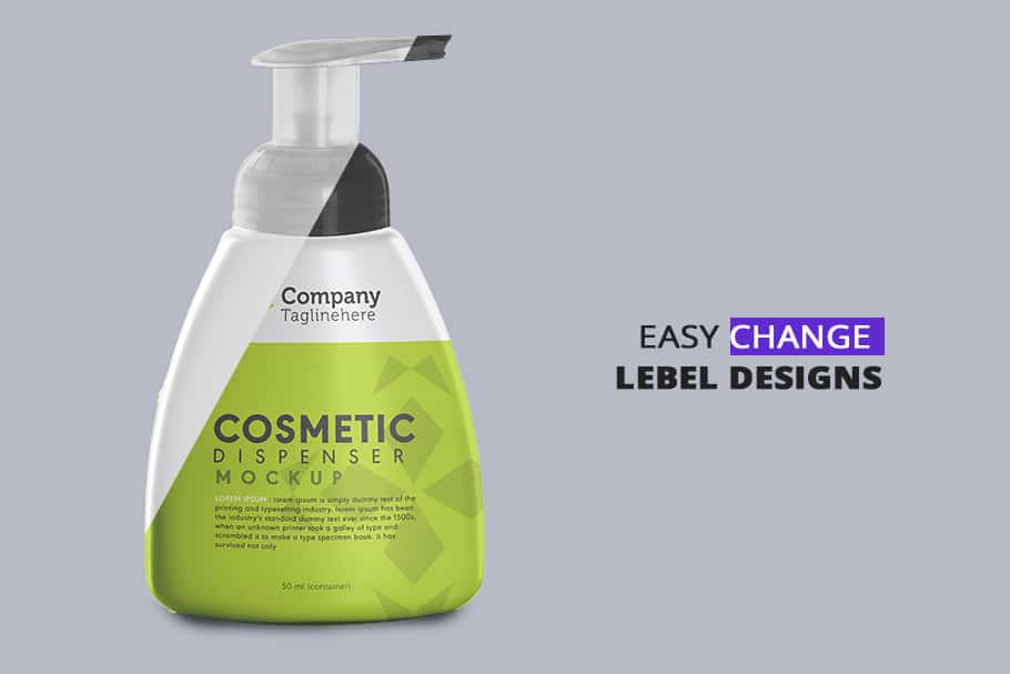 This PSD mockup is useful for showcasing liquid cosmetic product label design and hand wash soap company liquid hand washes product label template mockup. High resolution file 3500 x 4000 px is included. Photoshop smart layer is used to replace design easily.