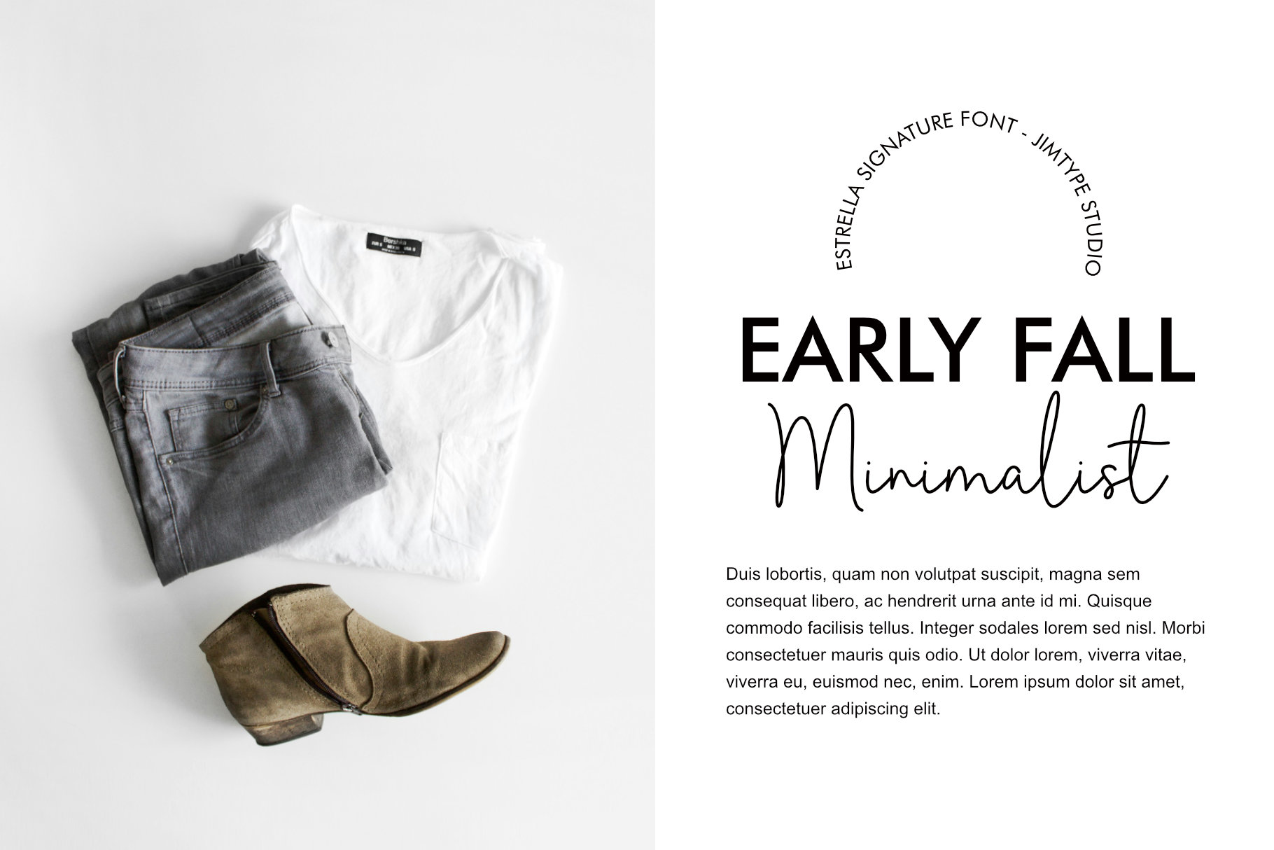 Meet Estrella, a minimalist and stylish signature font perfect for adding elegance to your projects. Ideal for branding, labels, photography, invitations, stationery, wedding designs, social media posts, advertising, product packaging, and more. Elevate your designs with the sleek sophistication of Estrella!