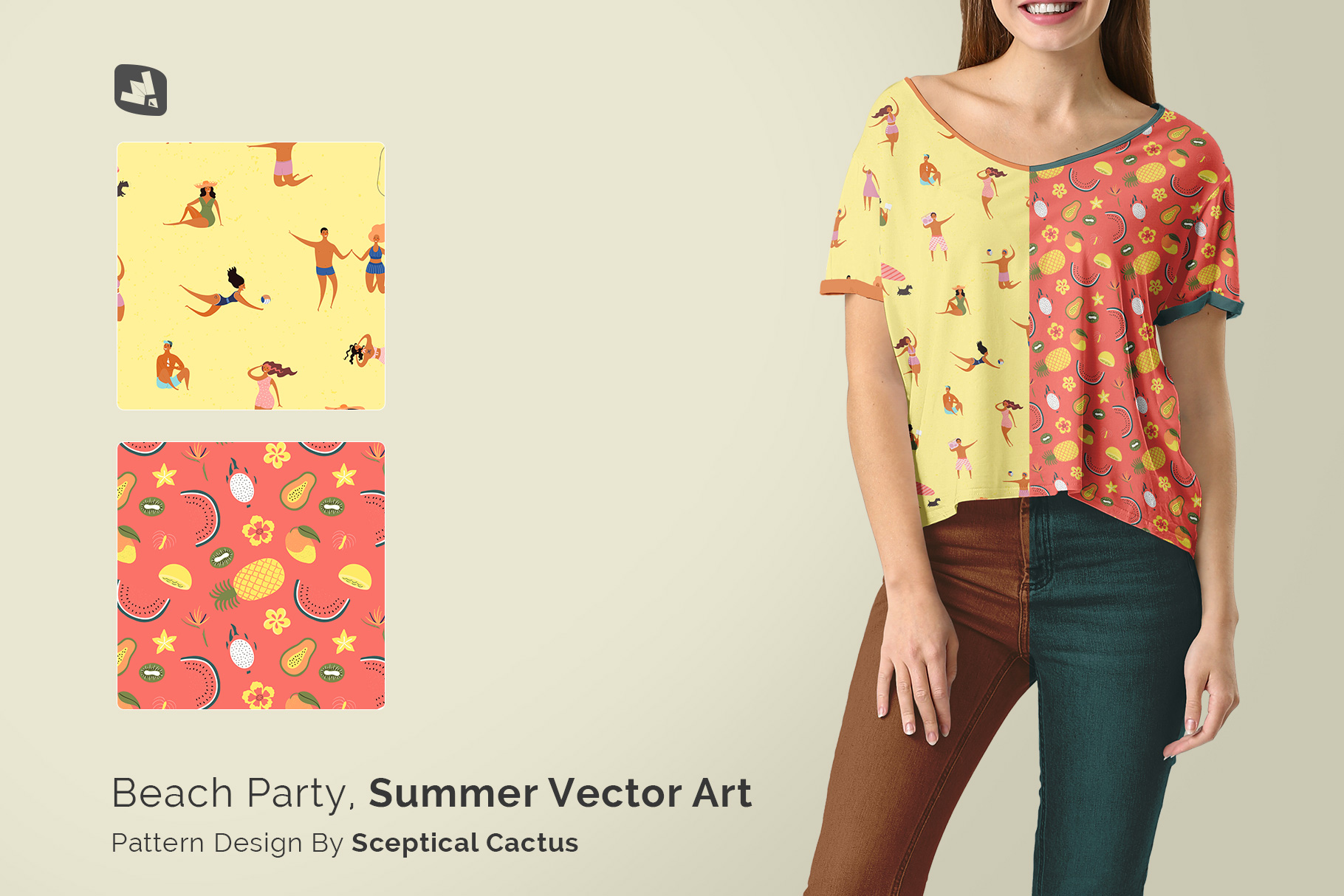 Note: The patterns used in the presentation are not included in the main file. We are very thankful to sceptical cactus for providing us these amazing patterns. To download the patterns used in this mockup please check the link Beach Party, Summer Vector Art. You can check more patterns sceptical cactus.