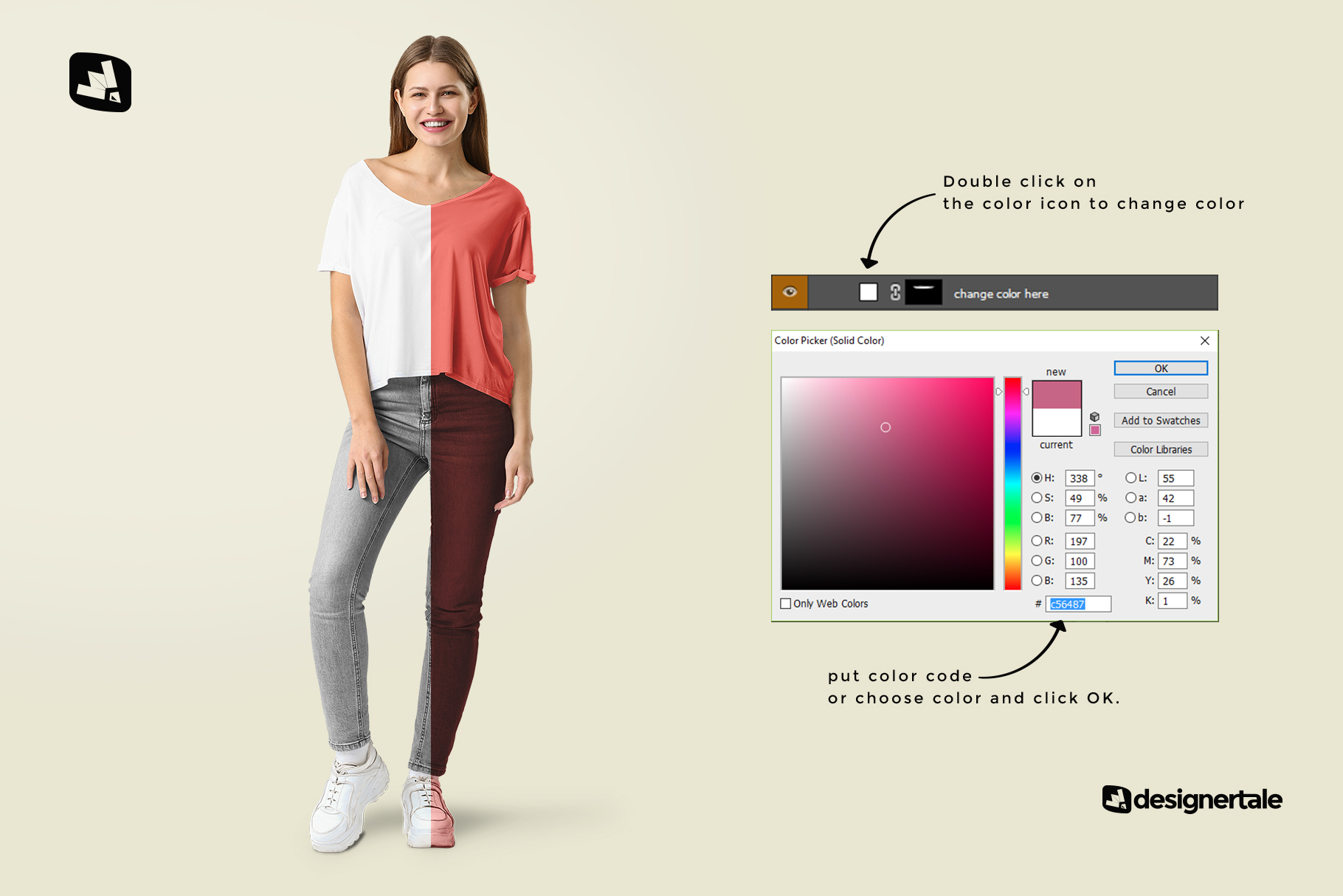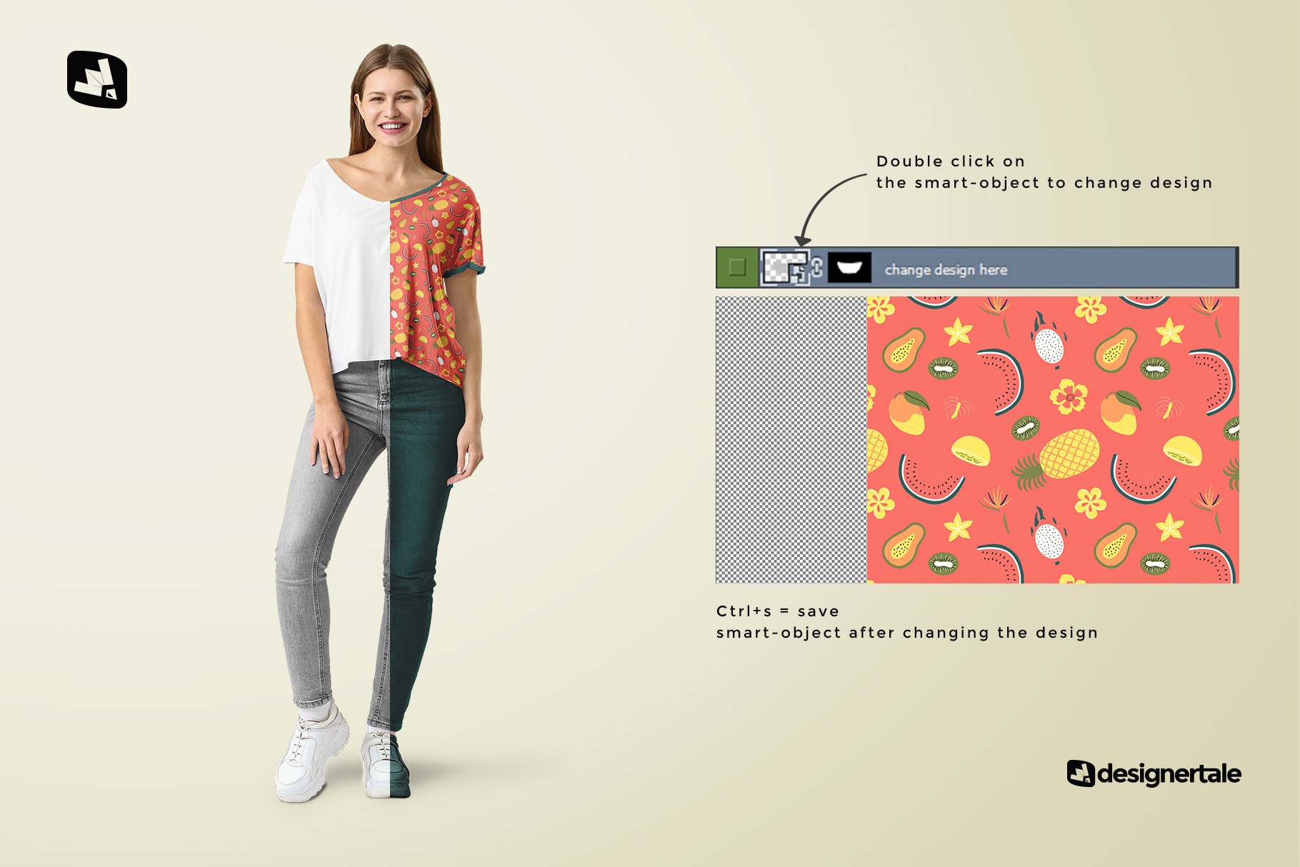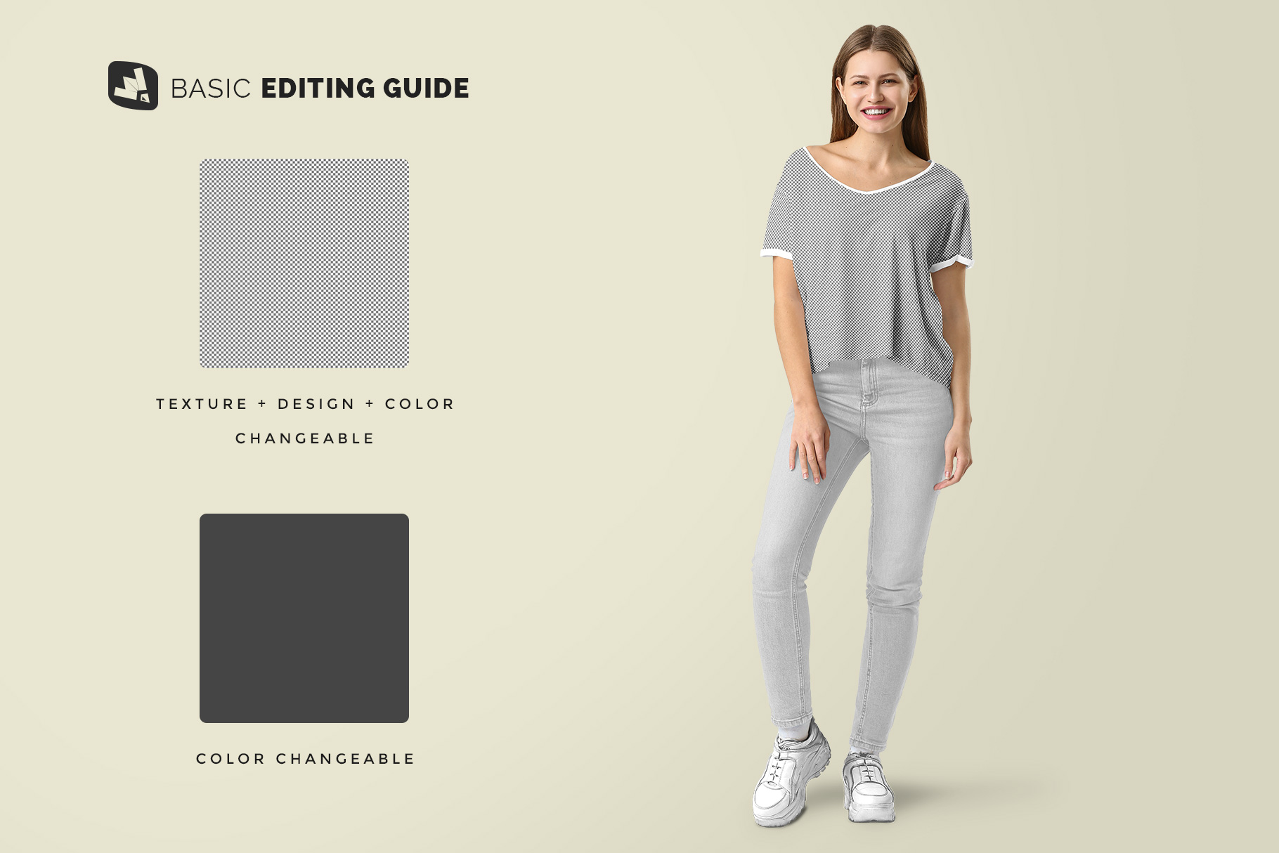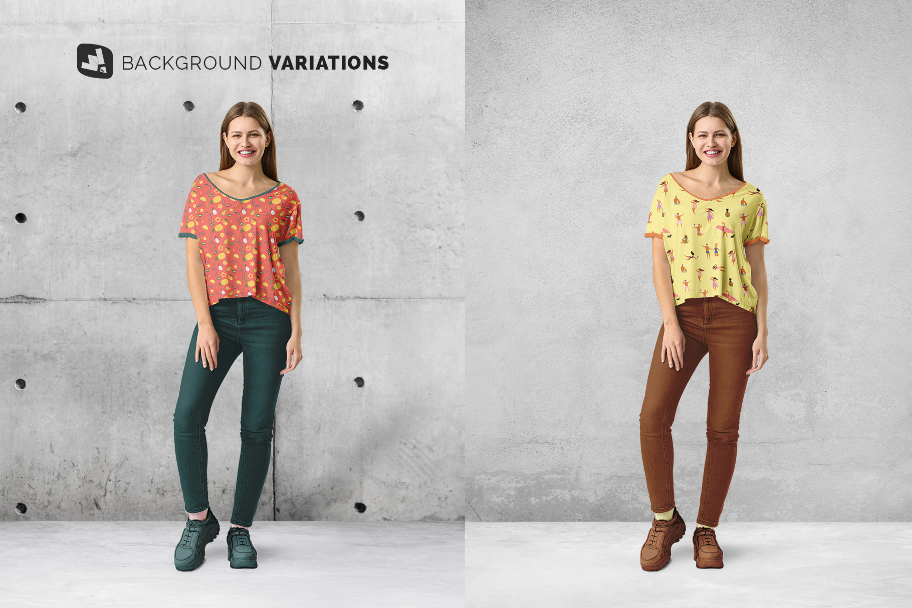 how to change design of the female everyday outfit mockuphow to change coor of the female everyday outfit mockuptypes of the female everyday outfit mockupbackground options of the female everyday outfit mockupzoomed in image of the female everyday outfit mockupcustomizable pants socks and shoe color of the female everyday outfit mockupfeatures of the female everyday outfit mockupeditability of the female everyday outfit mockupdesigner's credit of the female everyday outfit mockupbase image of the female everyday outfit mockupCasual everyday outfits are our daily necessity and also a great way to showcase your patterns in a very realistic fashion. The female everyday outfit mockup goes with every background. This female everyday outfit mockup is our latest addition to our women’s’ outfit collection. The women’s casual outfit mockup is customizable in every way. The top rim, sleeves, the pants, socks and the shoes are color changeable to match your pattern design.The apparel mockup base image is high-resolution and has photo-realistic effects to draw attention to your pattern designs. Color-coded and perfectly organized layers make your work smooth. The design shortcuts are very easy to use and save you a lot of time. A great collective item.
