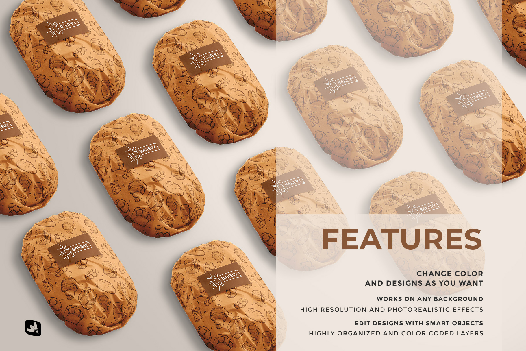 Fresh bread package branding mockup. Bread packaging mockup.