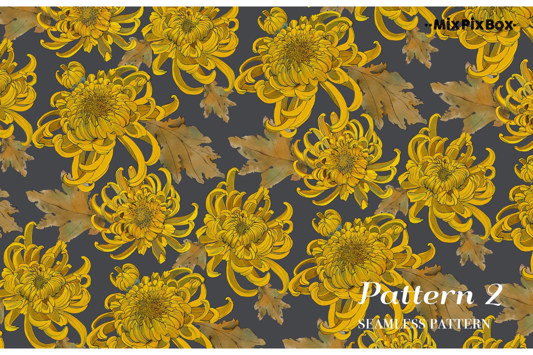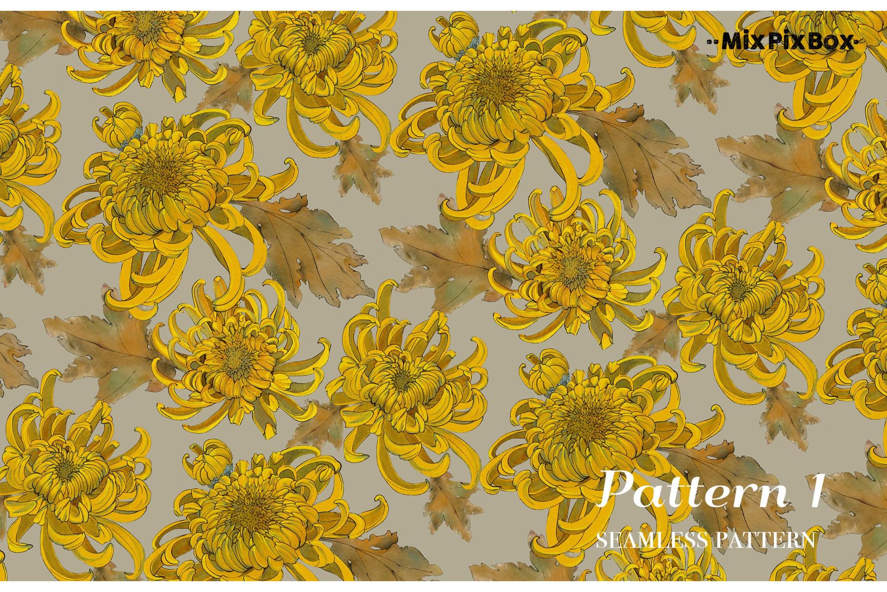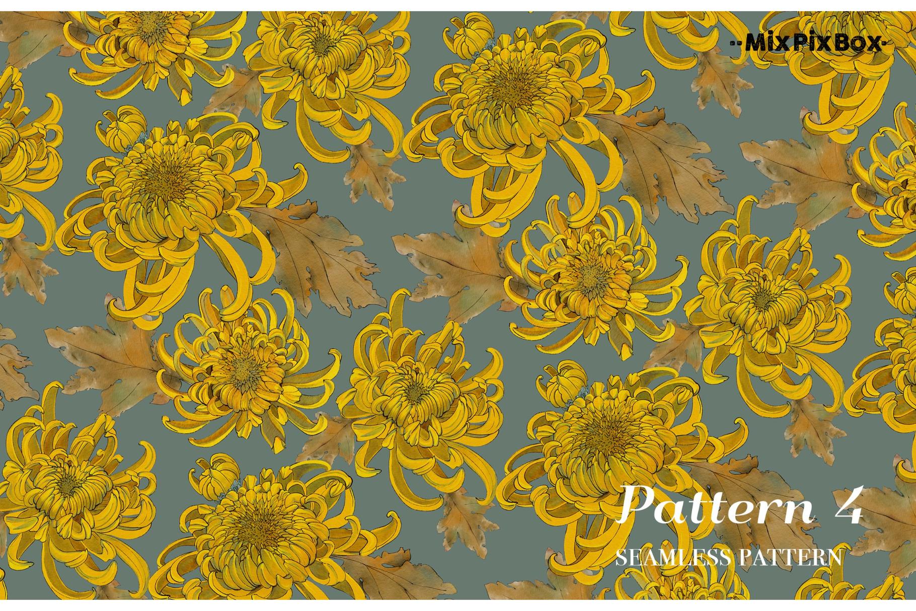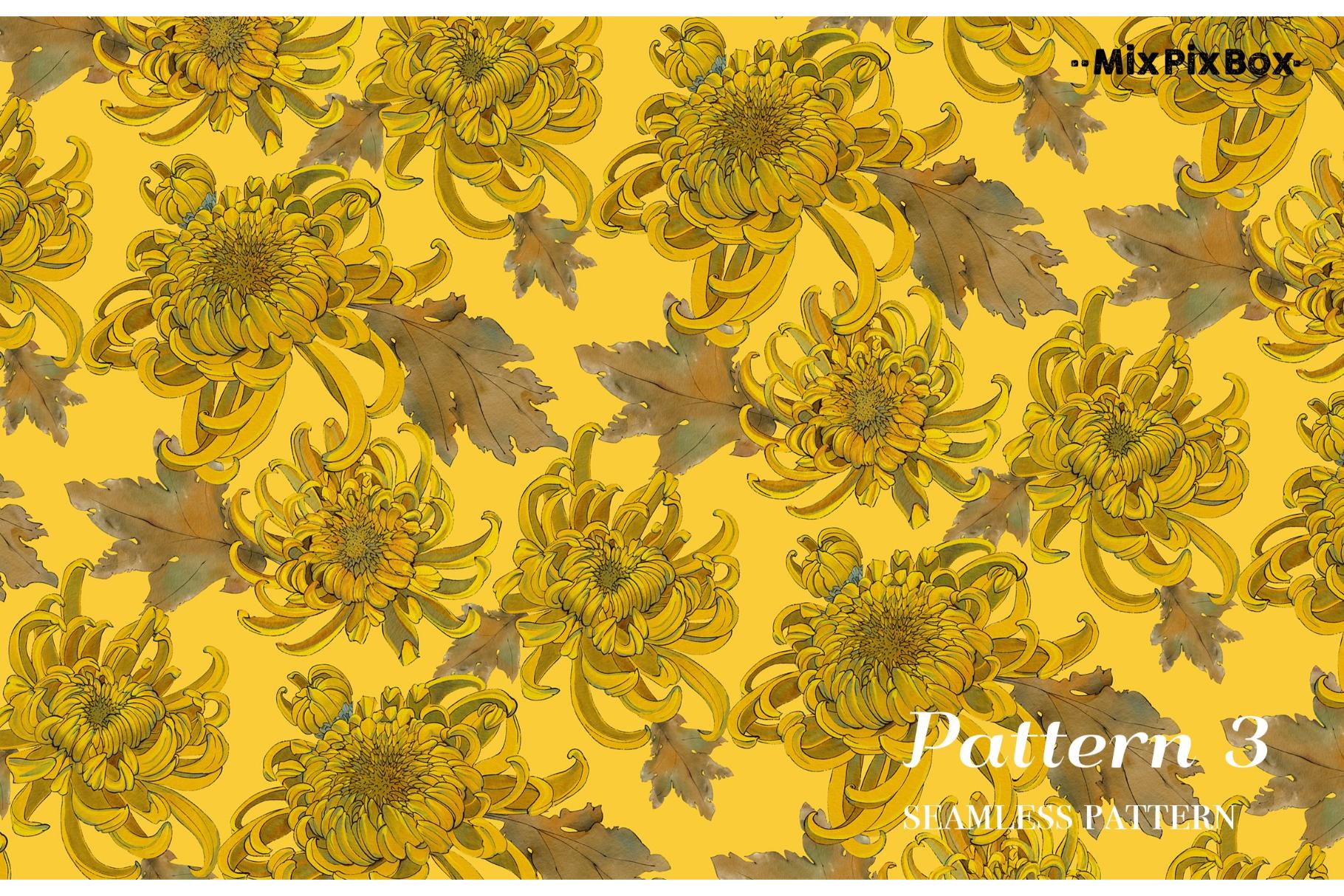Golden chrysanthemum – seamless pattern set includes: