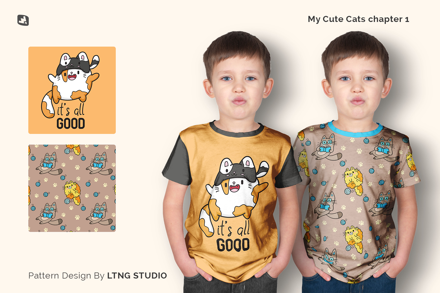 Note: The patterns used in the presentation are not included in the main file. We are very thankful to LTNG STUDIO for providing us these amazing patterns. To download the patterns used in this mockup please check My Cute Cats chapter 1. For more patterns like these please check LTNG STUDIO.