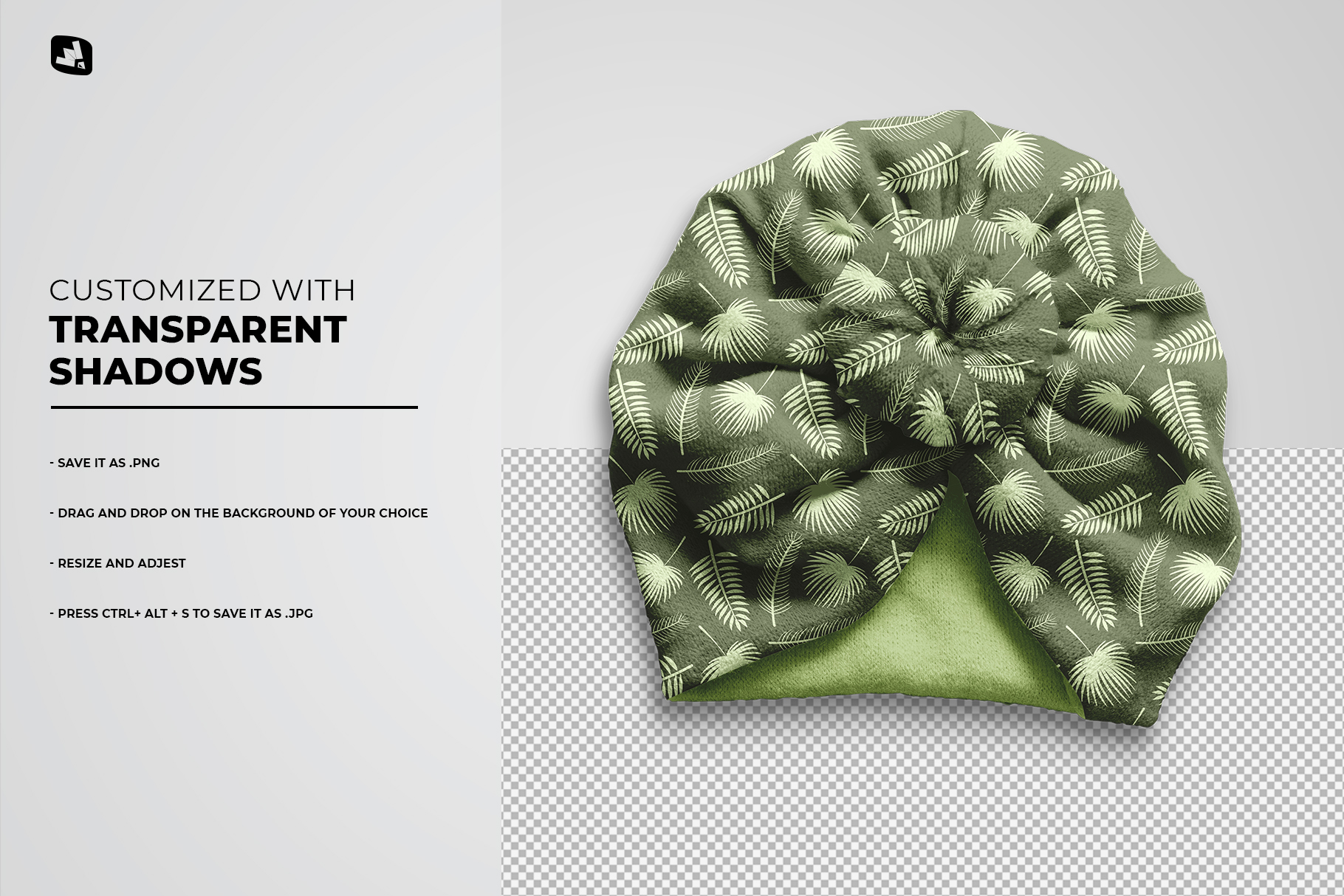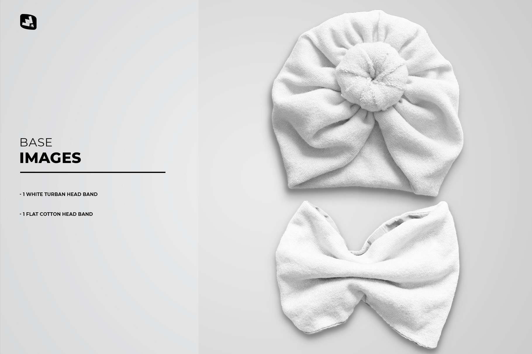 One of the mockup files for infant headbands is a top-view of a front knotted turban headband.
