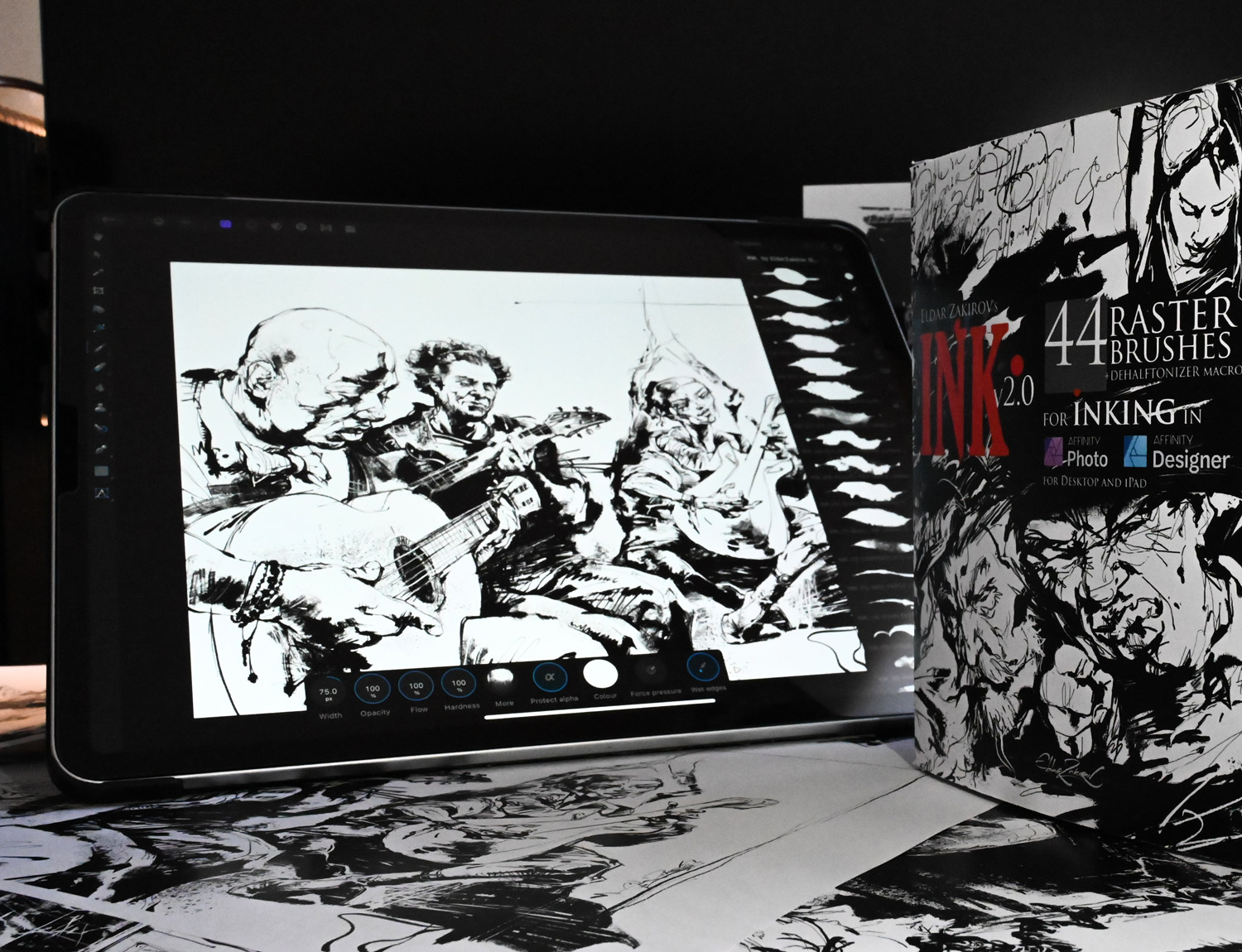 INK. for Affinity Photo & Designer: 44 raster Brushes + Dehalftonizer macros — for desktop & iPad