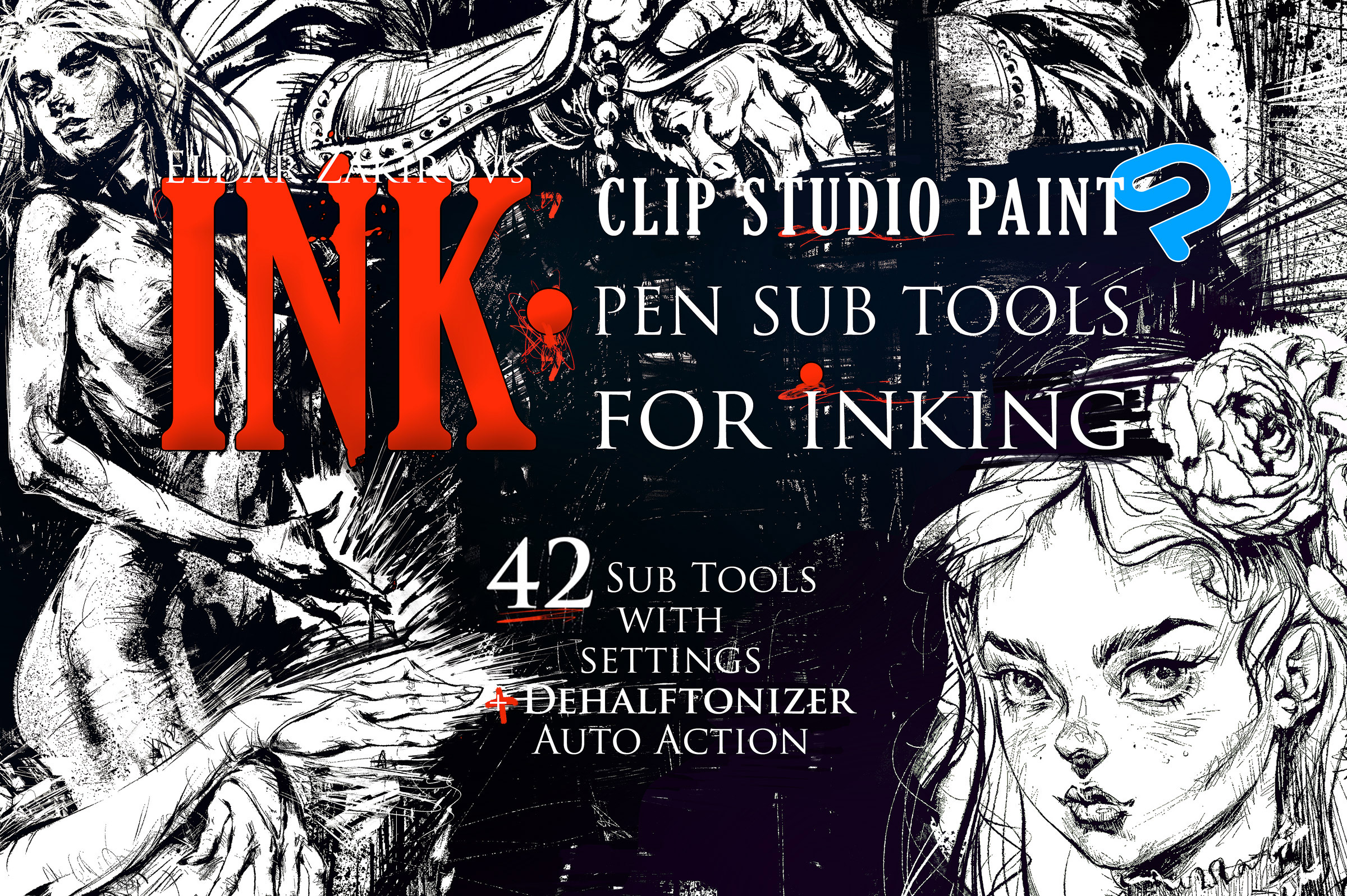 INK. for CSP: 41 Sub-Tools for Inking + Auto Action for 100% black