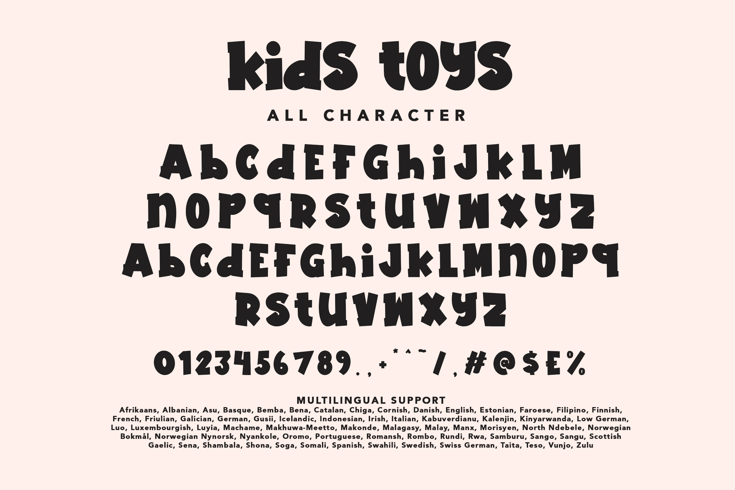 Kids Toys is perfect for various design projects related to children, such as toy packaging, story books, birthday party invitations, to children’s event posters and banners. Each letter is like a small, lively toy, bringing an atmosphere of joy and unlimited imagination.