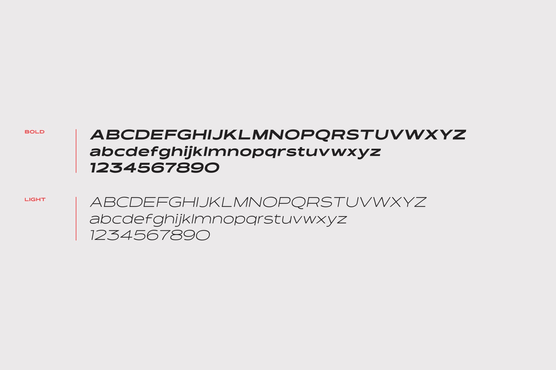The “Kinetica Sans” family includes two weights (Light and Bold) with their matching