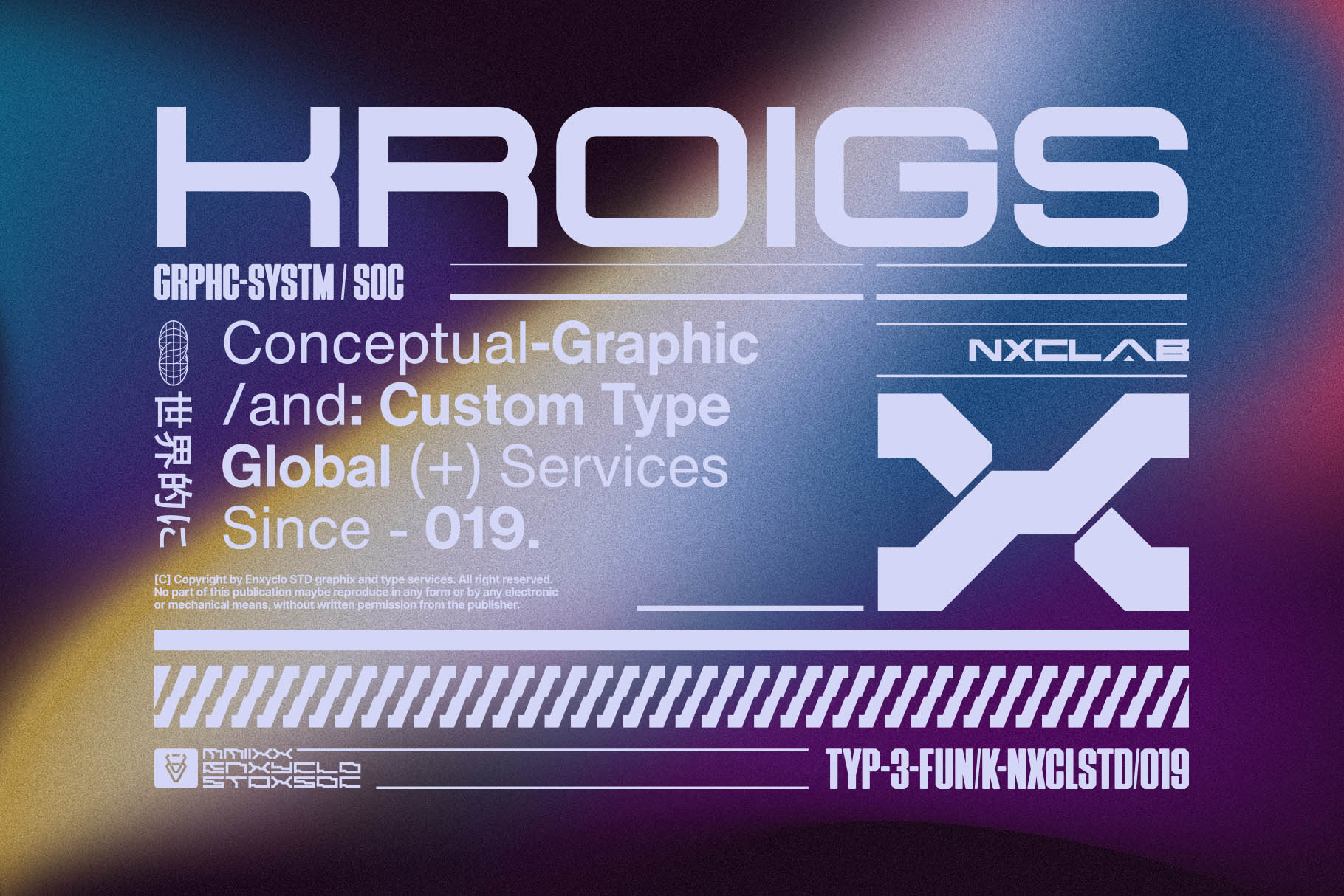 KROIGS is futuristic display font. The design of typeface will make your project more powerful and inspiring. It is perfect for headline, billboard, magazines, website, titles, poster, branding, thumbnail, t-shirt design, street wear design, and creative logos, or any project that needs futuristic touch. With this beautiful futuristic display font, absolutely you can make your project stand out from the rest. See the previews above to get some inspiration on how to use them.