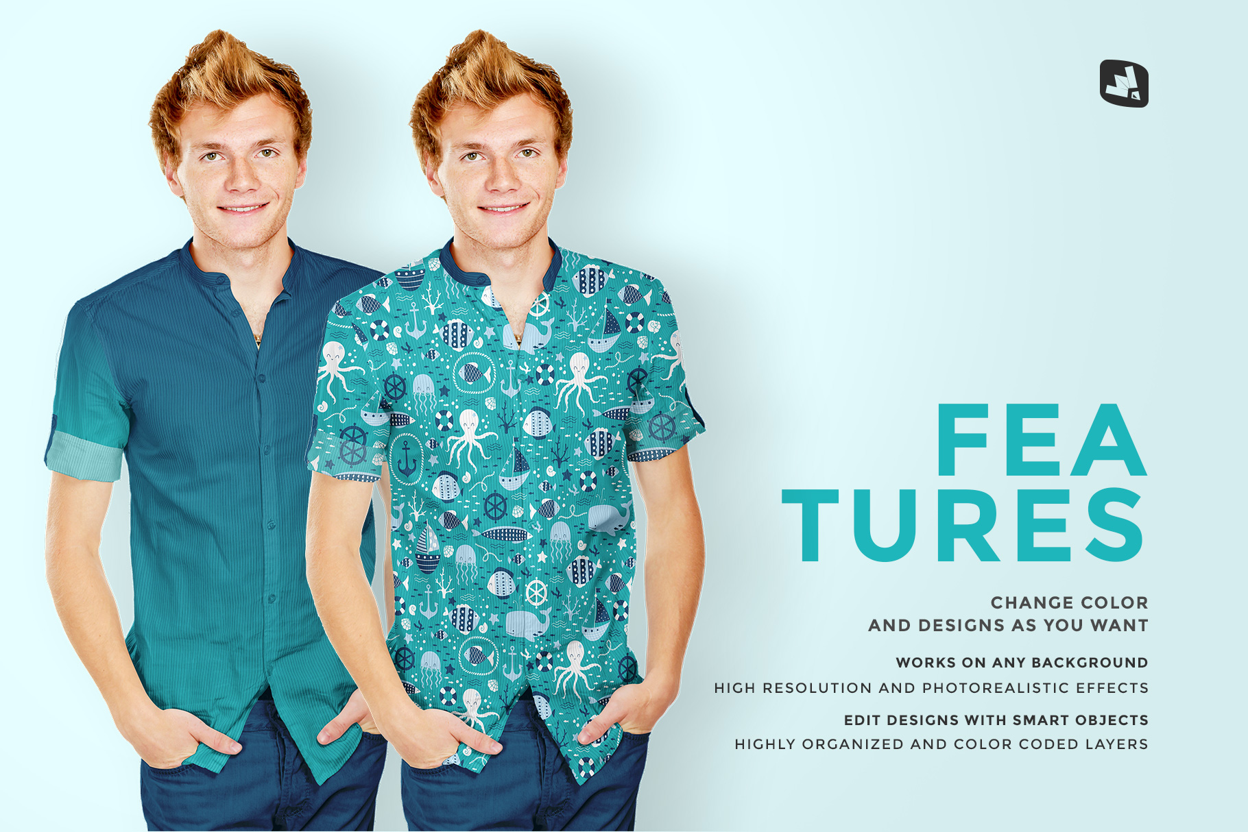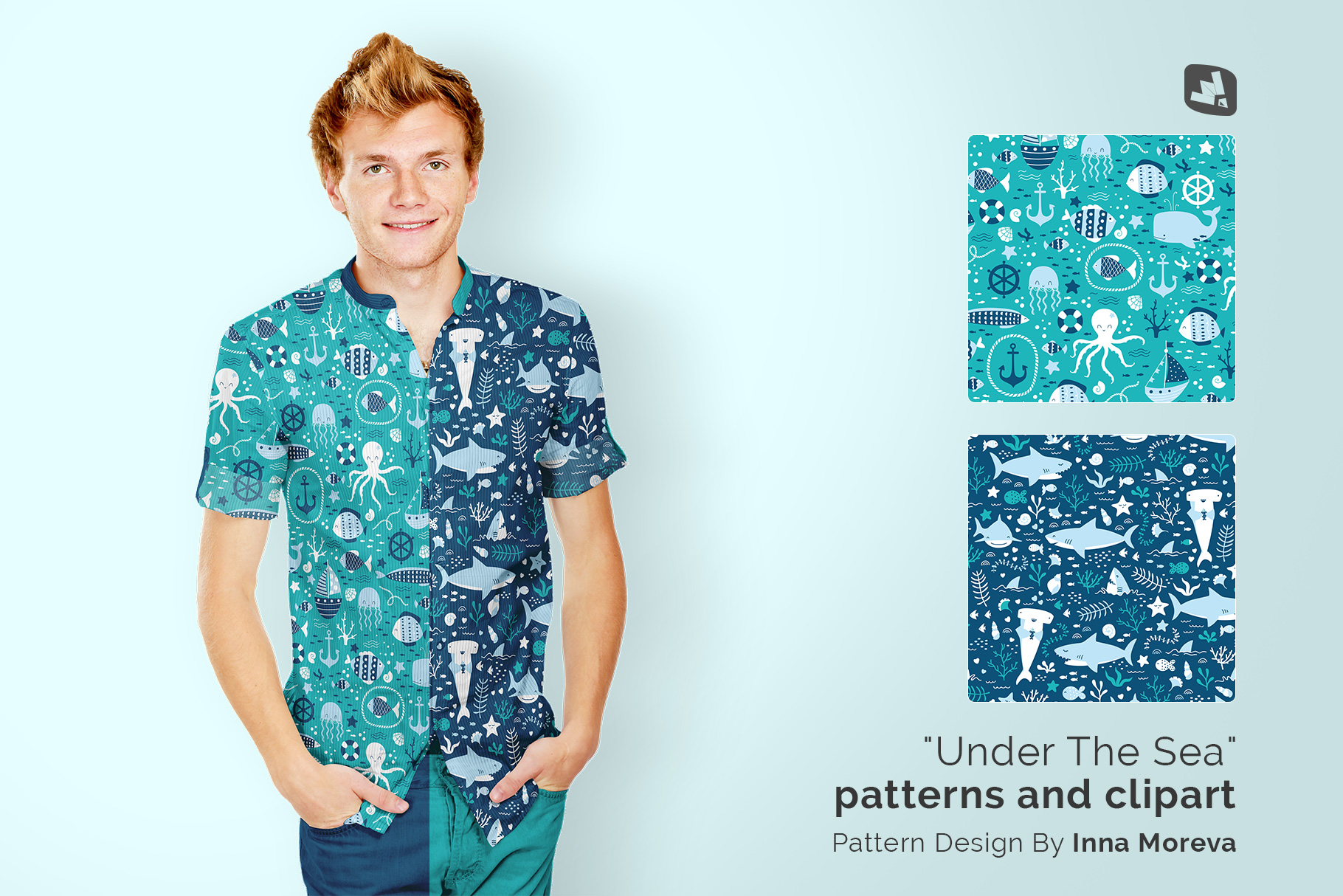 Note: The patterns used in the presentation are not included in the main file. We are very thankful to Inna Moreva for providing us these amazing patterns. To download the patterns used in this mockup please check the link “Under The Sea” patterns and clipart. You can check more patterns Inna Moreva.