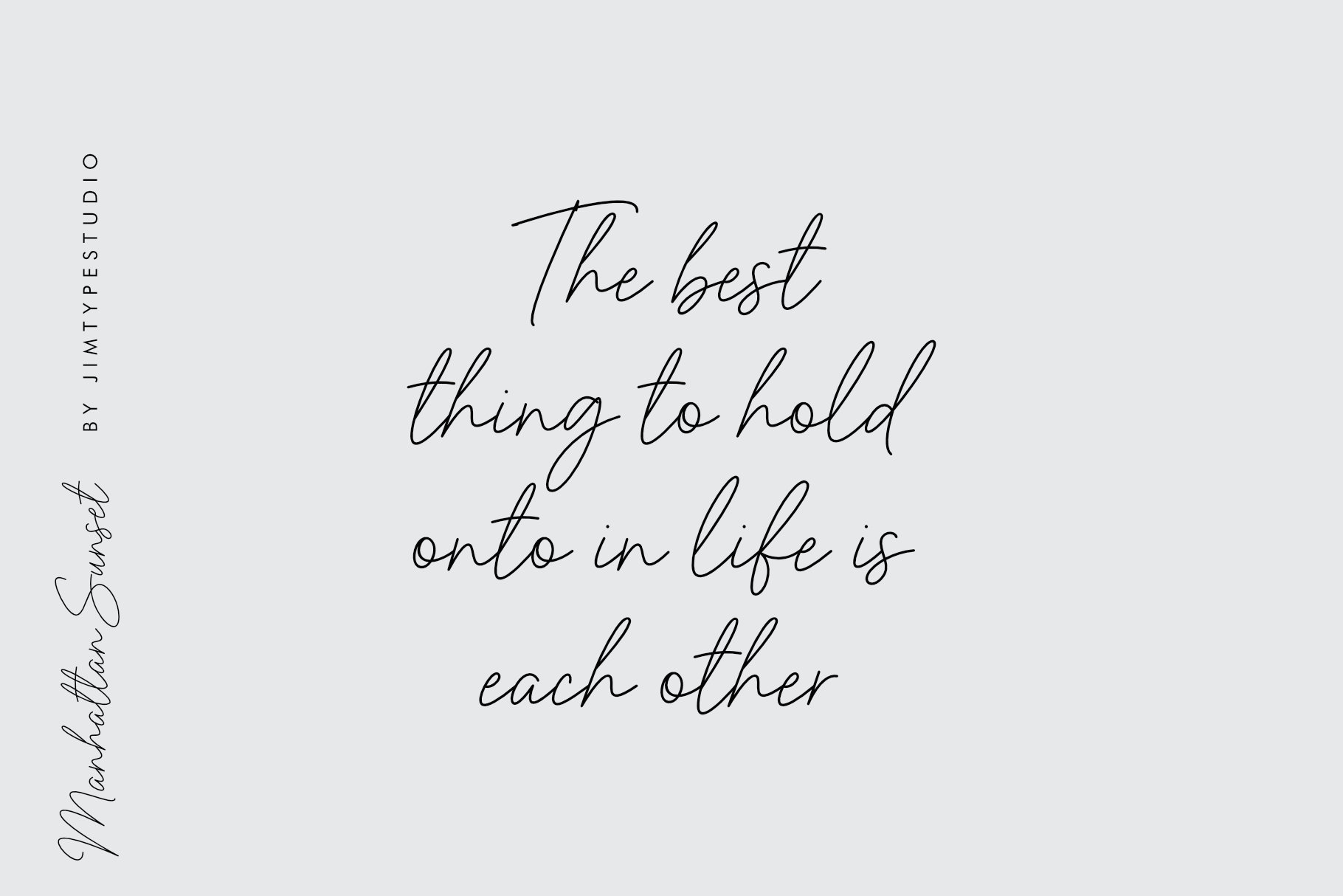 Introducing Manhattan Sunset, a stylish script font designed to elevate your branding, social media, product design, and advertising projects. Its sophisticated and flowing style brings a touch of elegance to every creation.