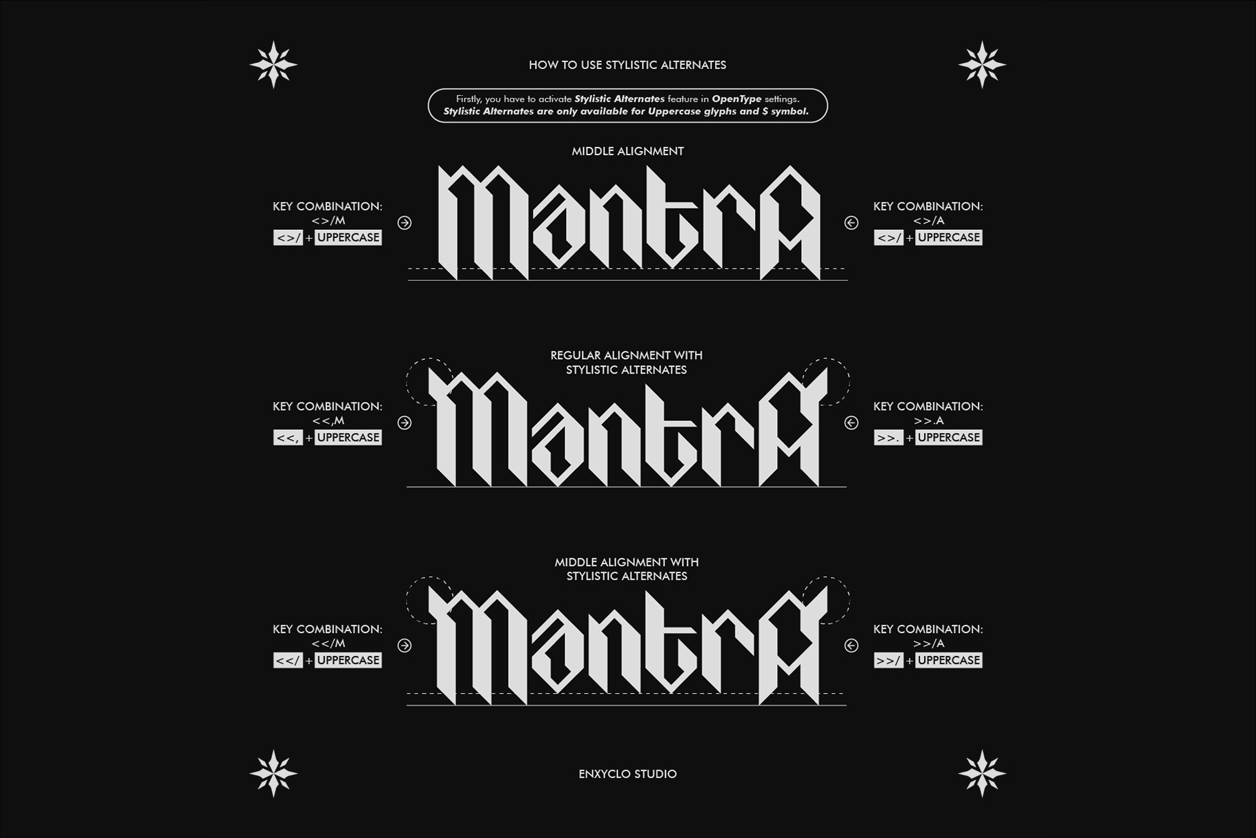 MANTRA is neo gothic font. Available in regular and rounded style. Masterfully designed to become a true favorite, this font has the potential to bring each of your creative ideas to the highest level! It was purposely crafted to be used in large point sizes, although it doesn’t lose its magic in small point sizes.