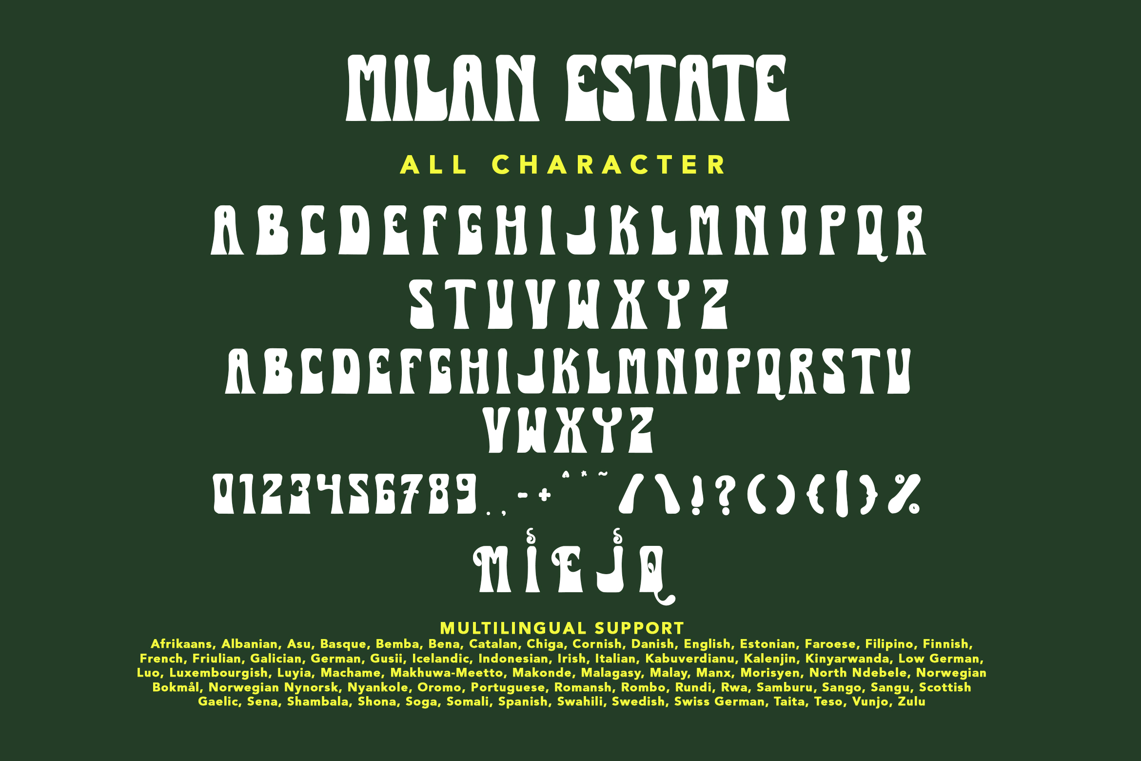 Perfect for projects that crave a touch of vintage flair, Milan Estate Groovy Retro Display Font injects a sense of coolness and nostalgia into logos, posters, and headlines. Its dynamic and energetic presence transforms any design into a visual journey through the groovy days of the past.