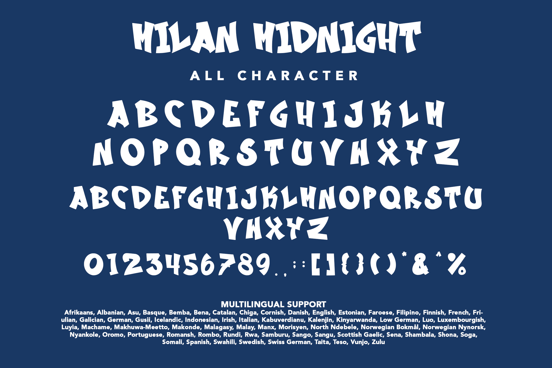 Milan Midnight is a graffiti display font is an authentic representation of street courage and creativity. With bold strokes and wild accents, each letter conveys the energy that echoes off the city walls. The design brings a touch of rebellion and irrepressible expressiveness, creating a wild and vibrant urban atmosphere. From the rustic letters to the eye-catching accents, each character exudes rugged elegance and unmatched versatility. This font is the perfect choice for projects that require a bold, edgy style that will attract attention and make it unforgettable.