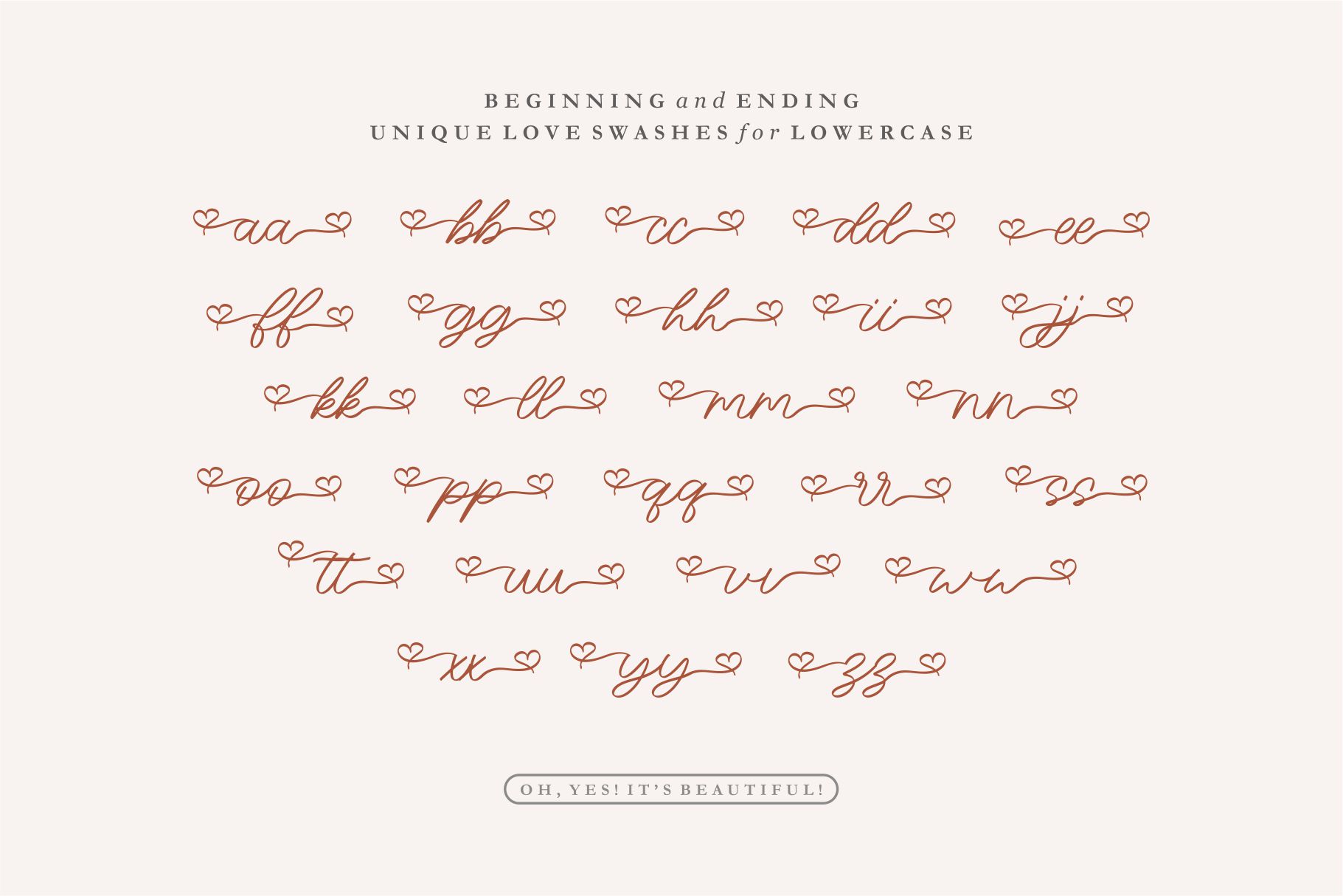 NCL BIQUE KISTY is romantic love heart swash script font. It is unique handwritten script font with heart or love swashes. Masterfully designed to become a true favorite, this font has the potential to bring each of your creative ideas to the highest level! It was purposely crafted to be used in large point sizes, although it doesn’t lose its magic in small point sizes. It is perfect for wedding or romantic event, headline, billboard, magazines, website, titles, poster, branding, t-shirt design, and logos. No matter the topic, this font will be an incredible asset to your fonts’ library, as it has the potential to elevate any creation. With this beautiful font, absolutely you can make your project stand out from the rest. See the previews above to get some inspiration on how to use them.