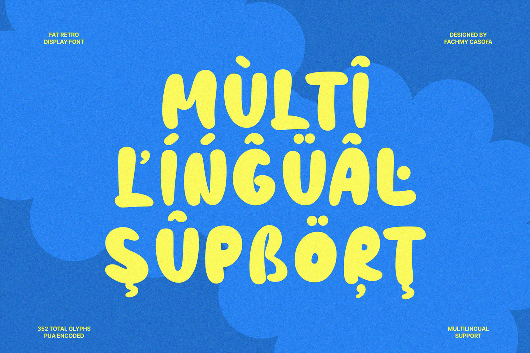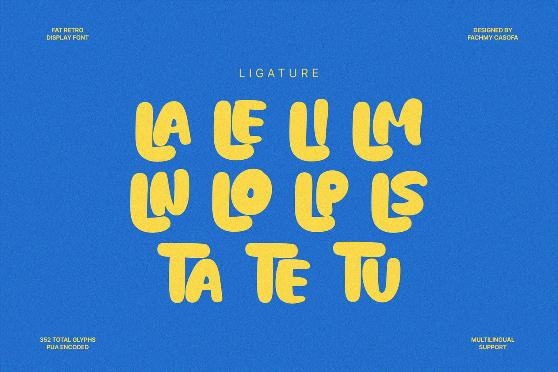 NCL Fatboy Onishuke – Fat Bubble Bold Brush Font is a bold, playful, and vibrant retro display font. Its plump and juicy design adds a dynamic and energetic touch to any creative project. This font is masterfully crafted to shine in large point sizes, while still maintaining its expressive qualities even in smaller sizes.