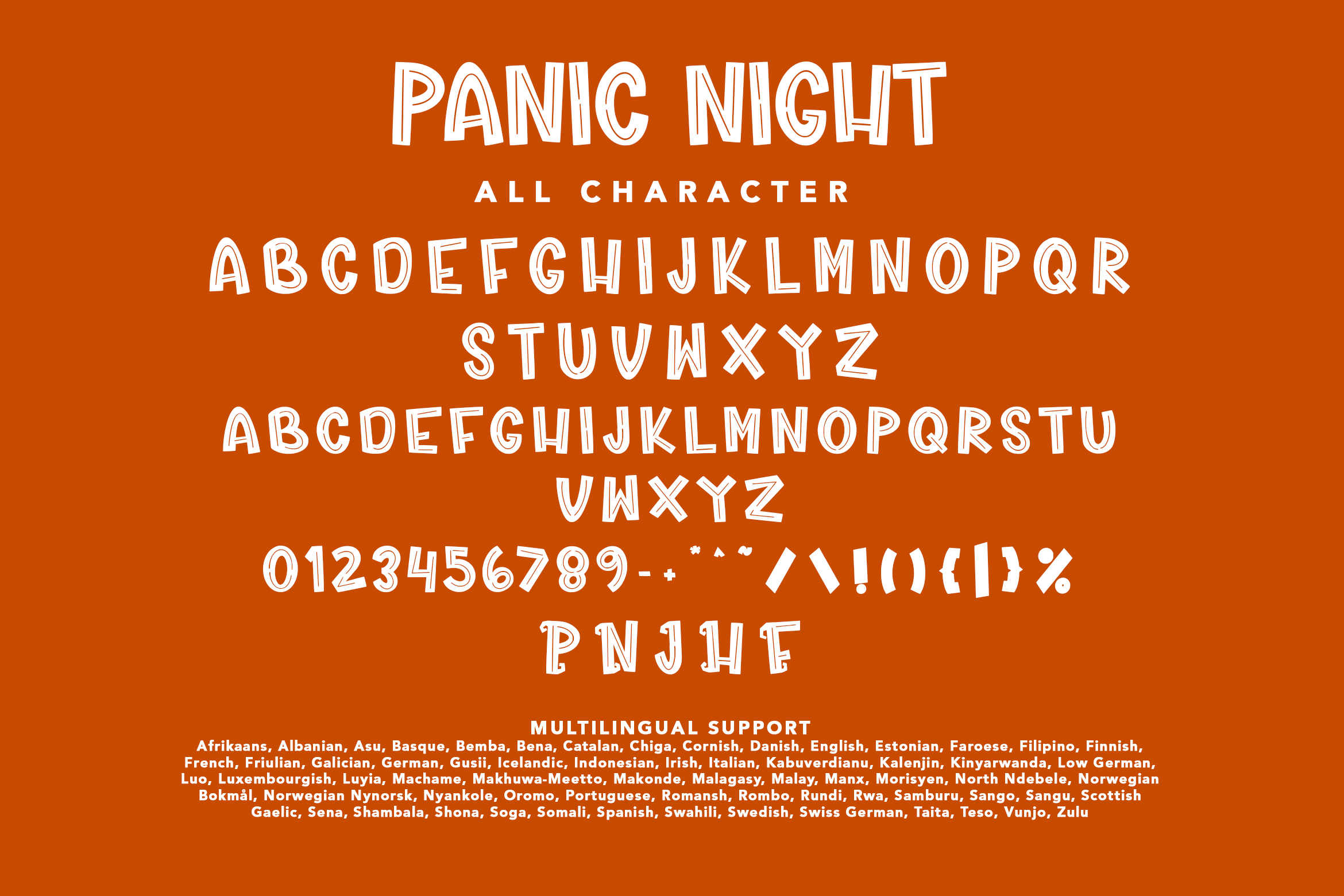 Panic Night exudes a mesmerizing aura of tension and intensity. With its sharp lines and chaotic letterforms, this font evokes a sense of terror and chaos, as if taken straight from a horror movie or a gripping nightmare.