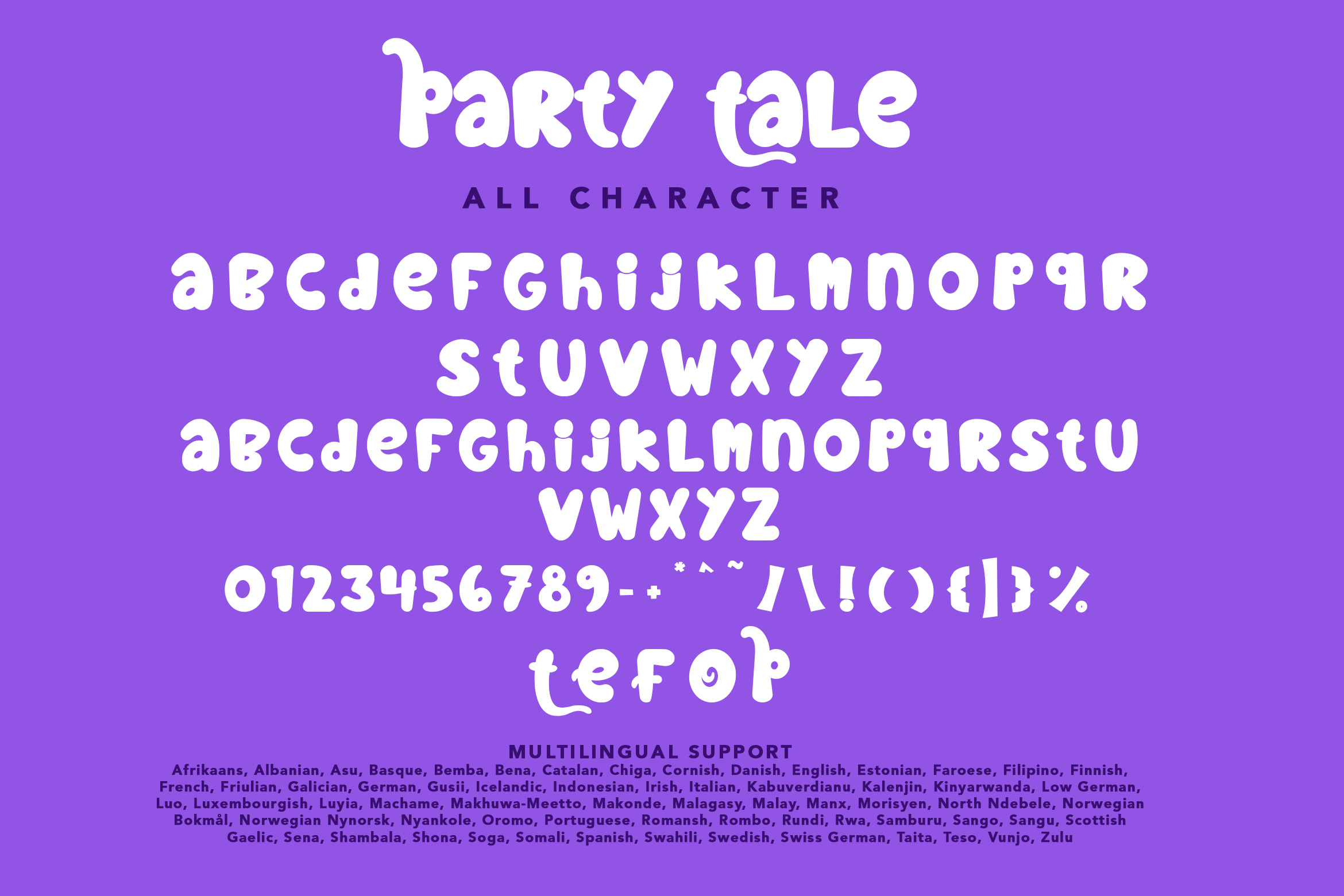 Party Tale is a Playful Display Font. A typeface designed to showcase characters that are fun, expressive, and full of life, similar to the handwritten style often found in comics. With bold, linear, and often eccentric shapes, this font is designed to make a strong, clear impression when used in titles, typical comic text, or graphic designs with a comic feel.
