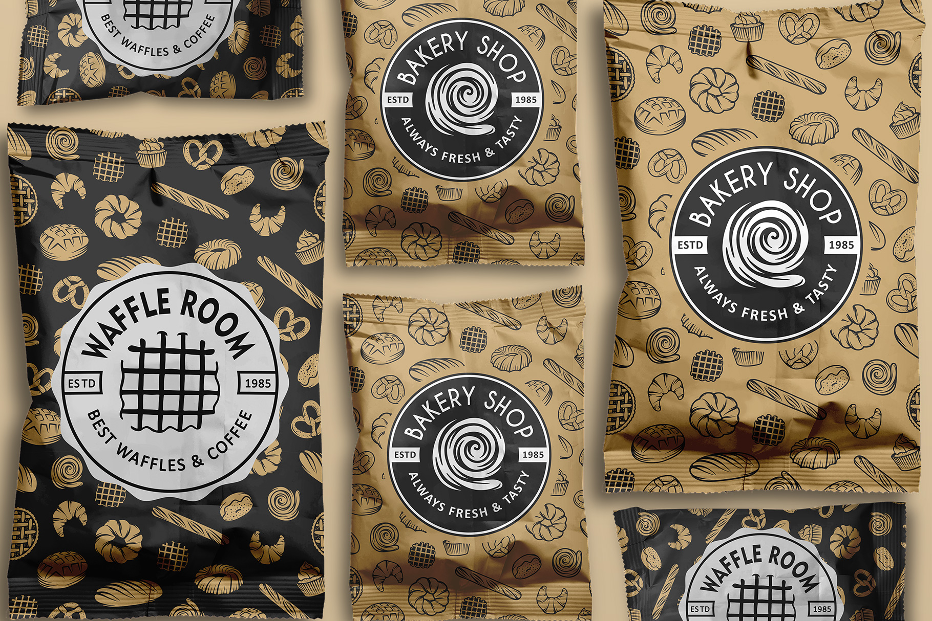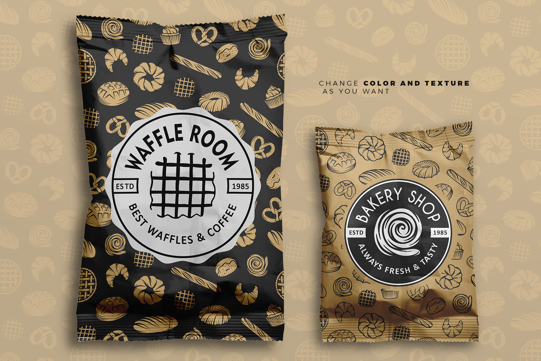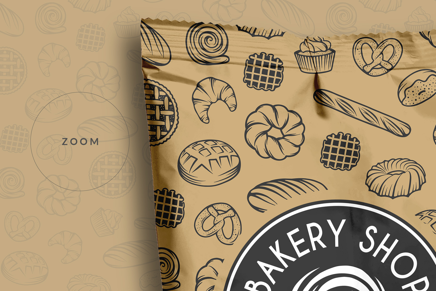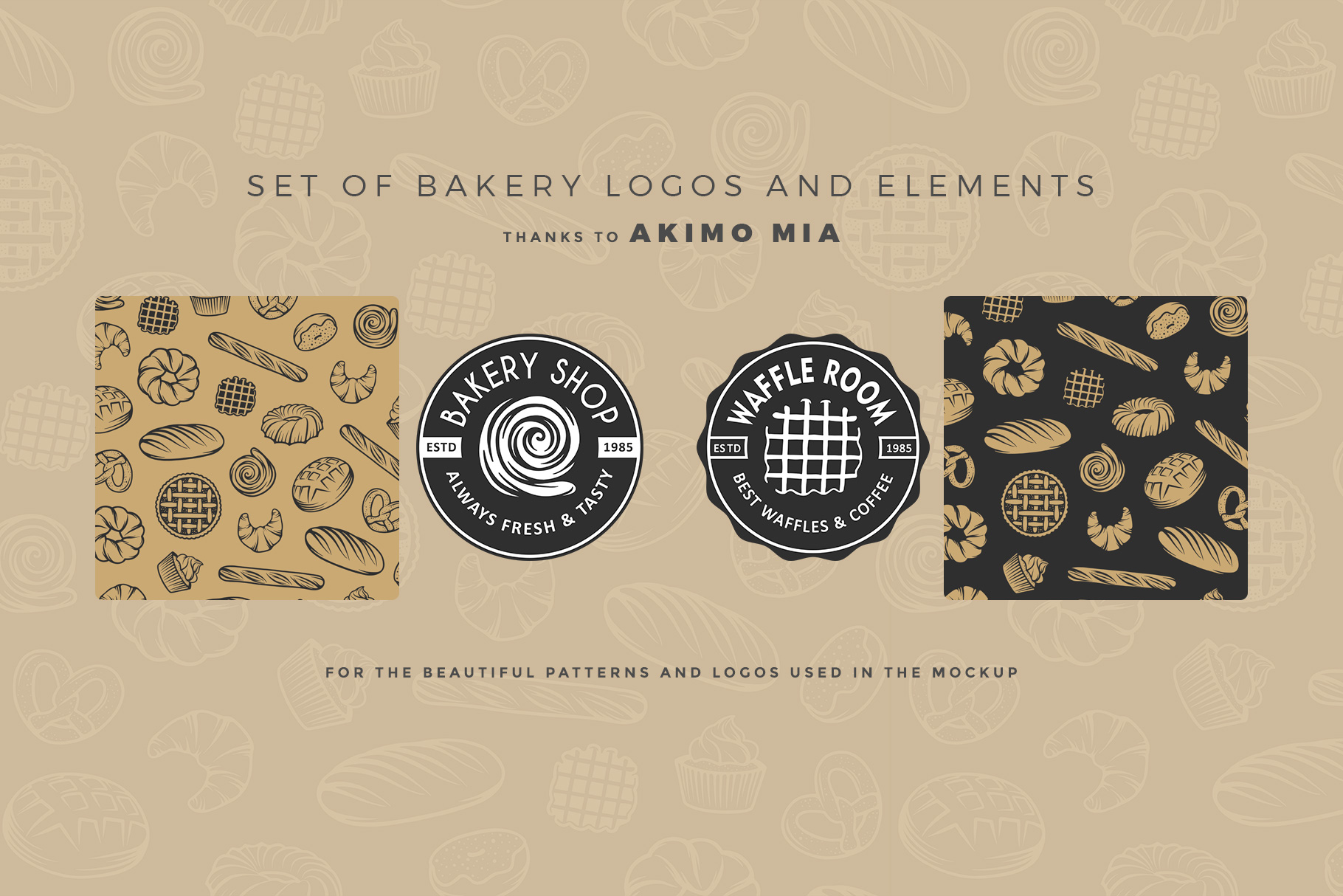 Note: The patterns and logos used in the presentation are not included in the main file. We are very thankful to Akimo Mia for providing us these amazing logos and patterns. To download the patterns and logos used in this mockup please check the link Set of bakery logos and elements. Vector Set Ornaments. You can check more patterns on Akimo Mia.