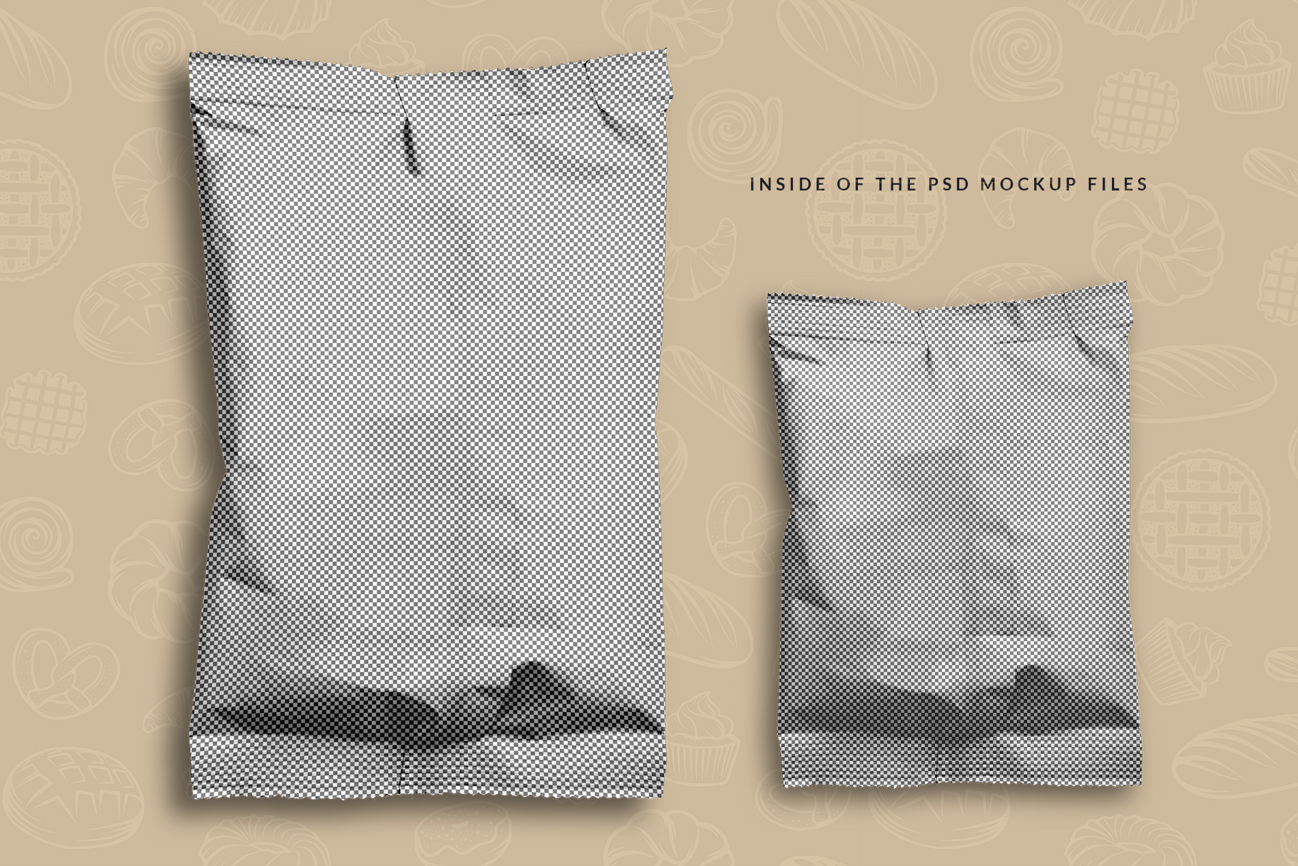 presentation of the plastic snack pouch packaging mockup editable options of the plastic snack pouch packaging mockup zoomed in image of the plastic snack pouch packaging mockup patterns and logos used in the plastic snack pouch packaging mockup inside of the psd mockup file of the plastic snack pouch packaging mockup presentation of the plastic snack pouch packaging mockupThe plastic snack pouch packaging mockup is the best way of showcasing and logos and patterns, especially for branding. This plastic snack pouch packaging mockup has the versatility to give any logo and pattern designs it’s a professional look. The pouch packaging mockup has two different size packets one small and one big. Organized and color-coded smart objects are used to make this packaging mockup a time-saving item.