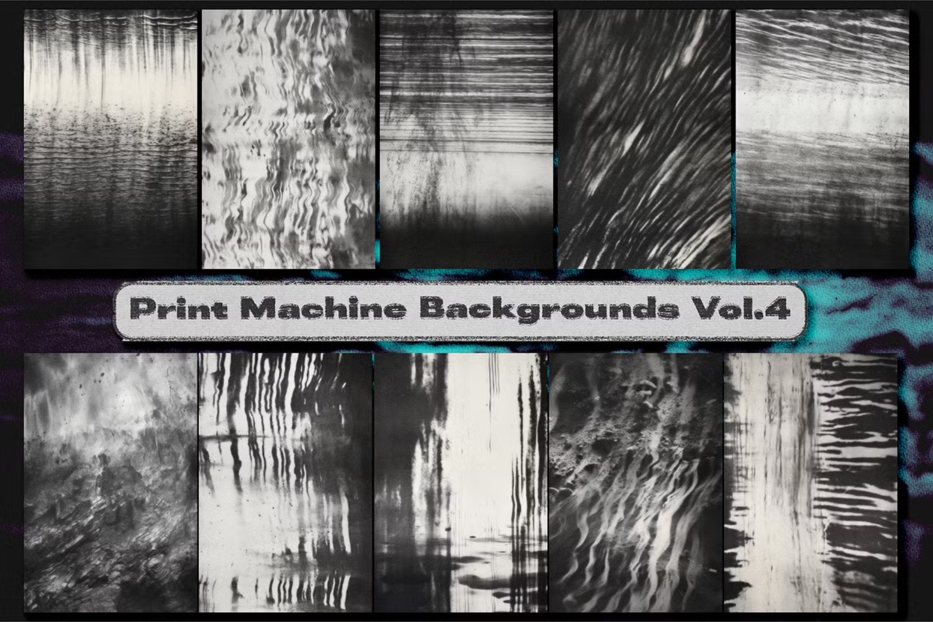 Discover “Print Machine Backgrounds Vol 4,” an enthralling collection featuring highly abstract black and white backgrounds. Each image in this set presents a captivating blend of pressed paper texture and ink distortion, resulting in visually stunning and artistic designs. With a generous resolution of 4000x6000px, these high-quality JPG images are perfect for a variety of creative projects, enriching your artwork with depth, texture, and a hint of intrigue.