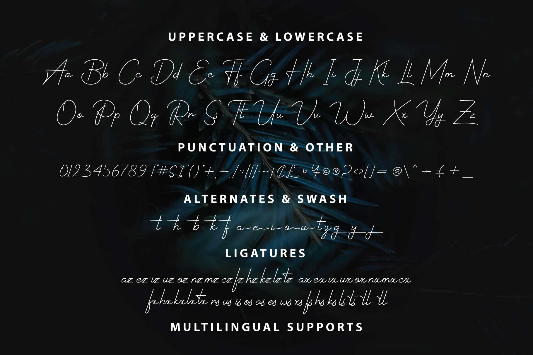“Rastery Signature” font is a meticulously crafted piece of typography that embodies understated elegance and refinement. By combining uppercase beginnings and lowercase endings, this font offers a subtle but impactful way to customize your text. Its versatility makes it suitable for a range of design applications, from high-end invitations to sophisticated branding materials and beyond.