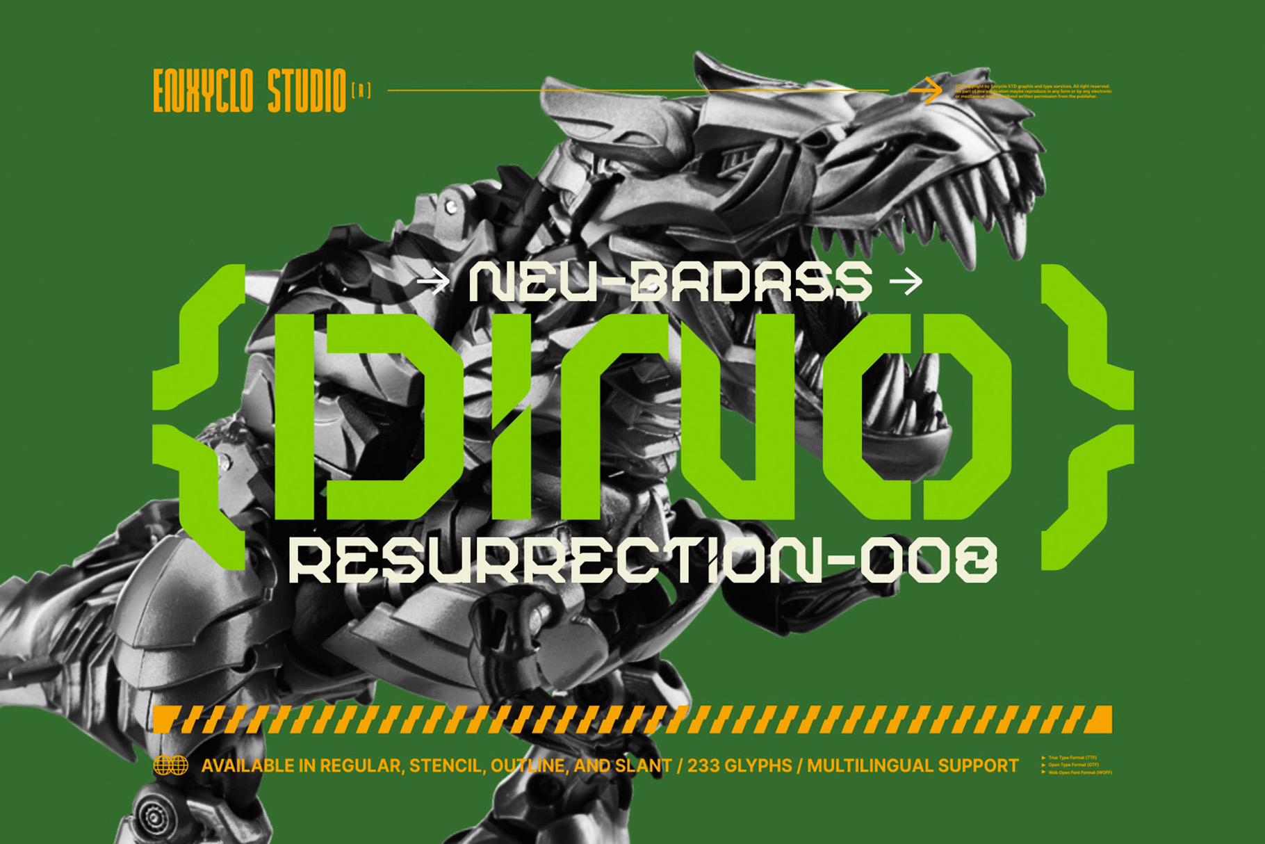 ROBMAX-36 is futuristic mecha cyberpunk typeface. Highly inspired by industrial and mecha-robotic vibes. The design of typeface will make your project more powerful and inspiring. It is perfect for headline, billboard, magazines, website, titles, poster, branding, thumbnail, t-shirt design, street wear design, and creative logos, or any project that needs futuristic and industrial touch. With this beautiful futuristic and industrial typeface, absolutely you can make your project stand out from the rest. See the previews above to get some inspiration on how to use them.