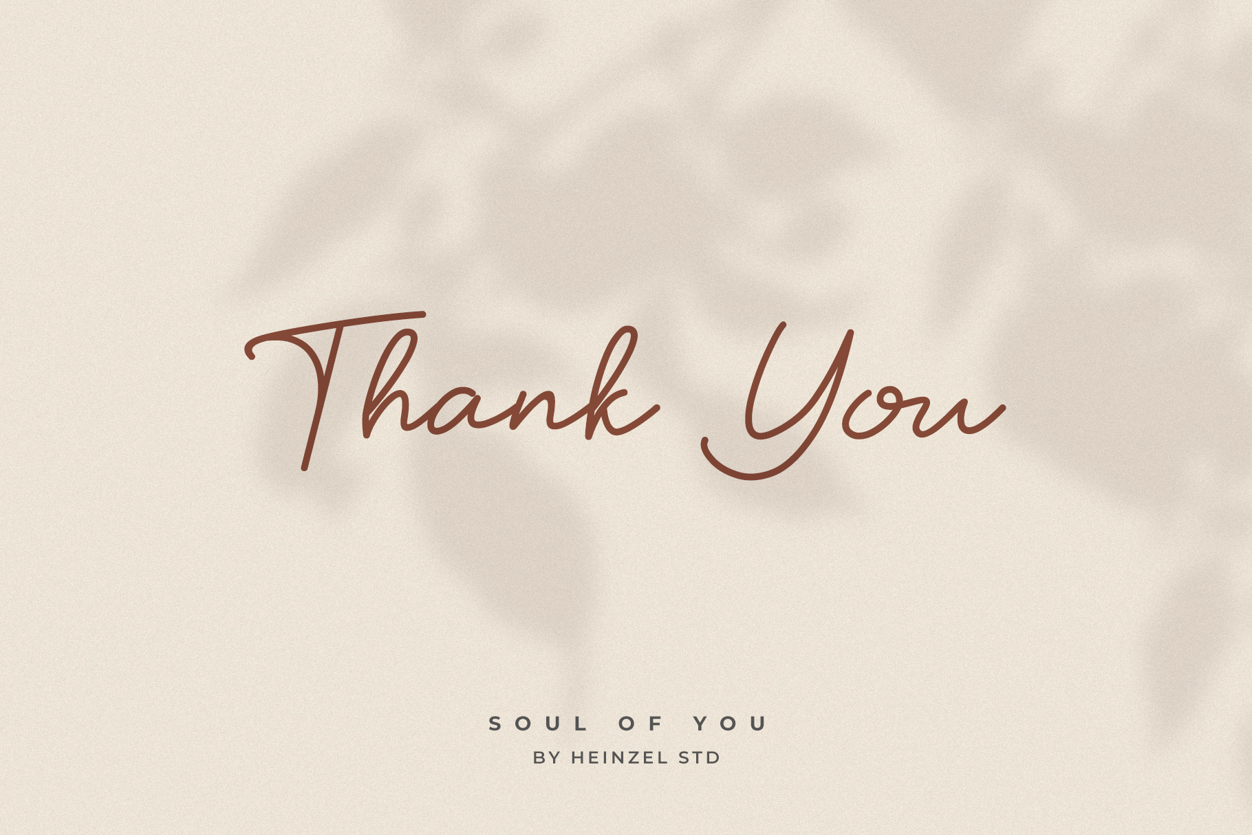 Soul Of You is a flowing handwritten font, described by an elegant touch, perfect for your favorite projects. It looks stunning on wedding invitations, thank you cards, quotes, greeting cards, logos, business cards and every other design which needs a handwritten touch. Fall in love with its incredibly distinct and timeless style and use it to create spectacular designs!