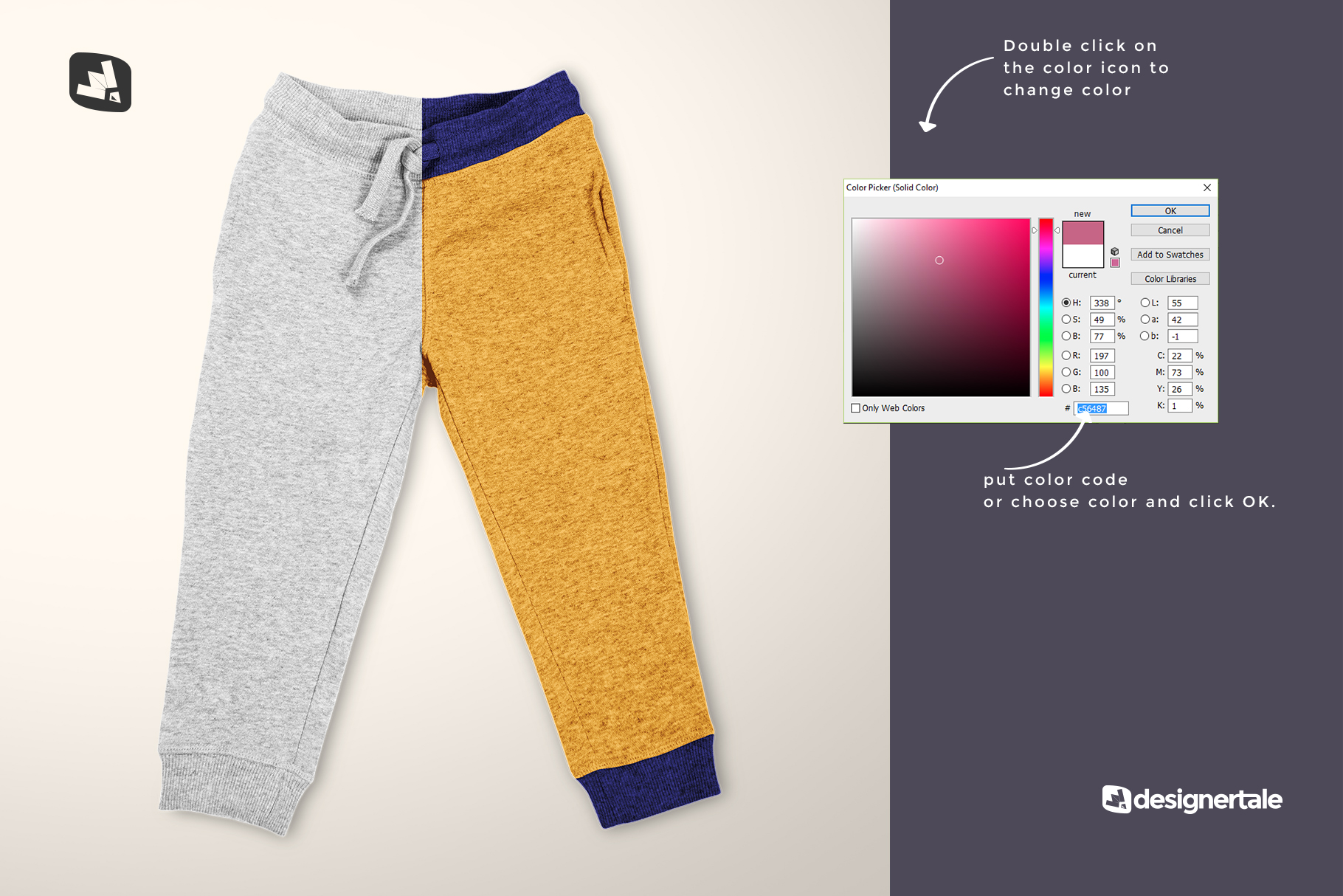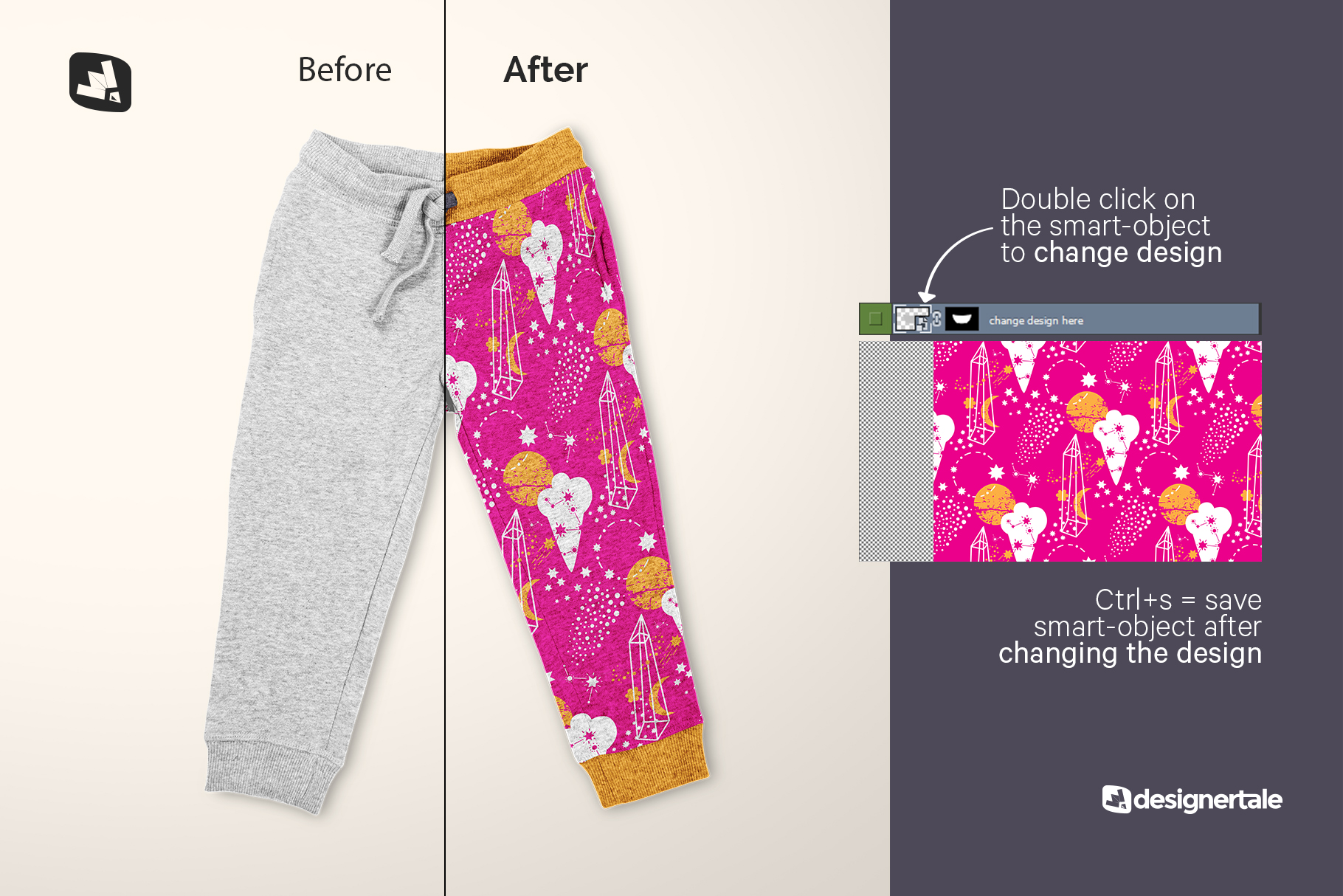 Track pants are a daily used item for infants and toddlers. This top view infant track pants mockup is a great way to present your pattern designs. This top view infant track pants mockup is simple and effective.The toddler pants mockup has a unique weaving fabric texture that provides a natural photo-realistic effect. The layers are perfectly organized and color-coded to provide you a smooth navigation.A detailed guide video is provided to make your editing process short and easy.Features: