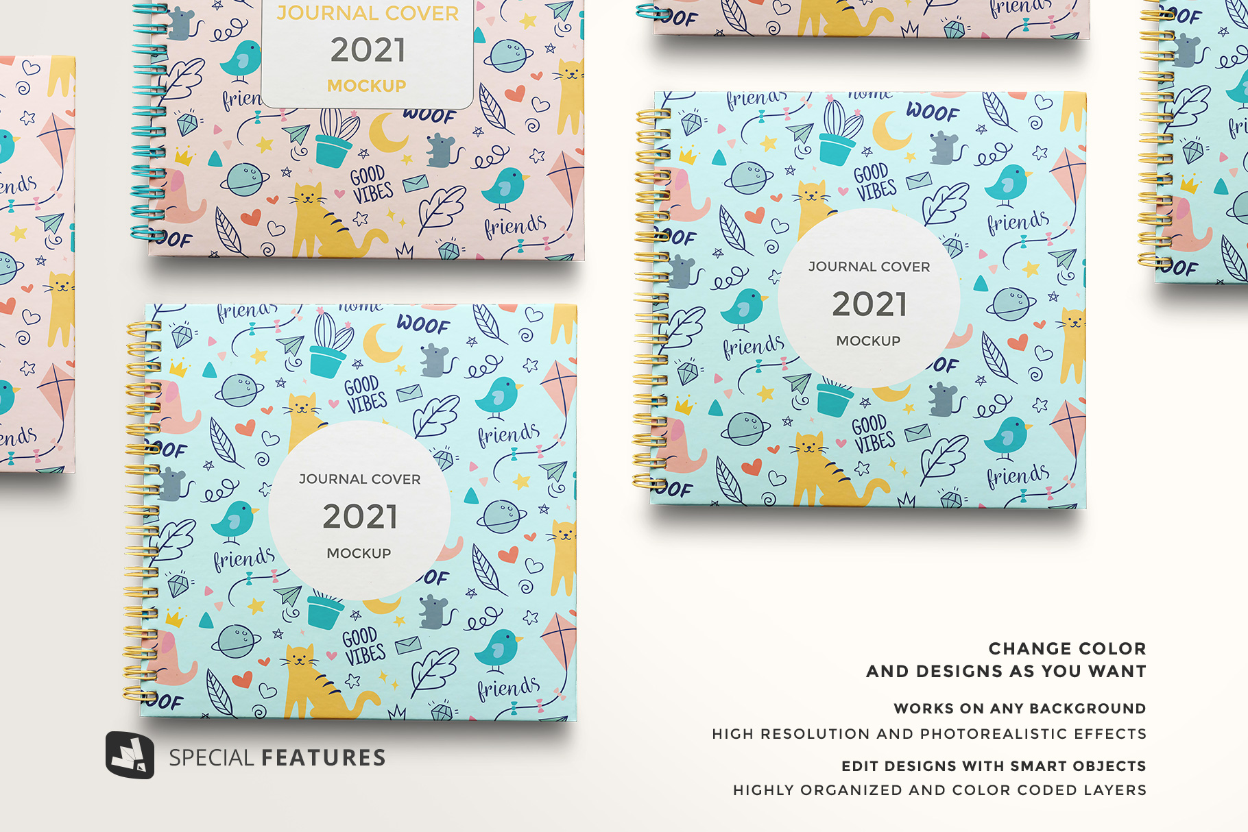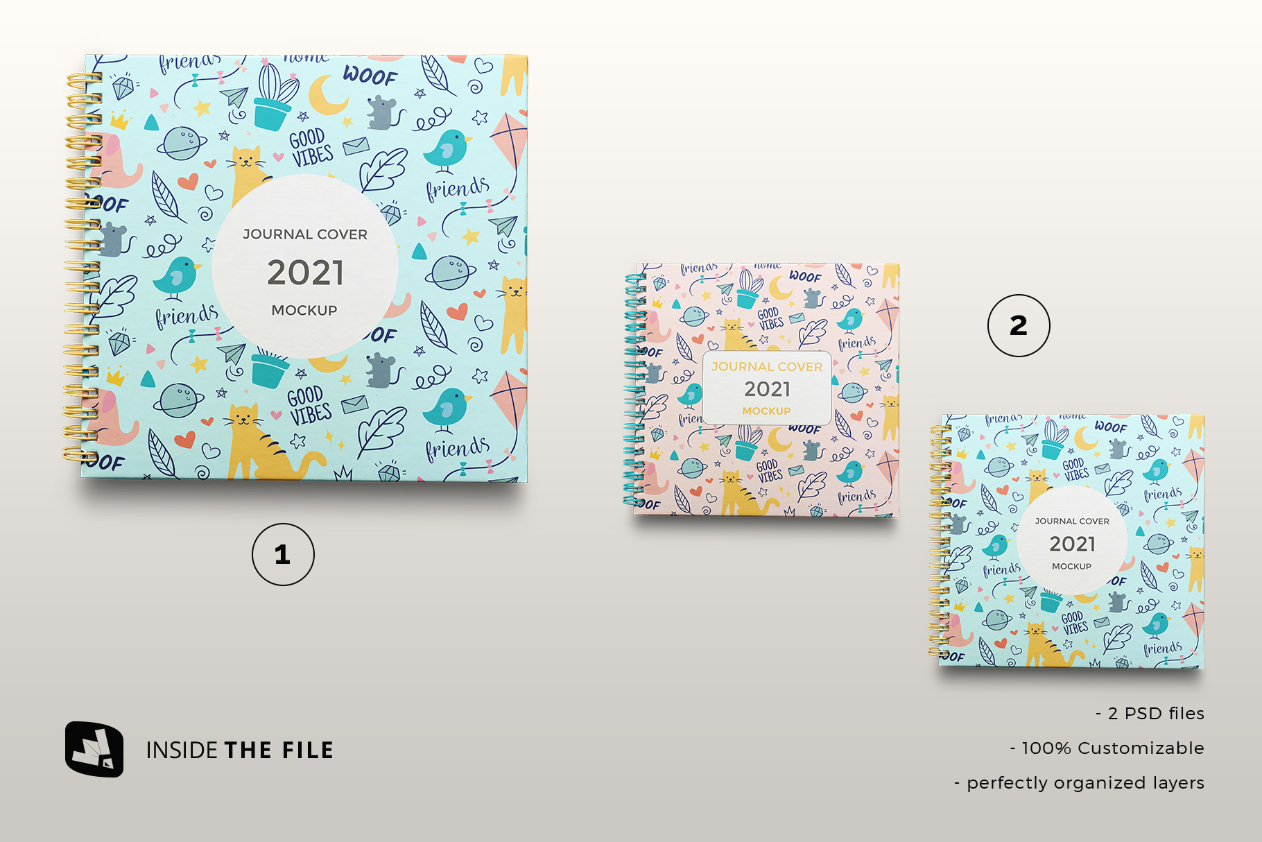 Journaling is a form of meditation and discipline. We all own journals to keep order in our lives.This top view spiral journal cover mockup is a simple relatable way to showcase any pattern or brand designs. This top view spiral journal cover mockup is perfect to add to your brand identity scene which can make your present come together beautifully.This journal cover mockup has versatile use as it also comes with a set of two. The base image is high-resolution and compact with highly organized color-coded layers.A detailed guide video is provided with the mockup to help you edit better and faster, which makes this spiral diary cover mockup a collective item.Features: