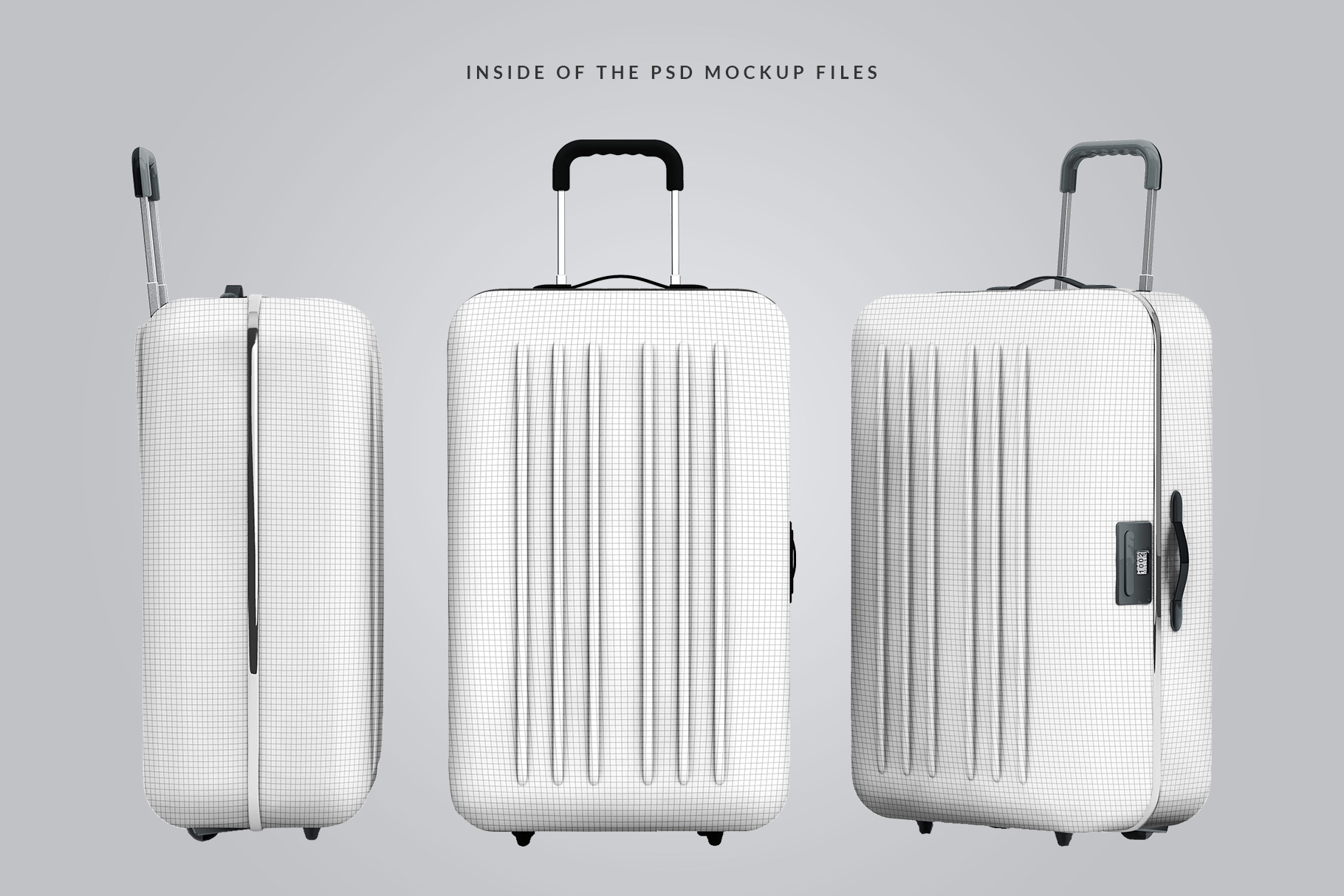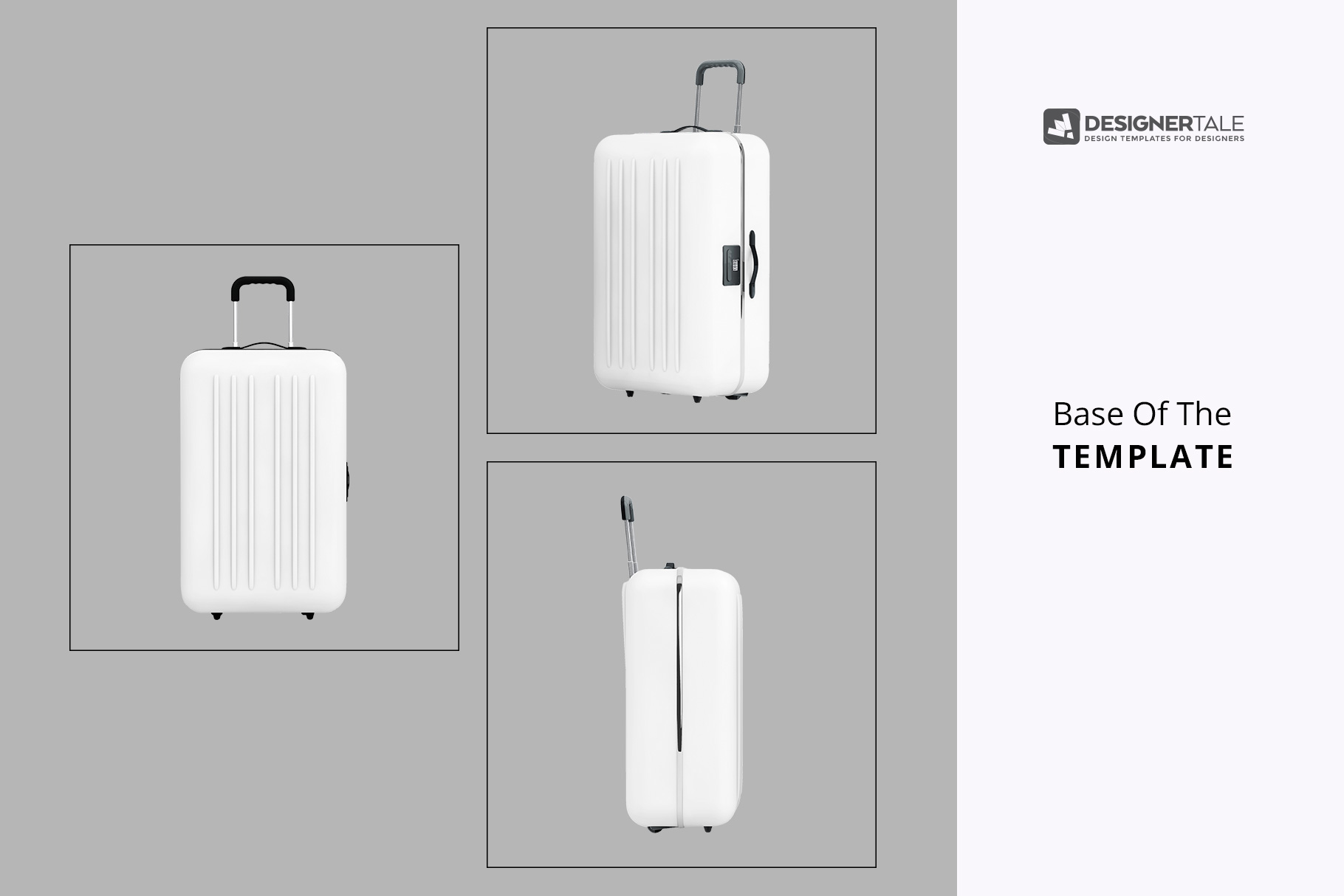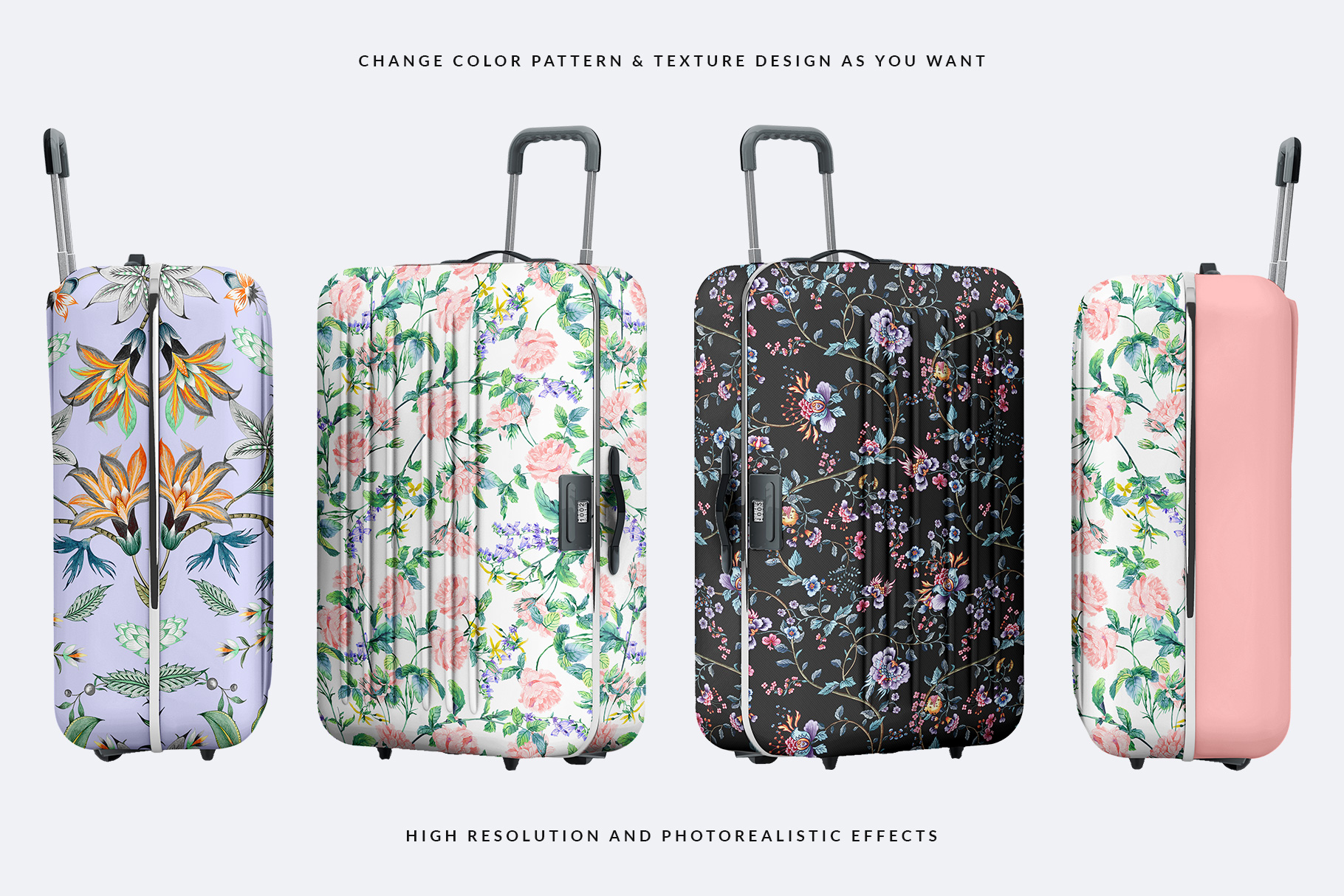 zoomed in look of the tourist trolley luggage mockup different variations of the tourist trolley luggage mockup inside the psd files look of the tourist trolley luggage mockup base templates of the tourist trolley luggage mockupA good tourist trolley luggage mockup is really hard to find. Designer travel suitcases are a trend now. So the designs created to fit these suitcases must be showcased in a realistic way. We are introducing this tourist trolley luggage mockup to make your suitcase pattern and textures design presentations as professional as possible. Three different poses of this tourister luggage mockup give any pattern designer a realistic edge to showcase each part of their suitcase pattern design.