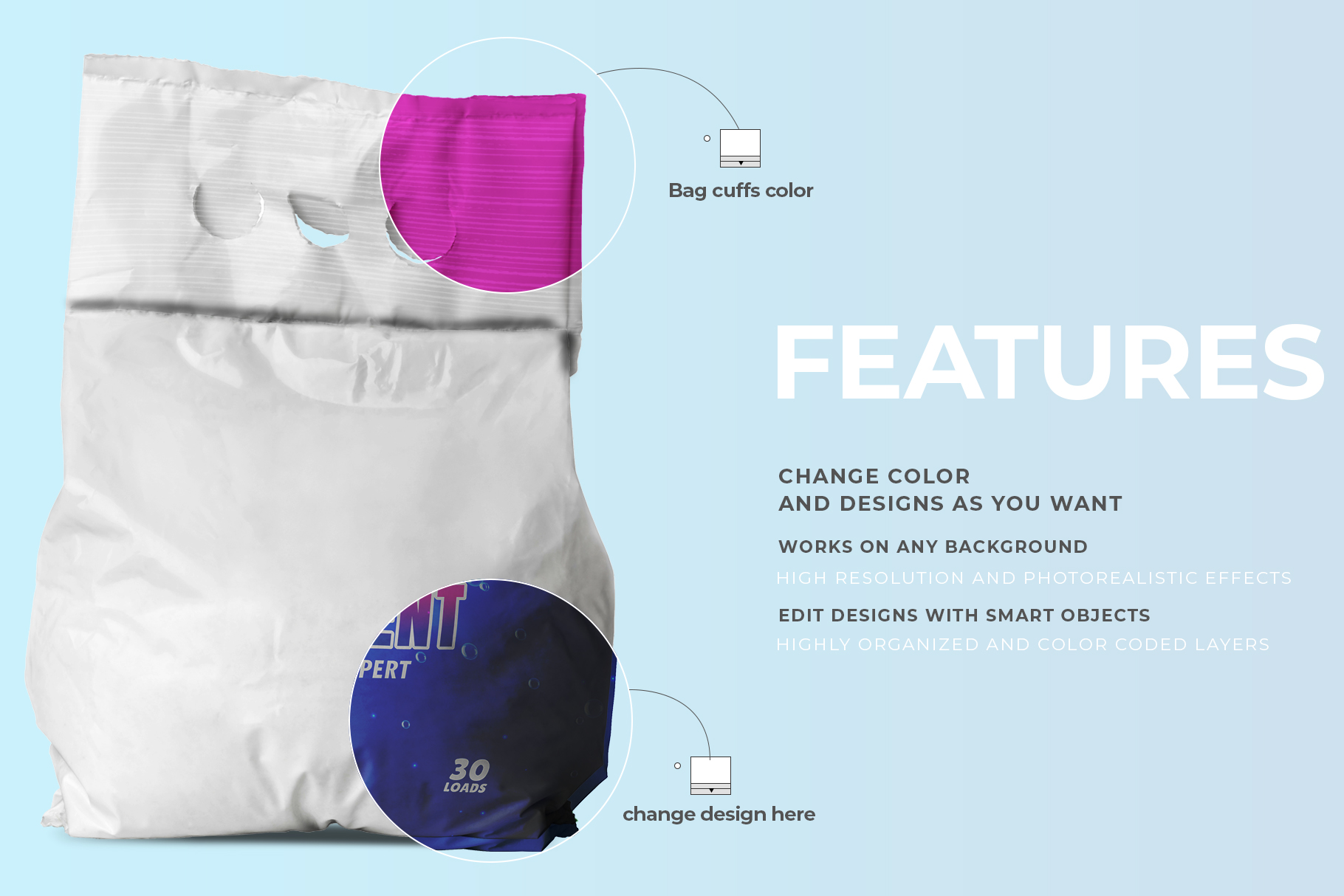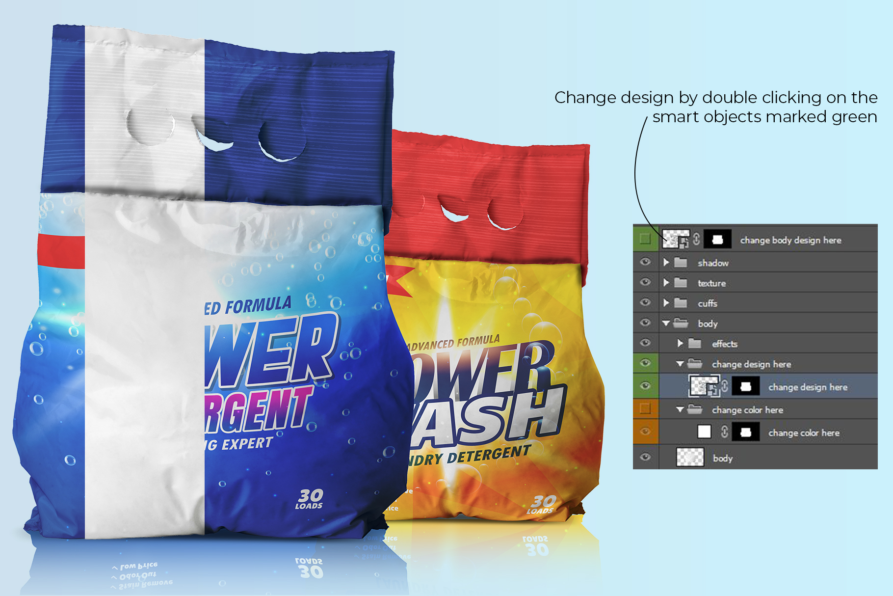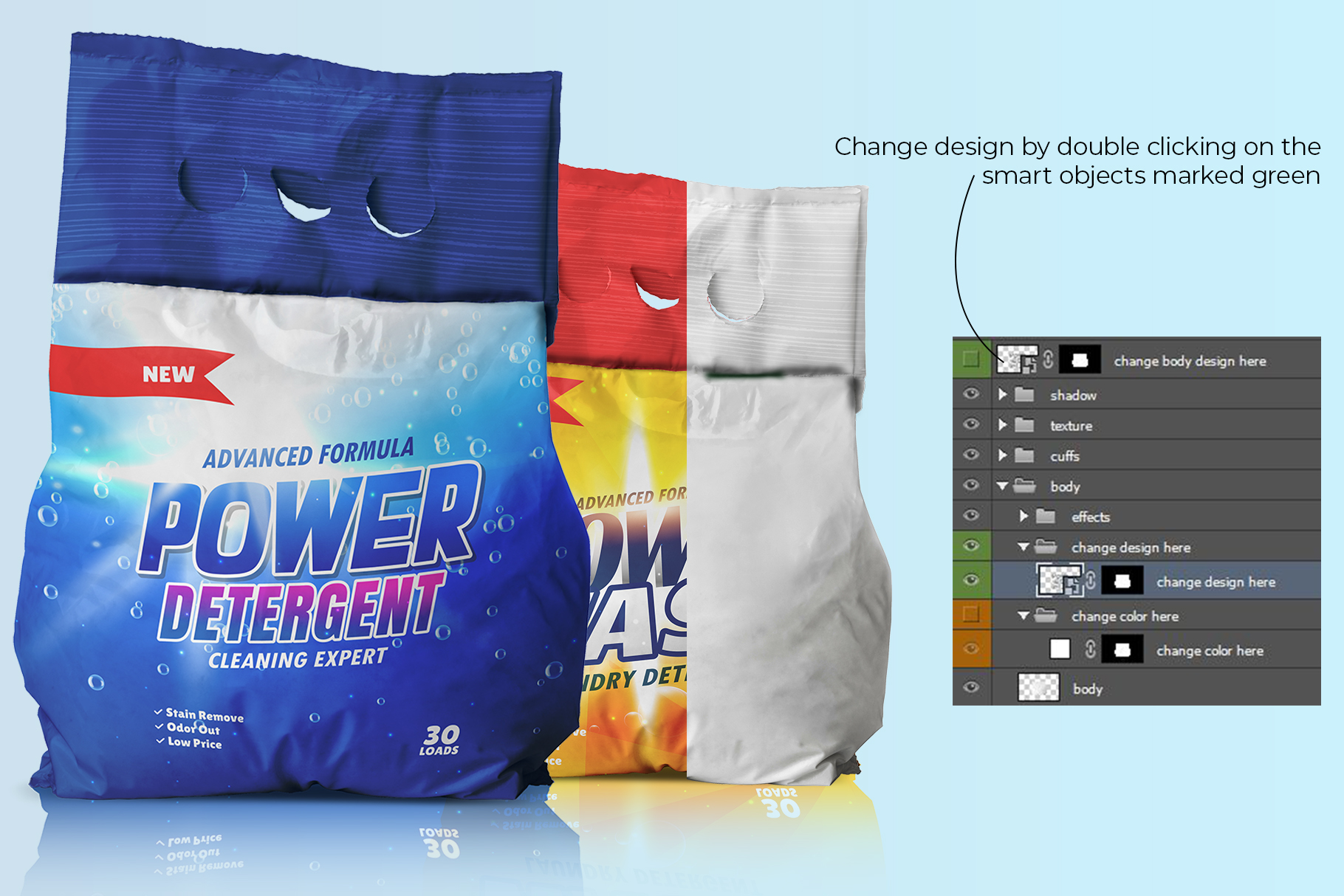 Washing powder bag packaging mockup. Washing powder bag mockup. Detergent mockup. Washing powder mockup. Detergent bag mockup.