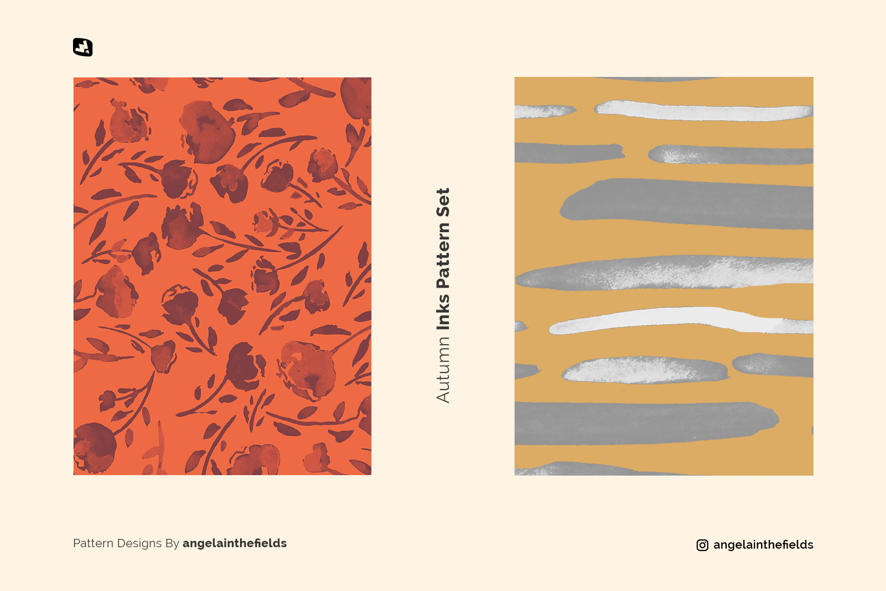 Note: The patterns used in the presentation are not included in the main file. We are very thankful to angelainthefields for providing us these amazing patterns.  To download the patterns used in this mockup please check Autumn Inks Pattern Set. For more patterns like these please check angelainthefields.