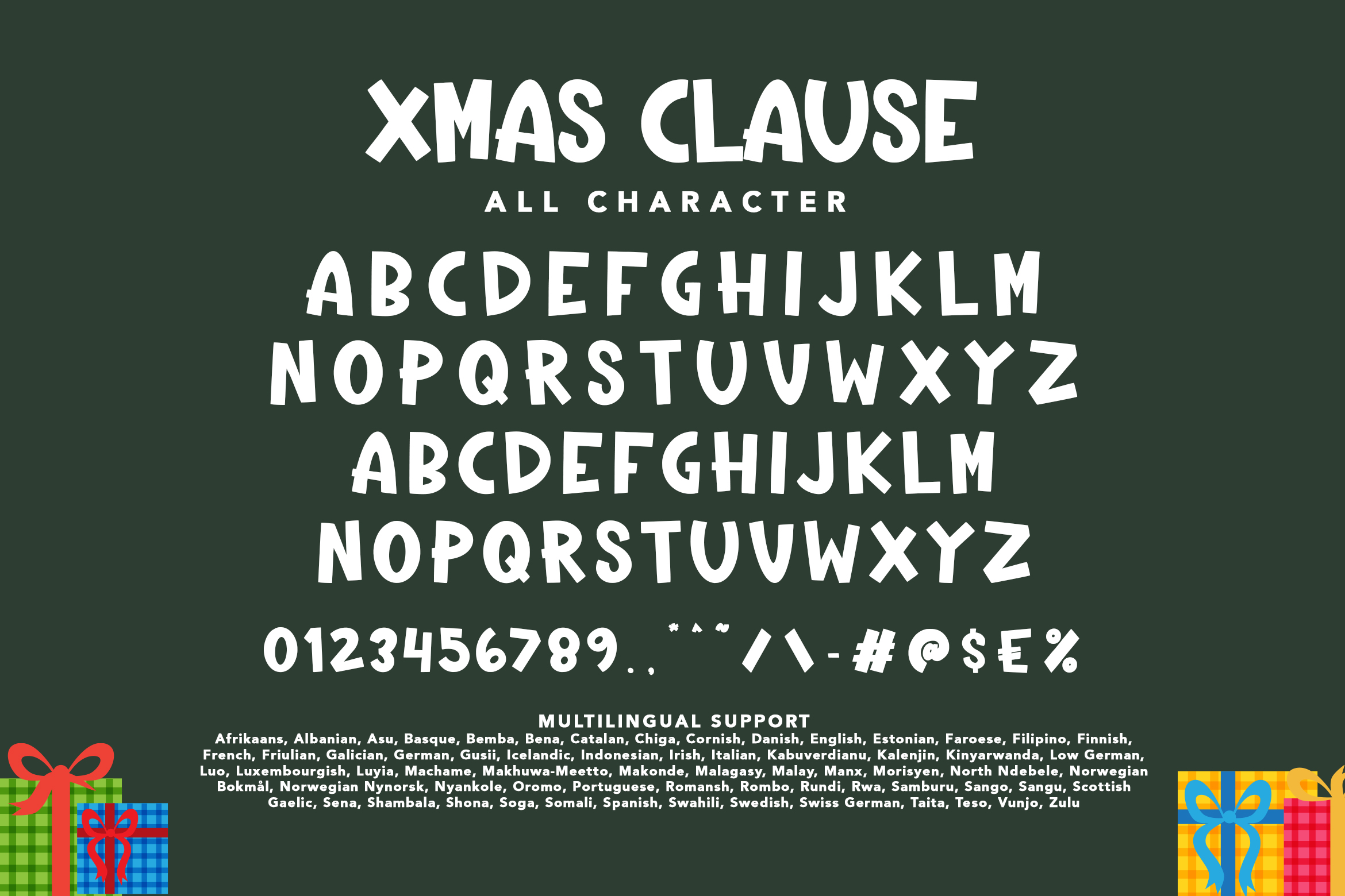 Each character in XMAS CLAUSE is designed to exude a festive feel, with details reminiscent of Christmas tree decorations and the magic of Christmas Eve. This font is more than just a typeface, it’s a visual experience that brings the spirit of Santa Claus to every design you create. Welcome Christmas in style full of charm and happiness with XMAS CLAUSE, a font created to celebrate the most wonderful season of the year.